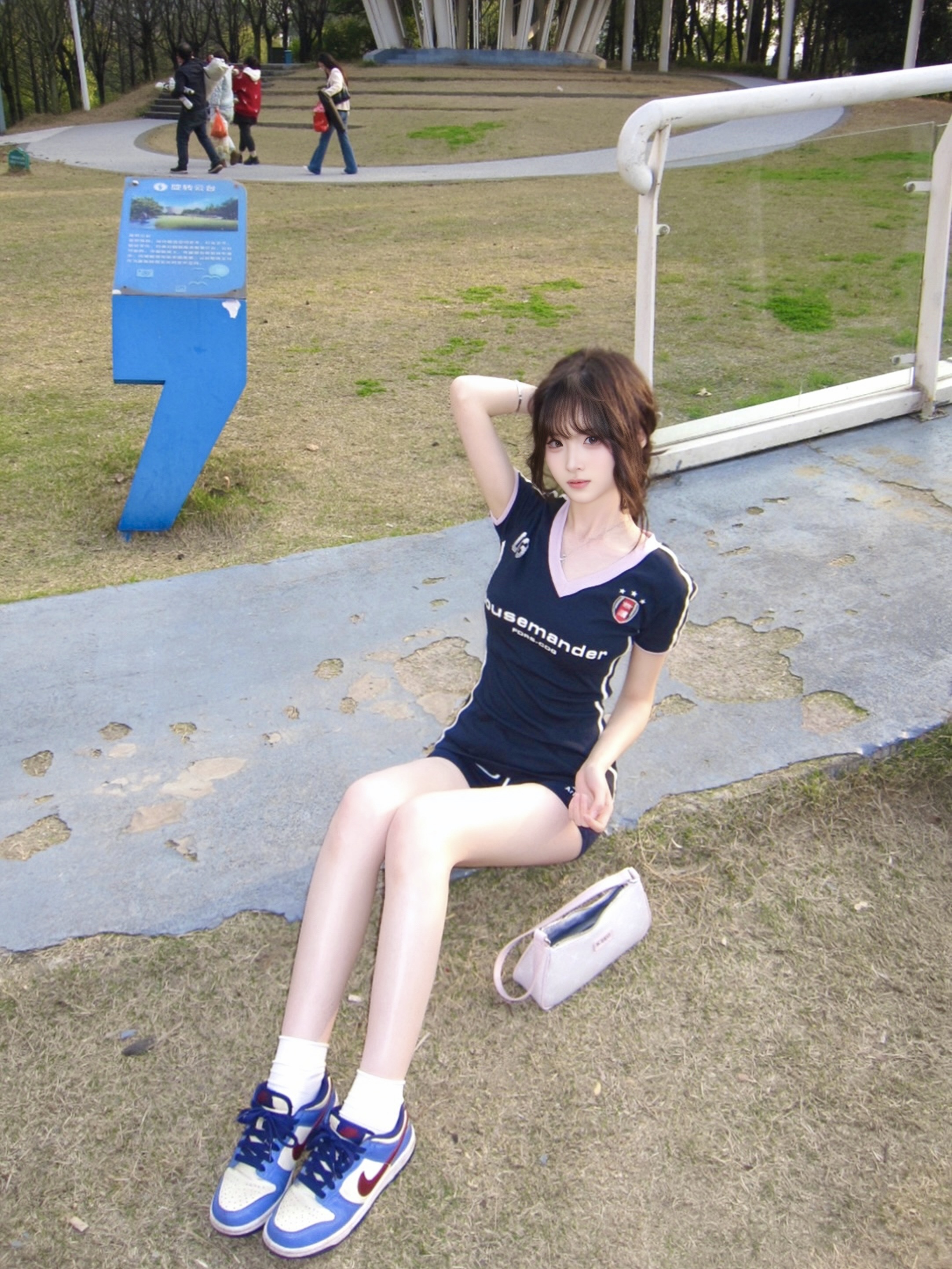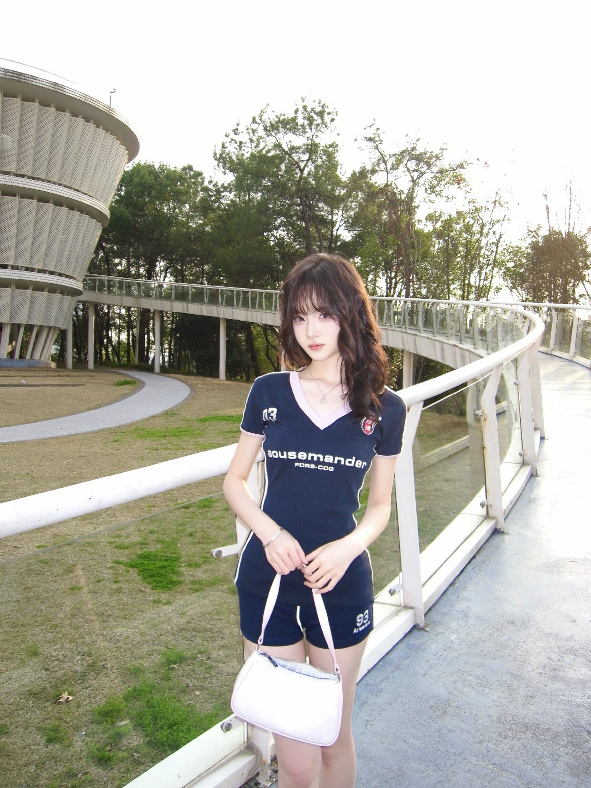 这件藏青美式短袖👕真嘟太懂甜酷风💖啦~ V领+粉边撞色设计🎀 活力感满满✨ 侧边粉条纹增添了运动感🏄🏻♀️ 面料柔软☁️透气 春天逛公园🛝、citywalk🏞️都很舒服耶! 搭同色系短裤+球鞋👟 秒变活力运动少女🏸 日常出街回头率👻超高的哦~