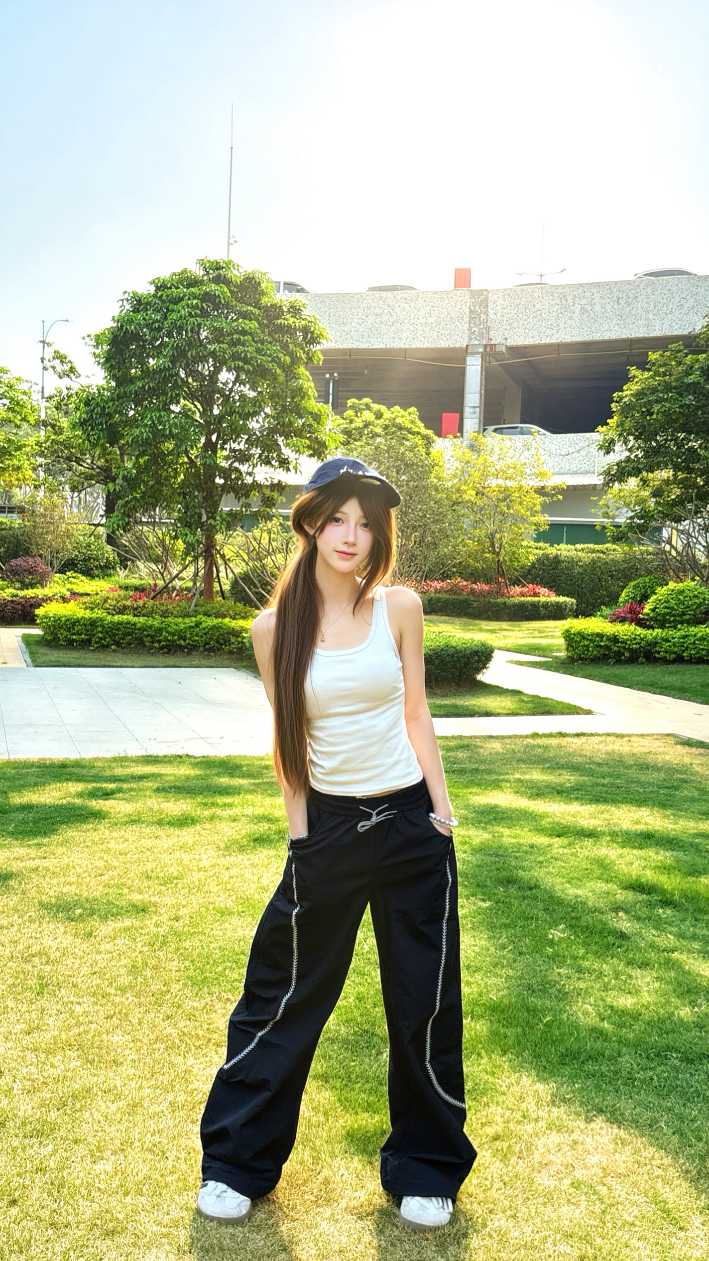 短上衣配长裤 就是一直很火的ootd啊 特别是简约吊带配阔腿裤n