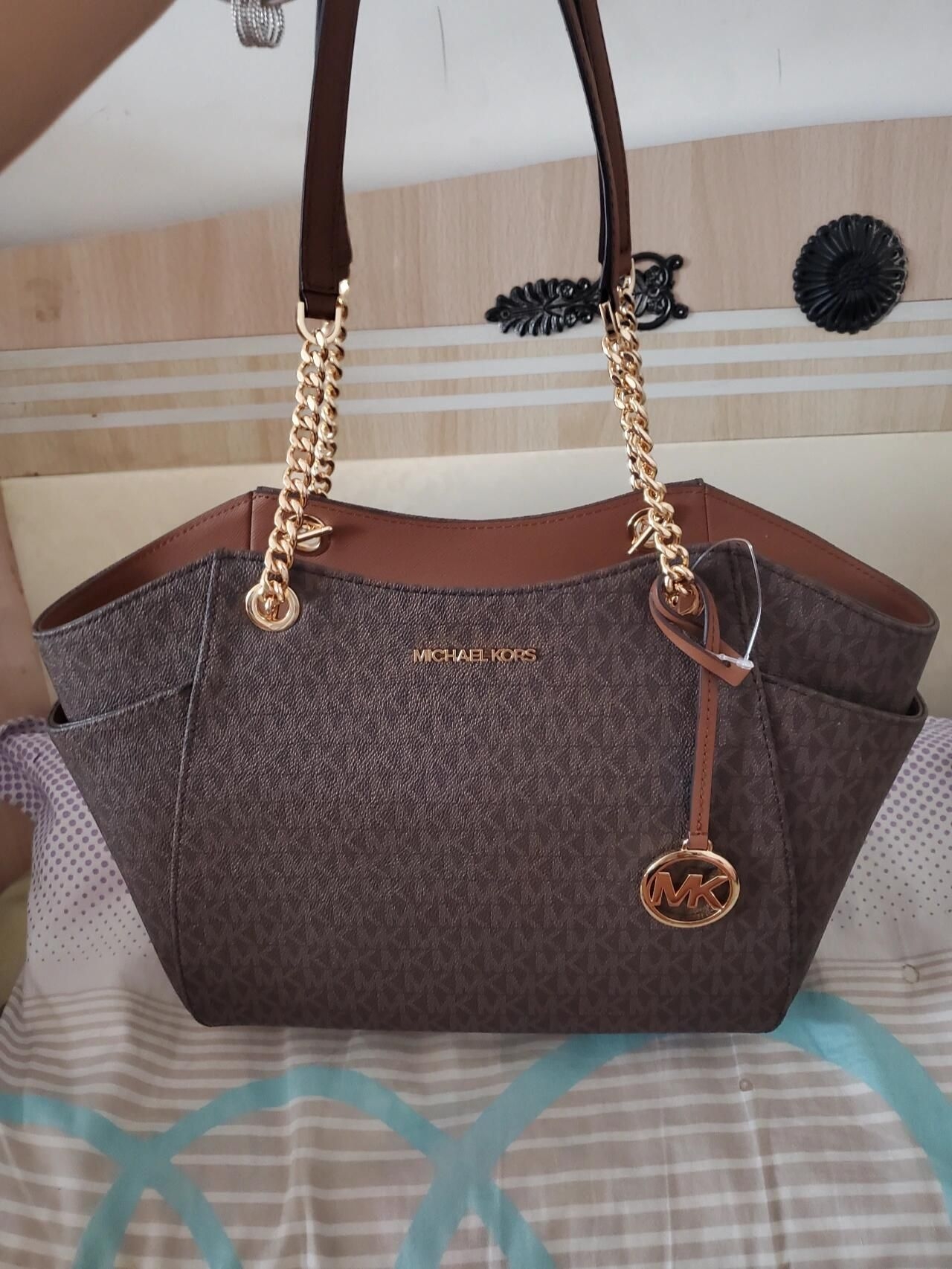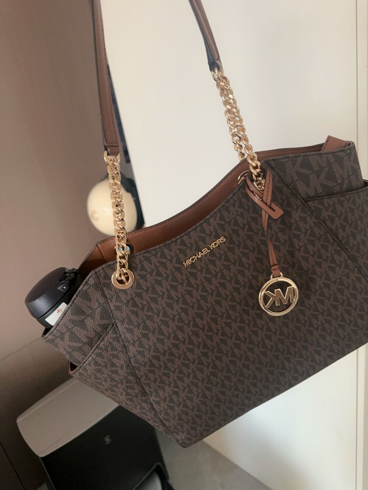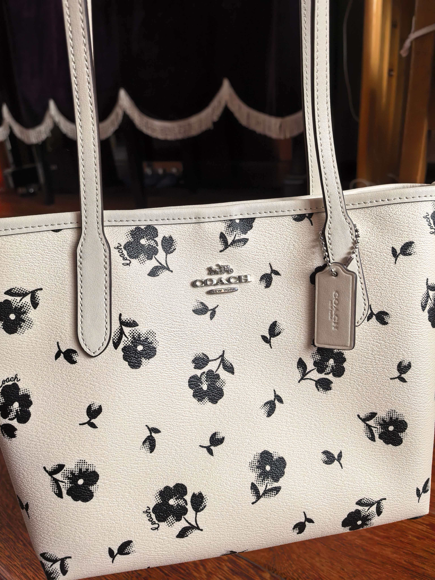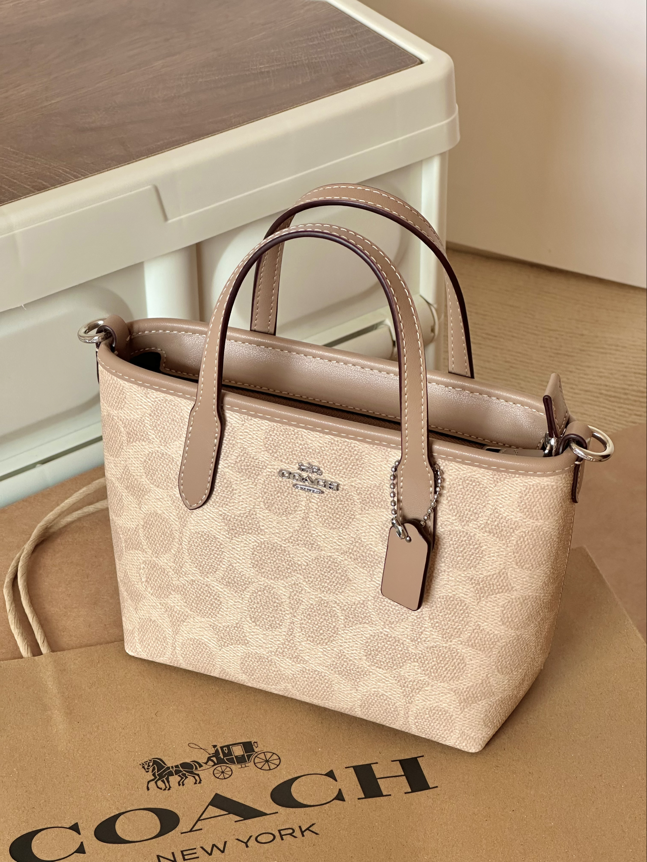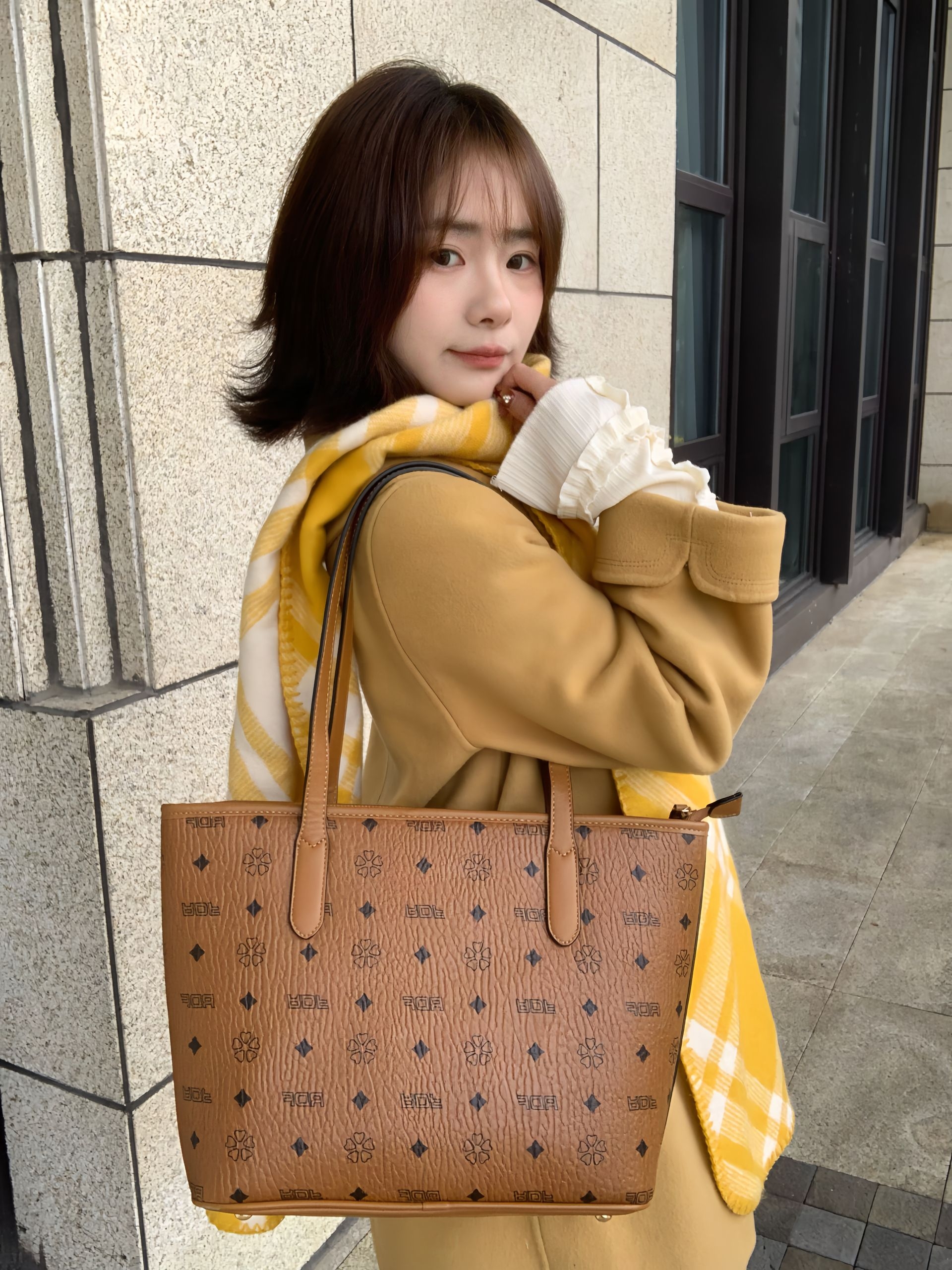 还得是我会挑选托特包呀 奶茶🥤色老花托特包好适合春天呀 可手拎可单肩 容量也足够大 我的水杯笔记本平板都可以放得下 我觉得日常背通勤背出游背都合适