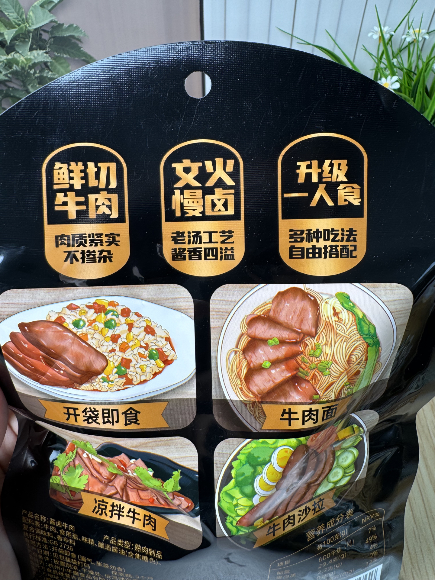 被科技与狠活整怕后,我挑吃的只看配料表!这款卤牛肉真的干净,没防腐剂没色素,汤汁都是卤出来的自然稠度。就是保质期不算长,得抓紧吃~给娃给孕妇都放心,我现在加班也靠它垫肚子😋