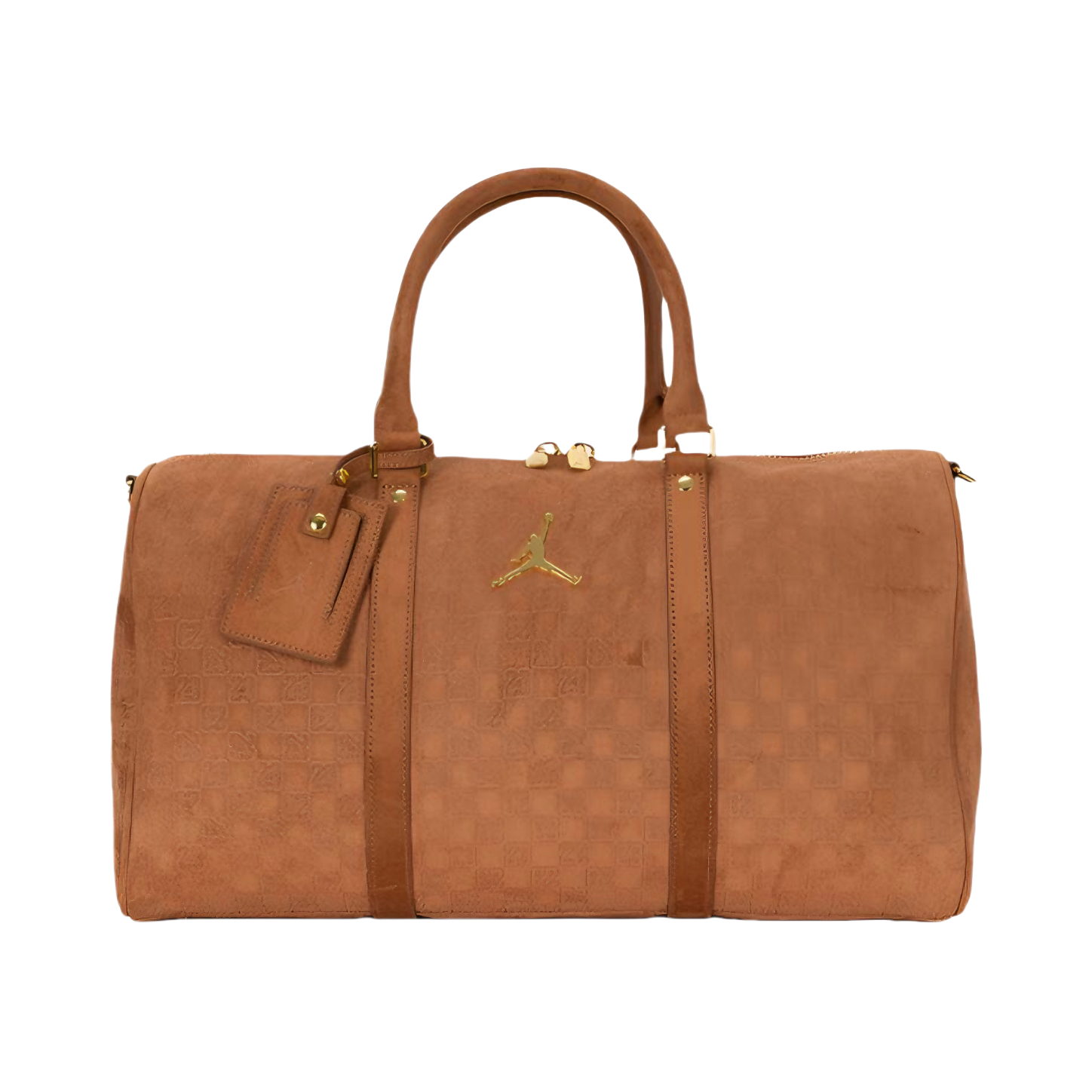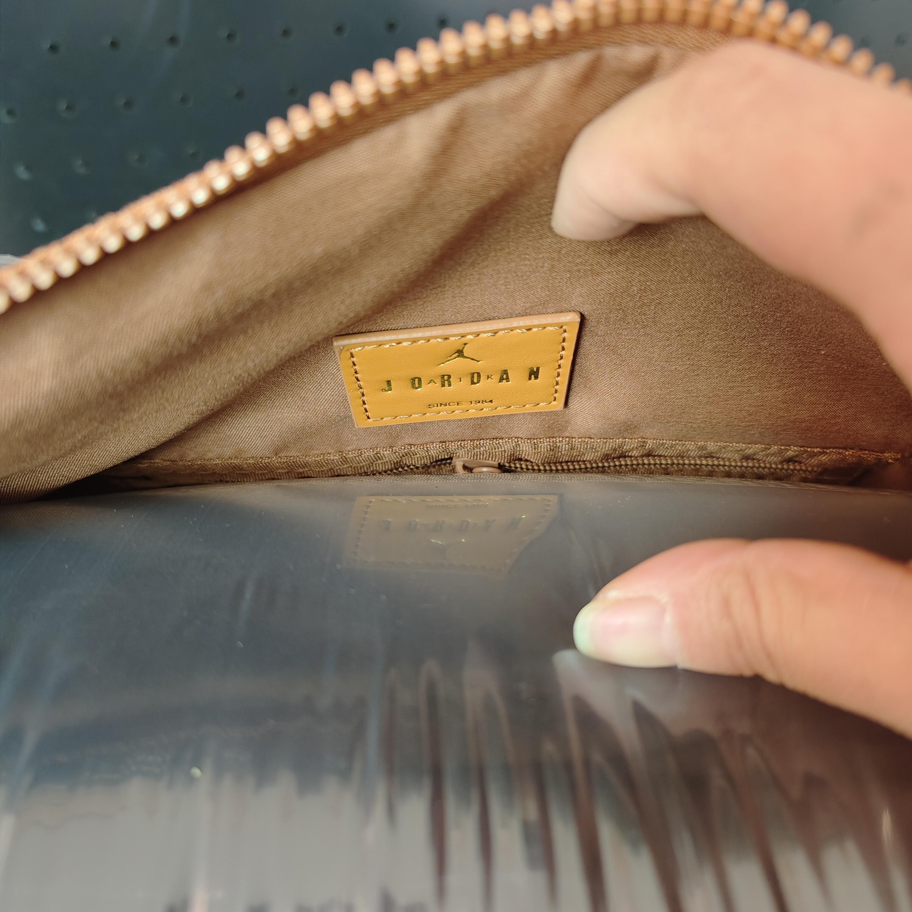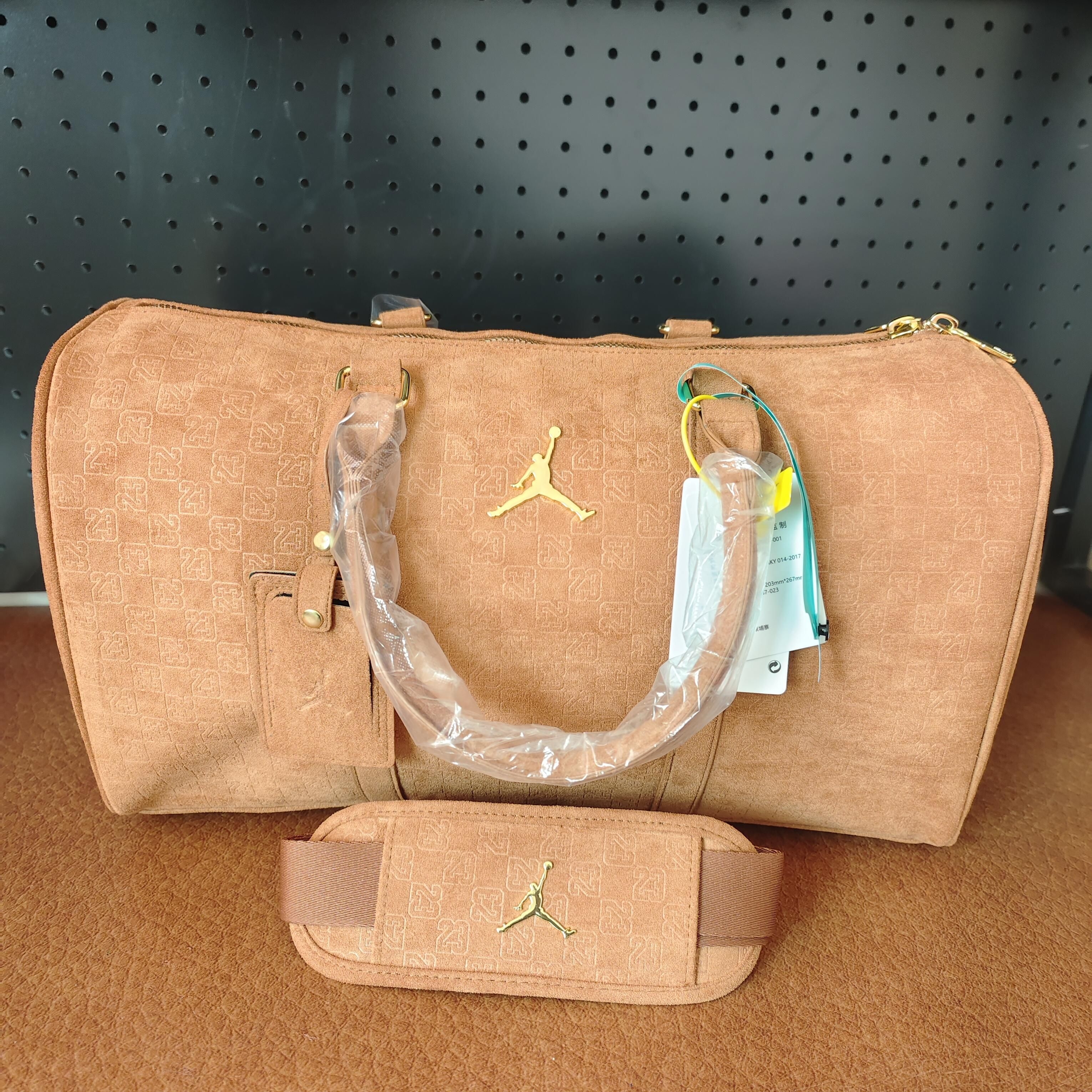 👜Jordan麂皮旅行包,焦糖棕色麂皮材质,手感柔软有质感,低调压纹+金属飞人Logo超有辨识度✨。大容量设计,短途旅行、健身、通勤都能轻松装下衣物和日常用品。手提+侧背两种背法,实用又百搭,秋冬搭配穿搭超加分🍂。麂皮材质要注意防水防污,建议定期用专业护理产品保养哦🧴。