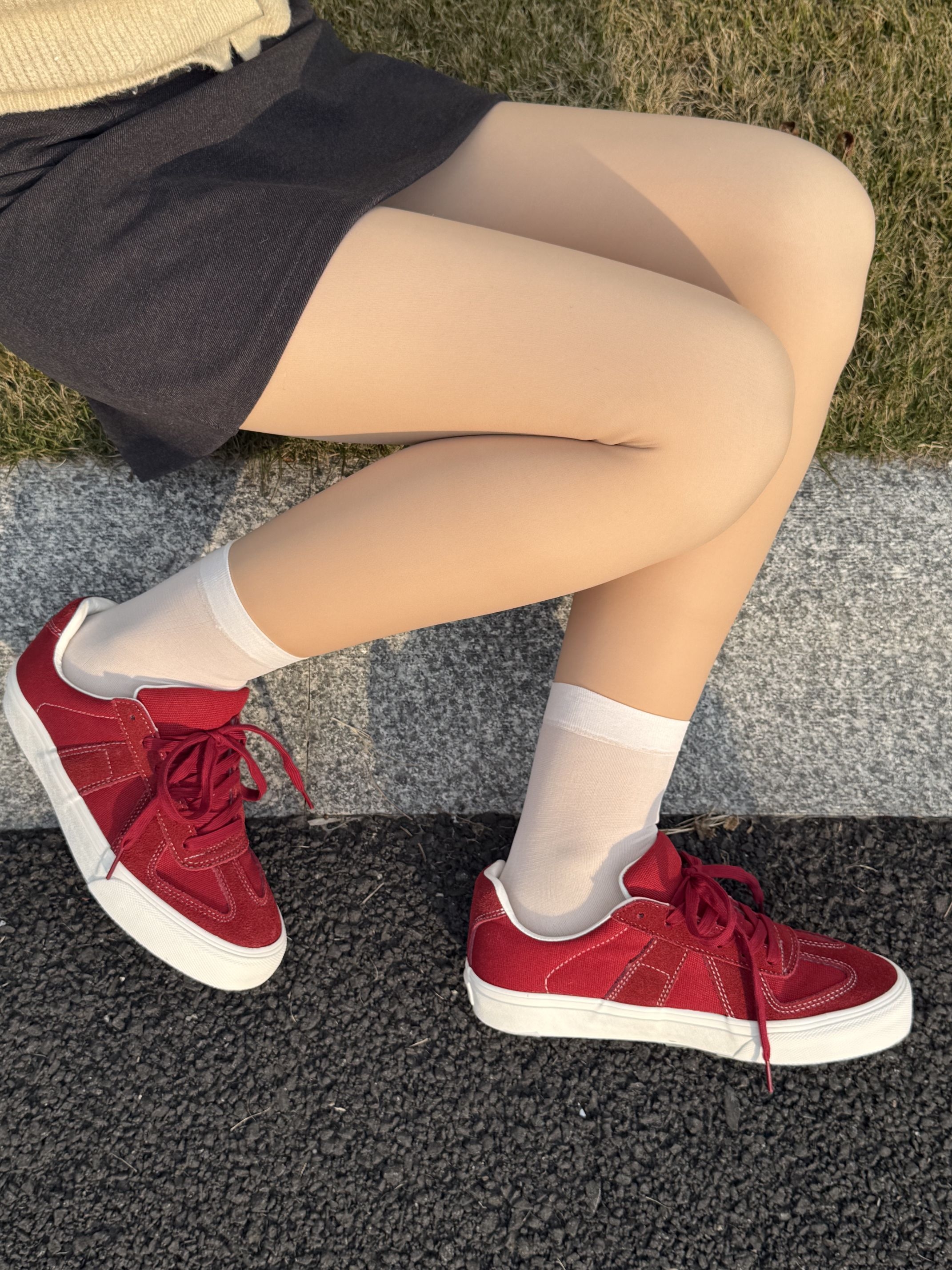 上脚很舒服,鞋底有一定厚度,悄悄增高还不累脚,日常通勤或者出门散步都很合适。白色中底和红色鞋面的对比很干净,细节走线也很工整,属于越看越耐看的类型。春天就该穿点亮色,这双红鞋真的能给穿搭加分不少