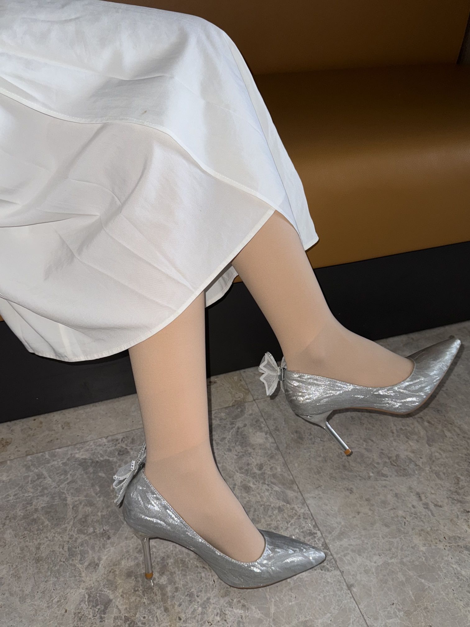 被这双银色细跟高跟鞋戳中审美点了细跟的设计很显腿长,上脚之后气质直接提升一个度,配白裙、小礼服都很合适,日常通勤或者约会穿都不违和。鞋跟的高度对我这种偶尔穿高跟的人也很友好,走起来不会太累,舒适度在线。