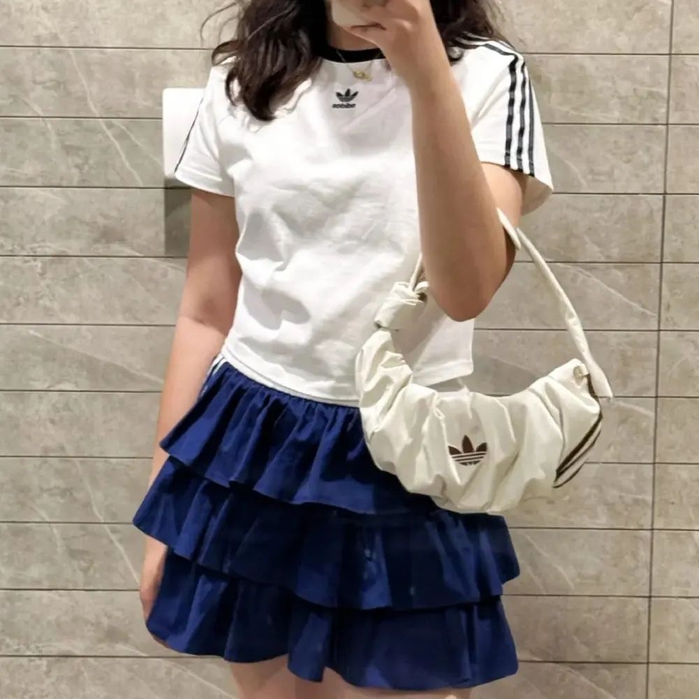 👗阿迪达斯三叶草×迪士尼玛丽猫联名蛋糕裙,深蓝裙身+白色三道杠,运动感满满!多层荷叶边设计,甜美又有层次,夏天穿超清爽✨。轻薄聚酯纤维,透气舒适,日常或运动都OK。搭配同系列T恤或背心,轻松get甜酷风,减龄又俏皮,迪士尼控&运动风女孩必入!