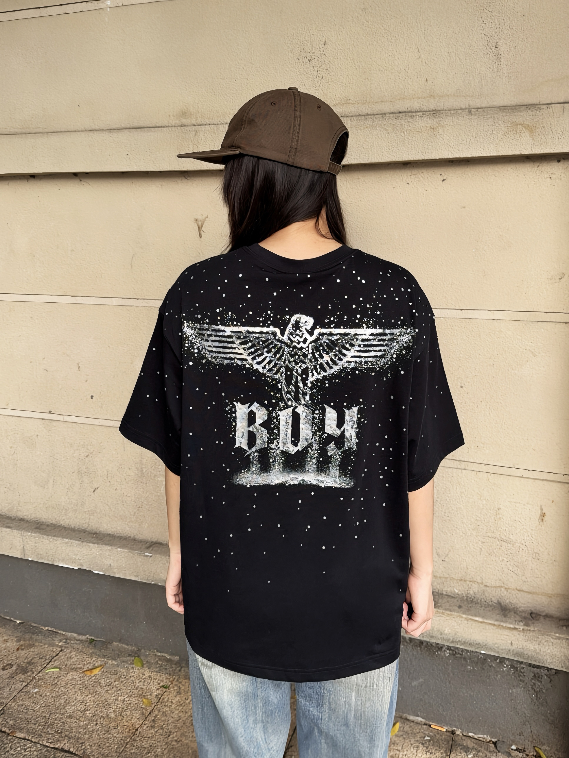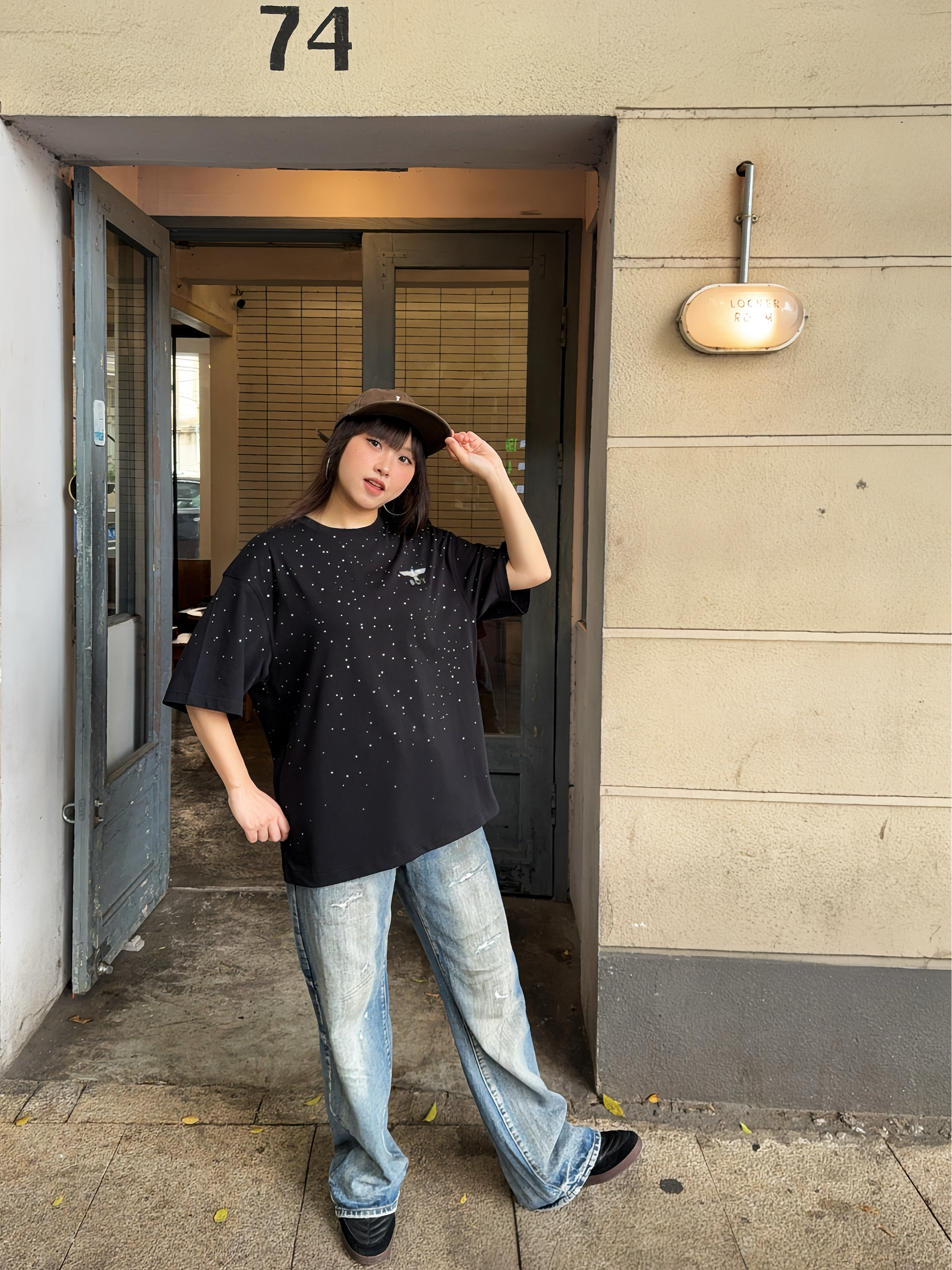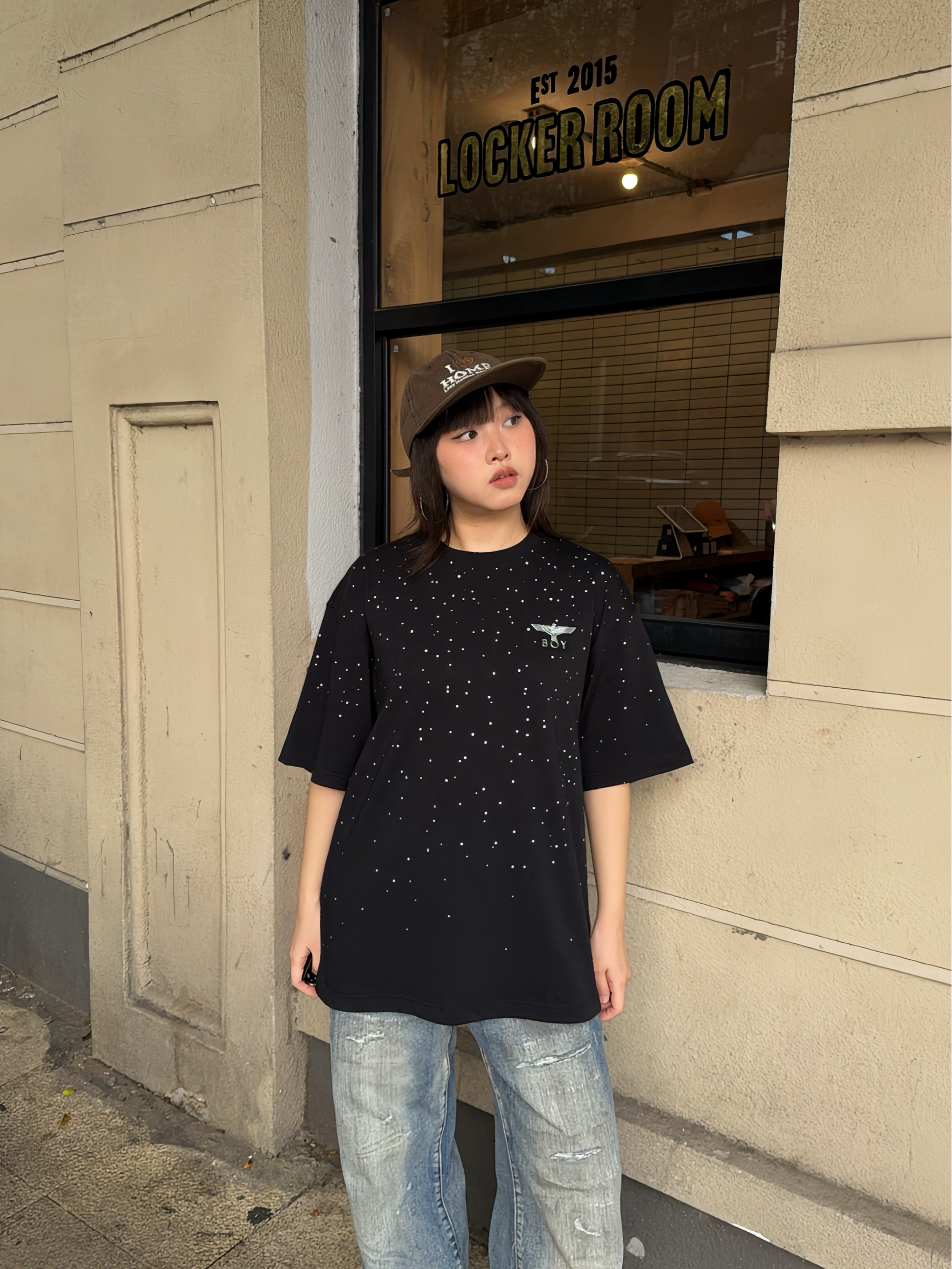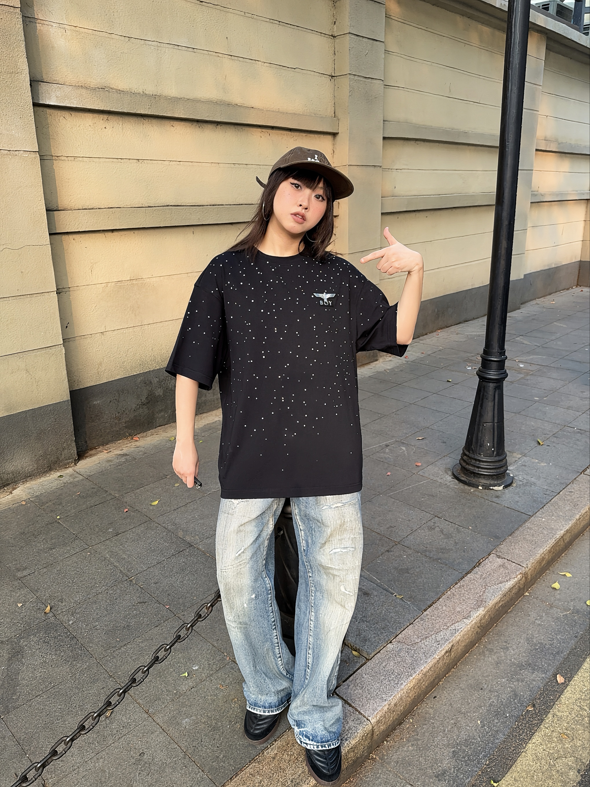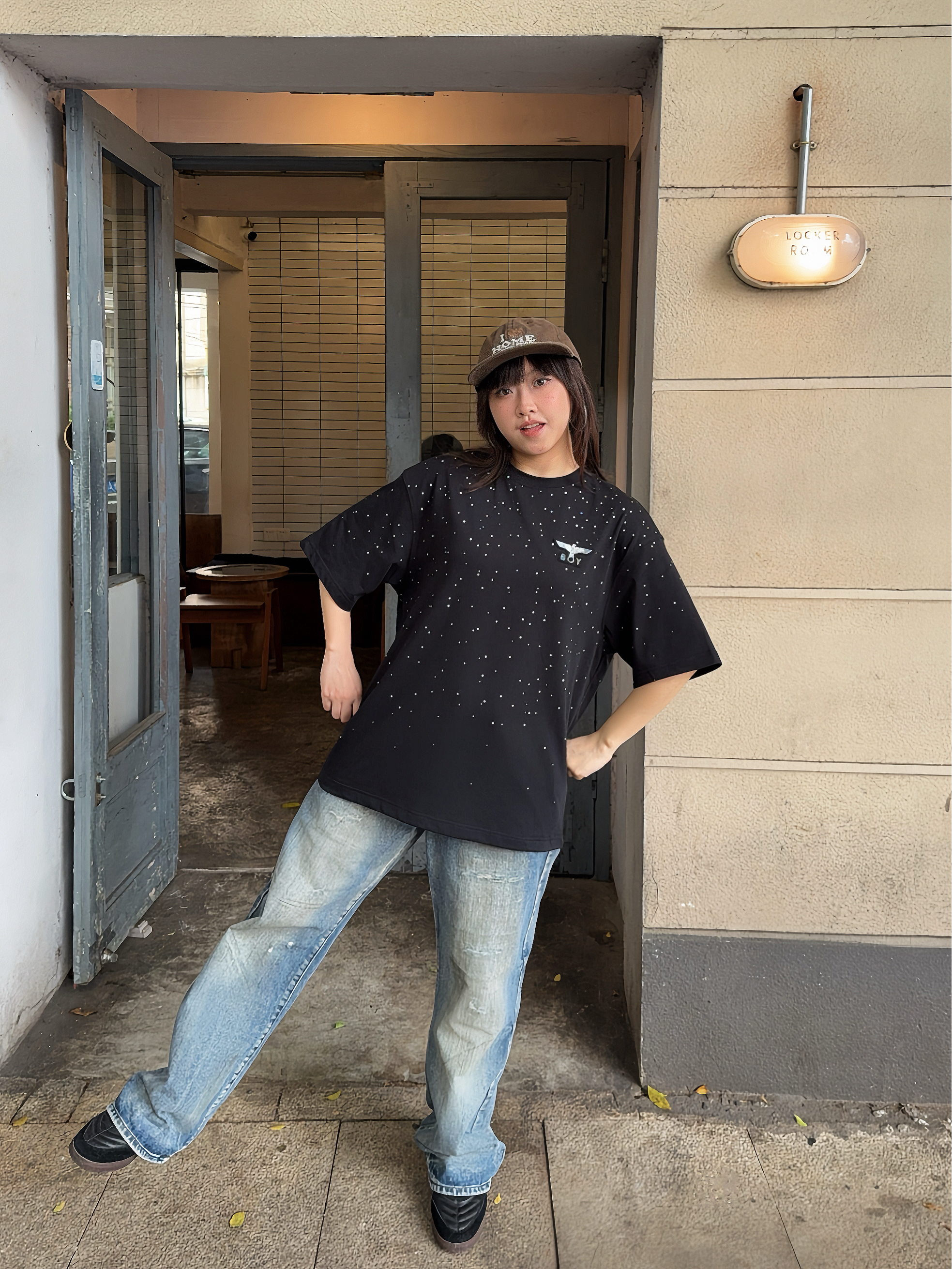 今日份潮酷girl驾到,ootd高街一下~ Boy London 满天星短袖,这件前后的🦅老鹰LOGO巨闪巨有潮酷感✨ T恤的版型也比较正,上身很有街头范~日常搭配牛仔裤就能出门啦🆒