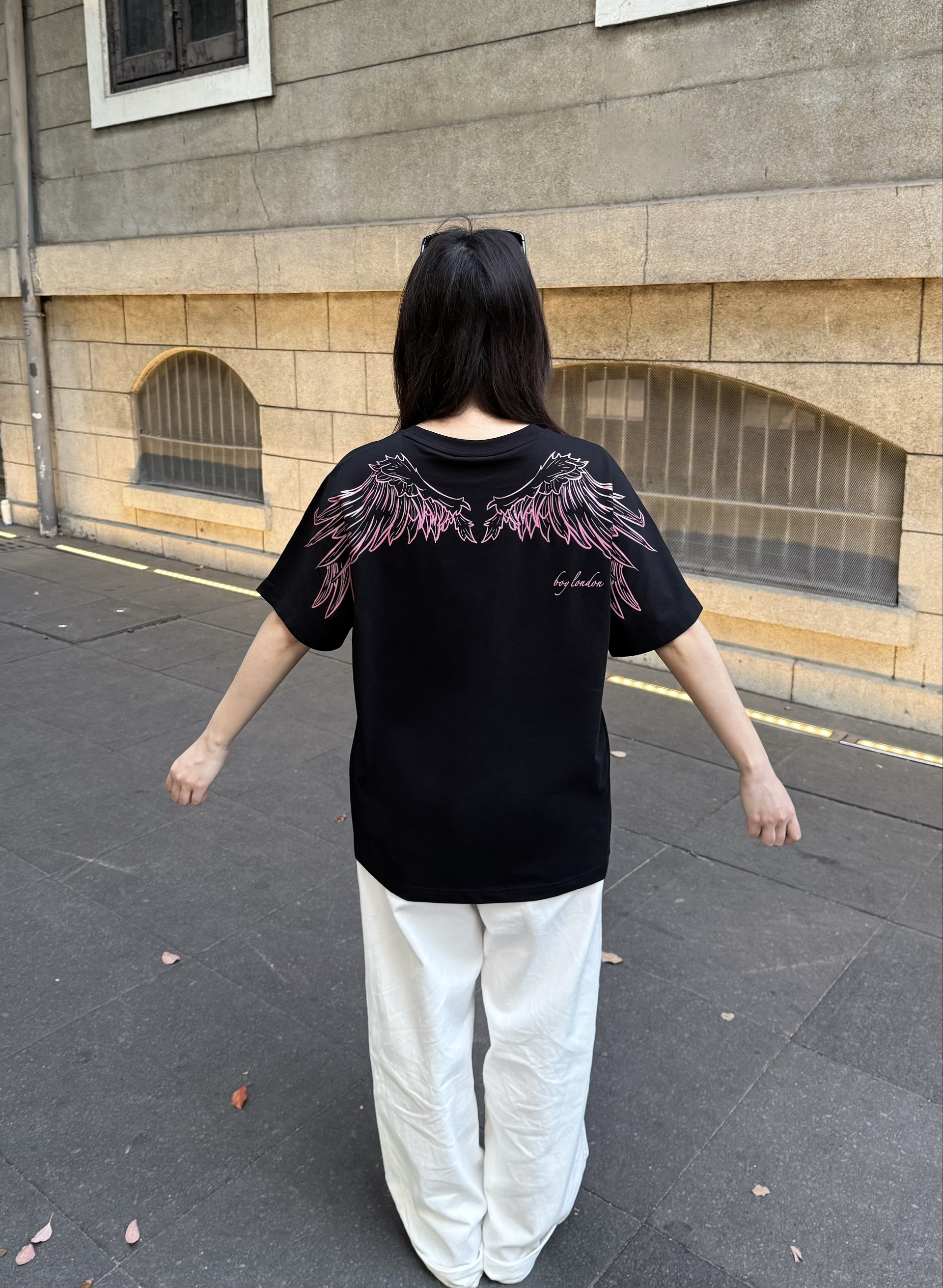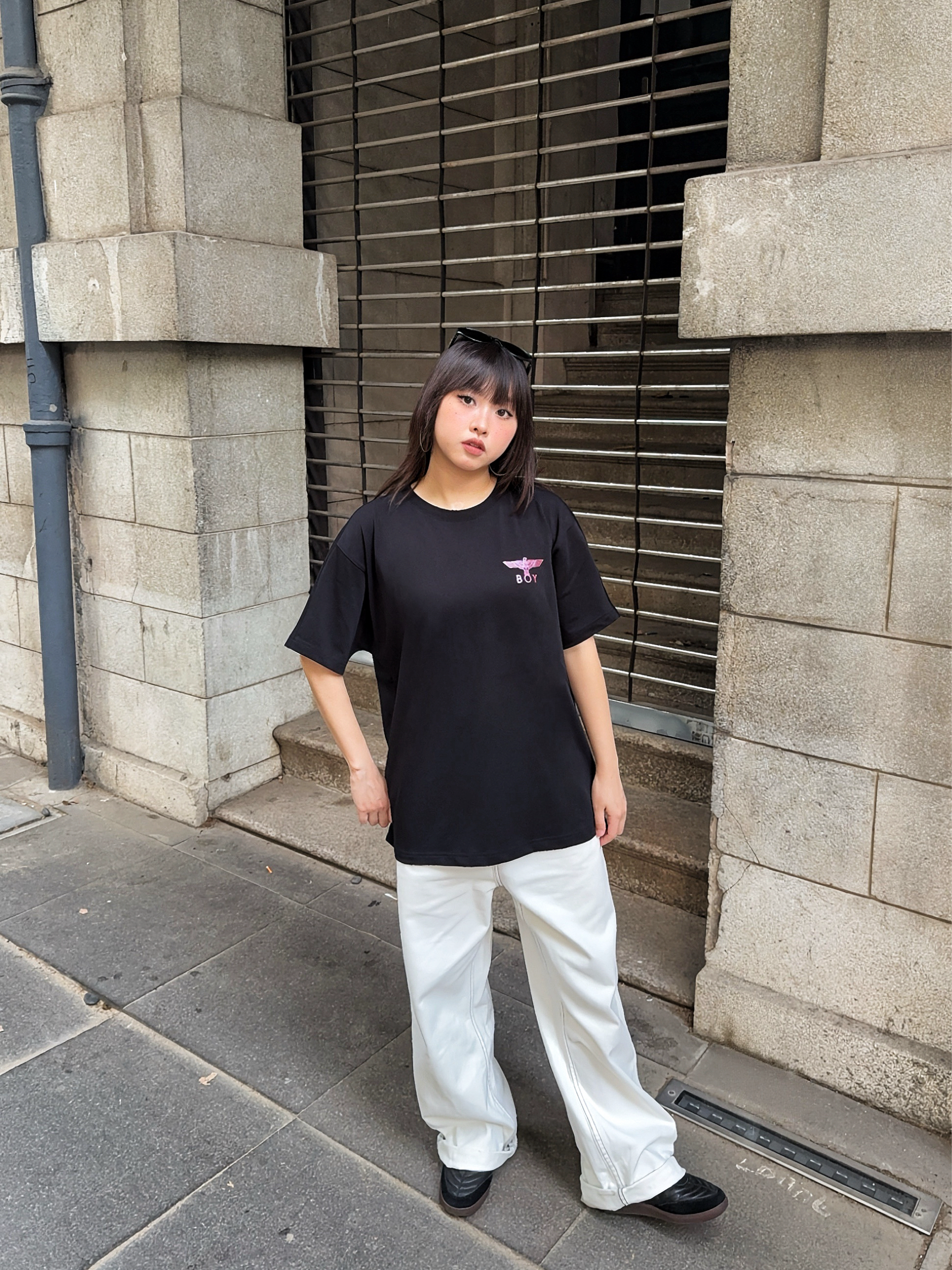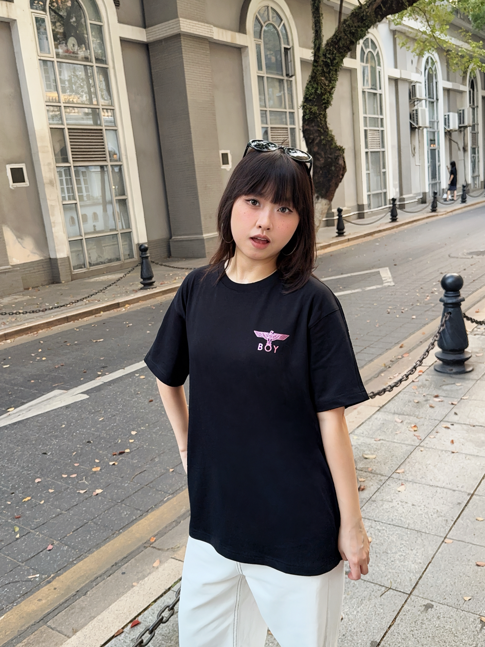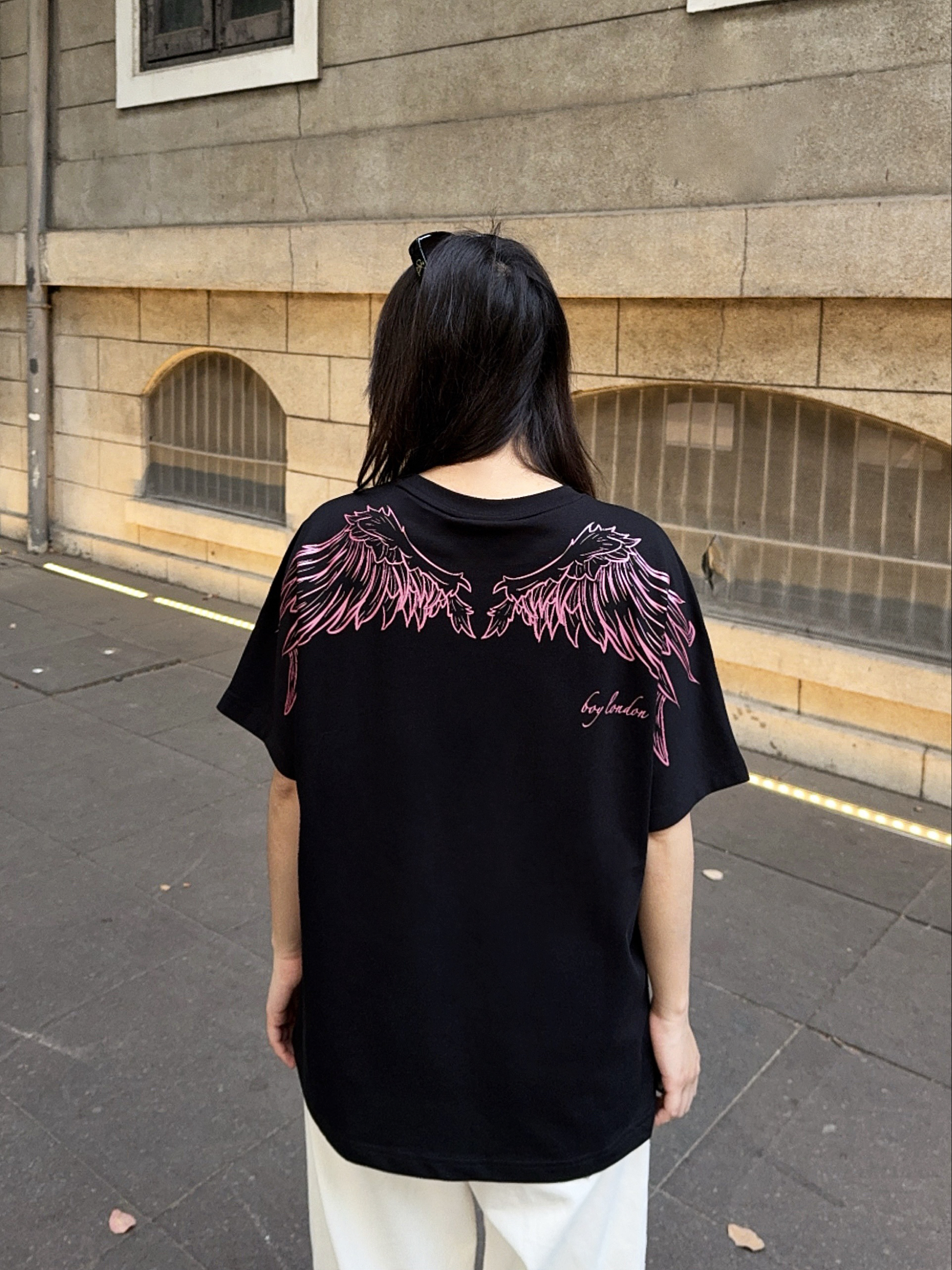 春夏短袖来啦!小众不撞款的那种✨ Boy London 粉翼短袖,🖤🩷粉黑配色加上背面甜酷的🪽印花,甜酷girl的本命款! ☑️而且是正肩的版型、面料也蛮好穿的,通勤出游搭配很🉑
