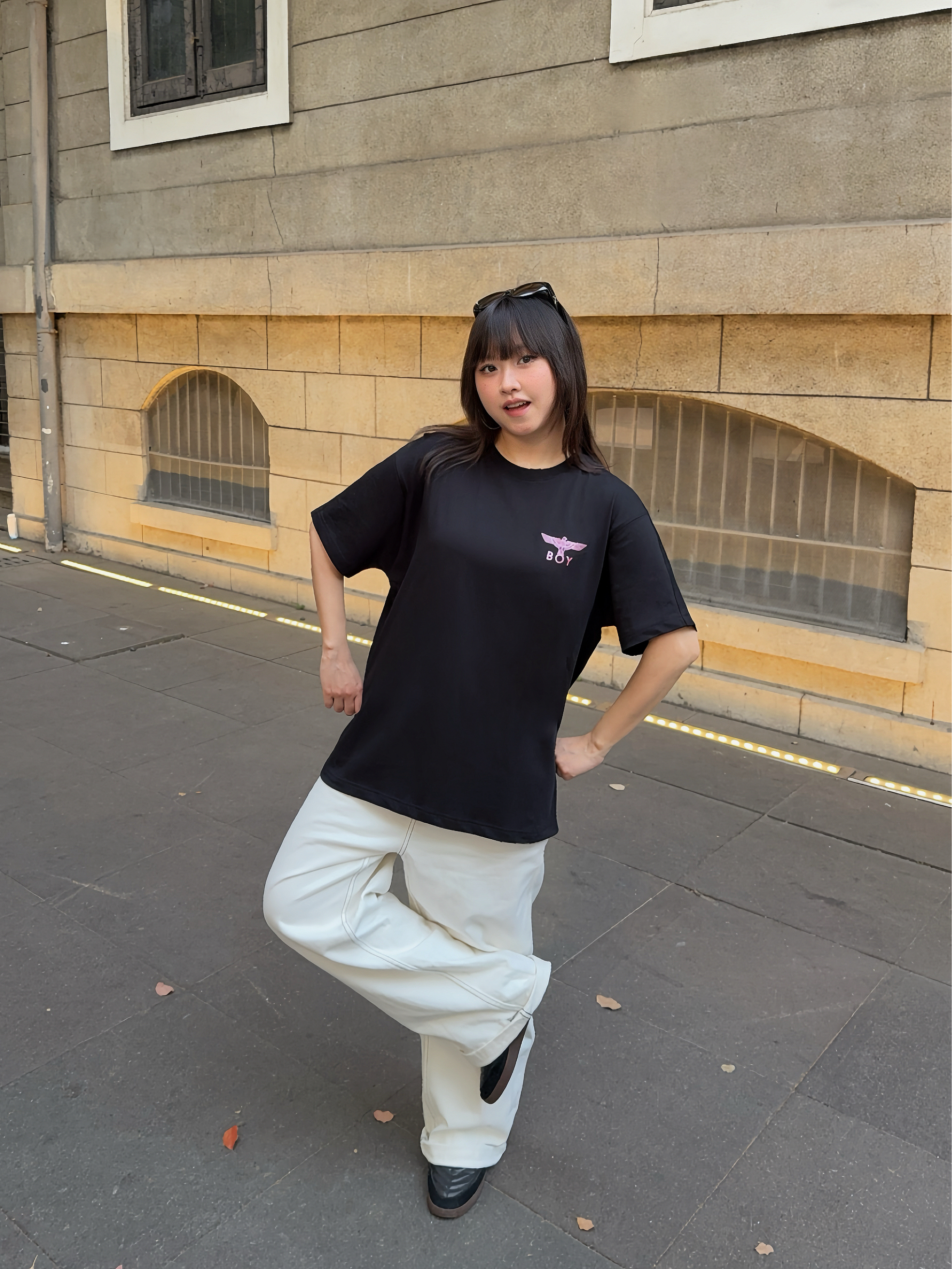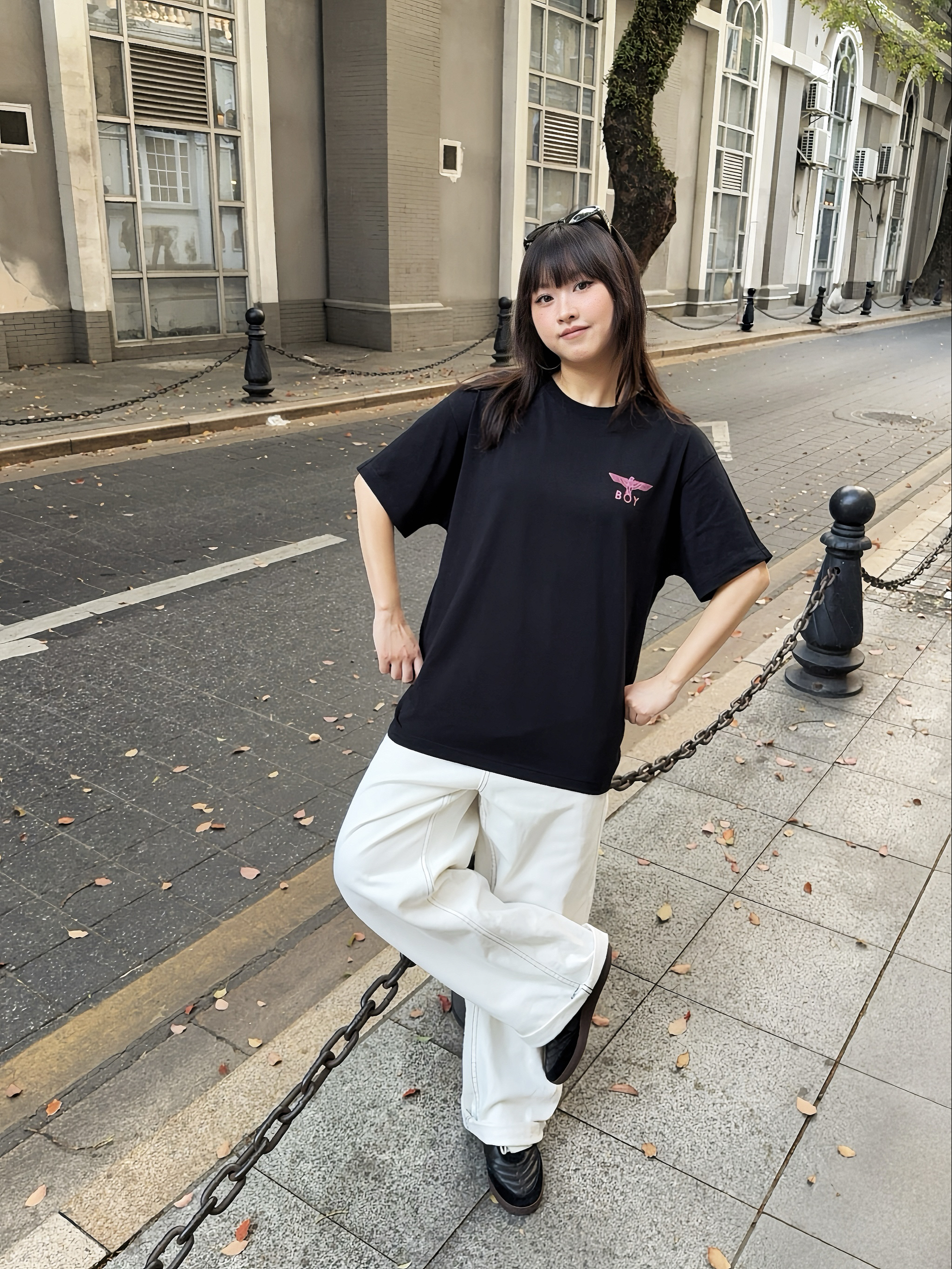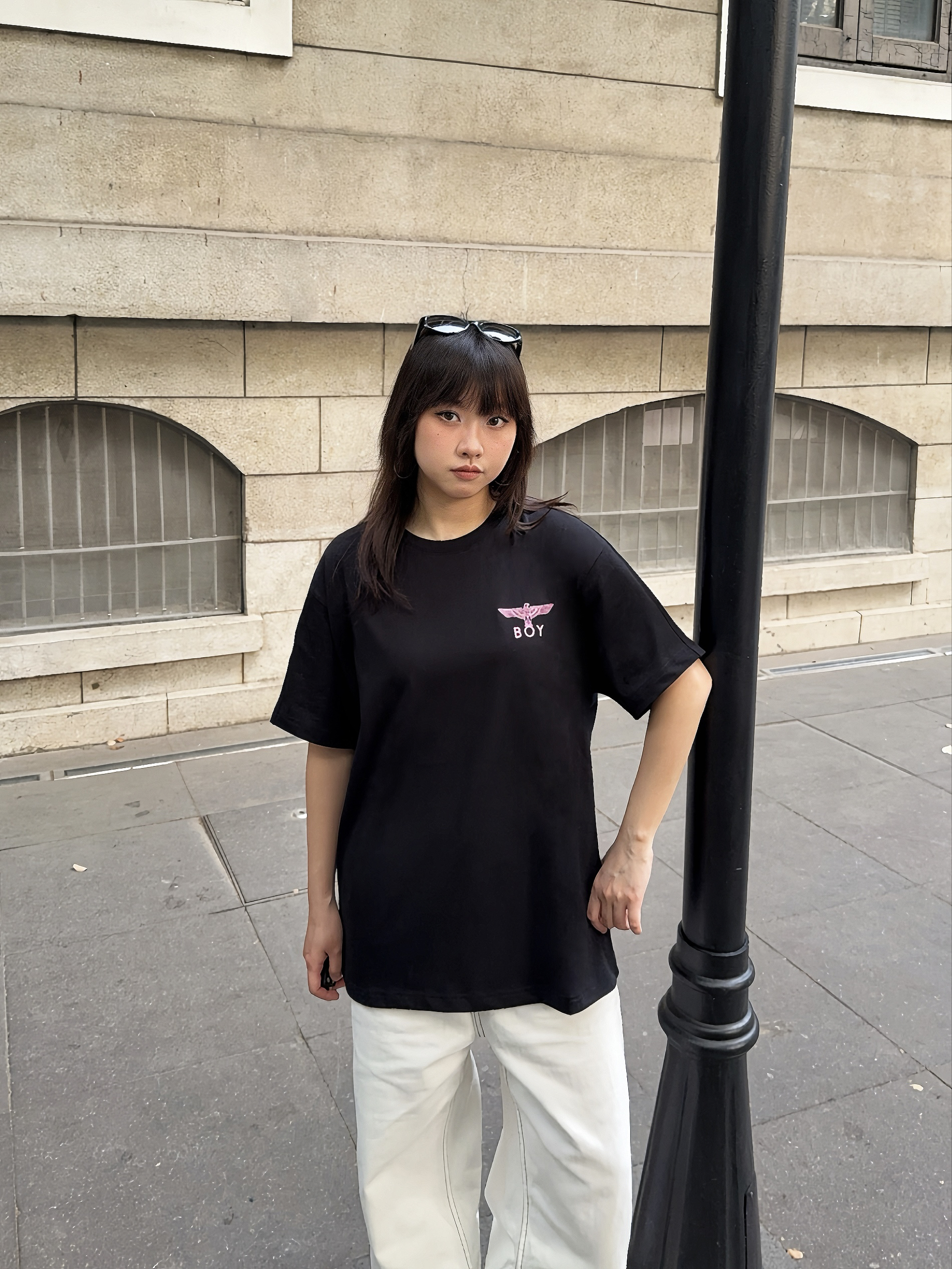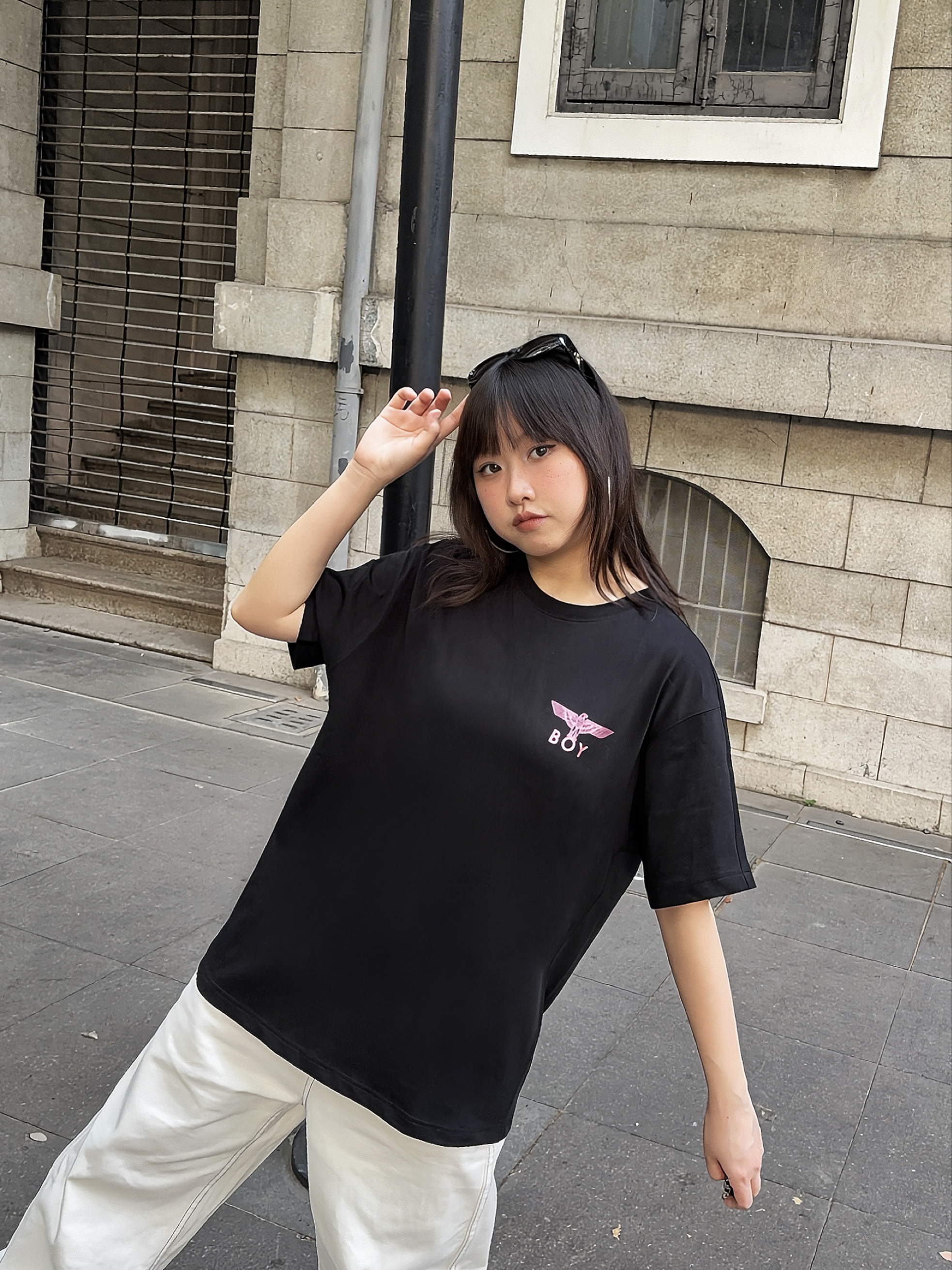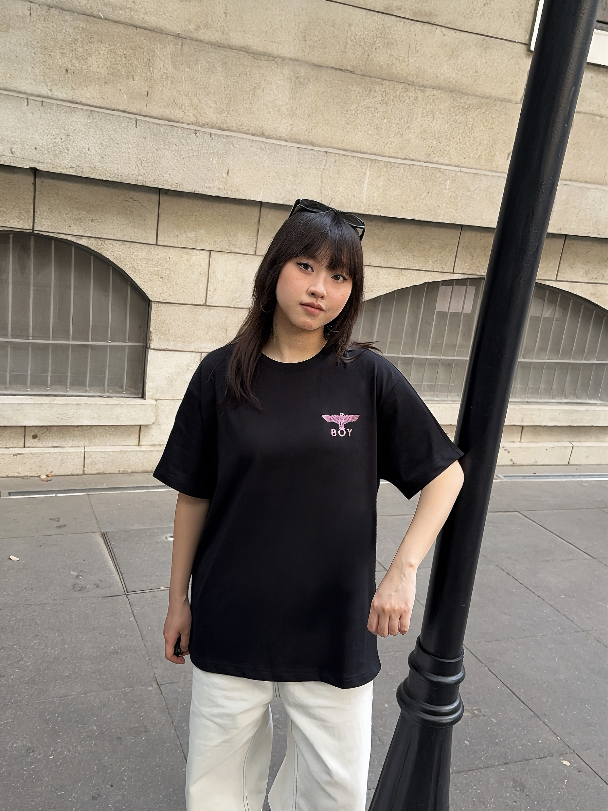 春夏短袖来啦!小众不撞款的那种✨ Boy London 粉翼短袖,🖤🩷粉黑配色加上背面甜酷的🪽印花,甜酷girl的本命款! ☑️而且是正肩的版型、面料也蛮好穿的,通勤出游搭配很🉑