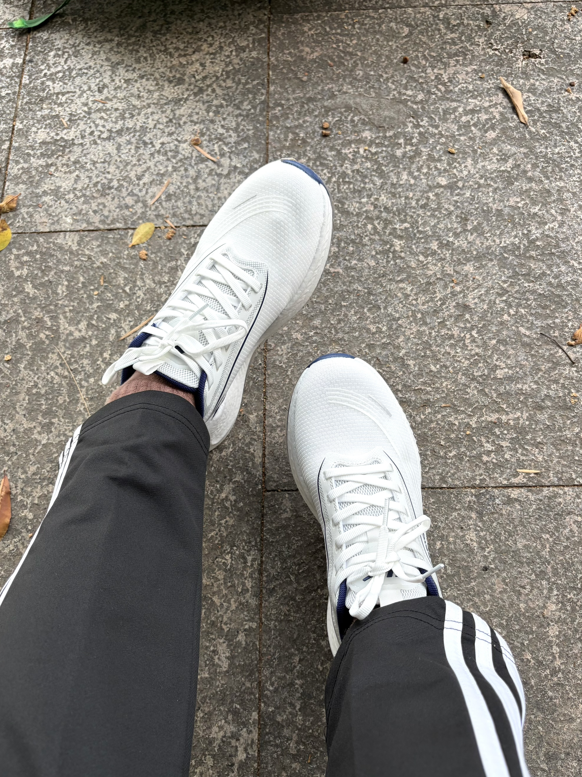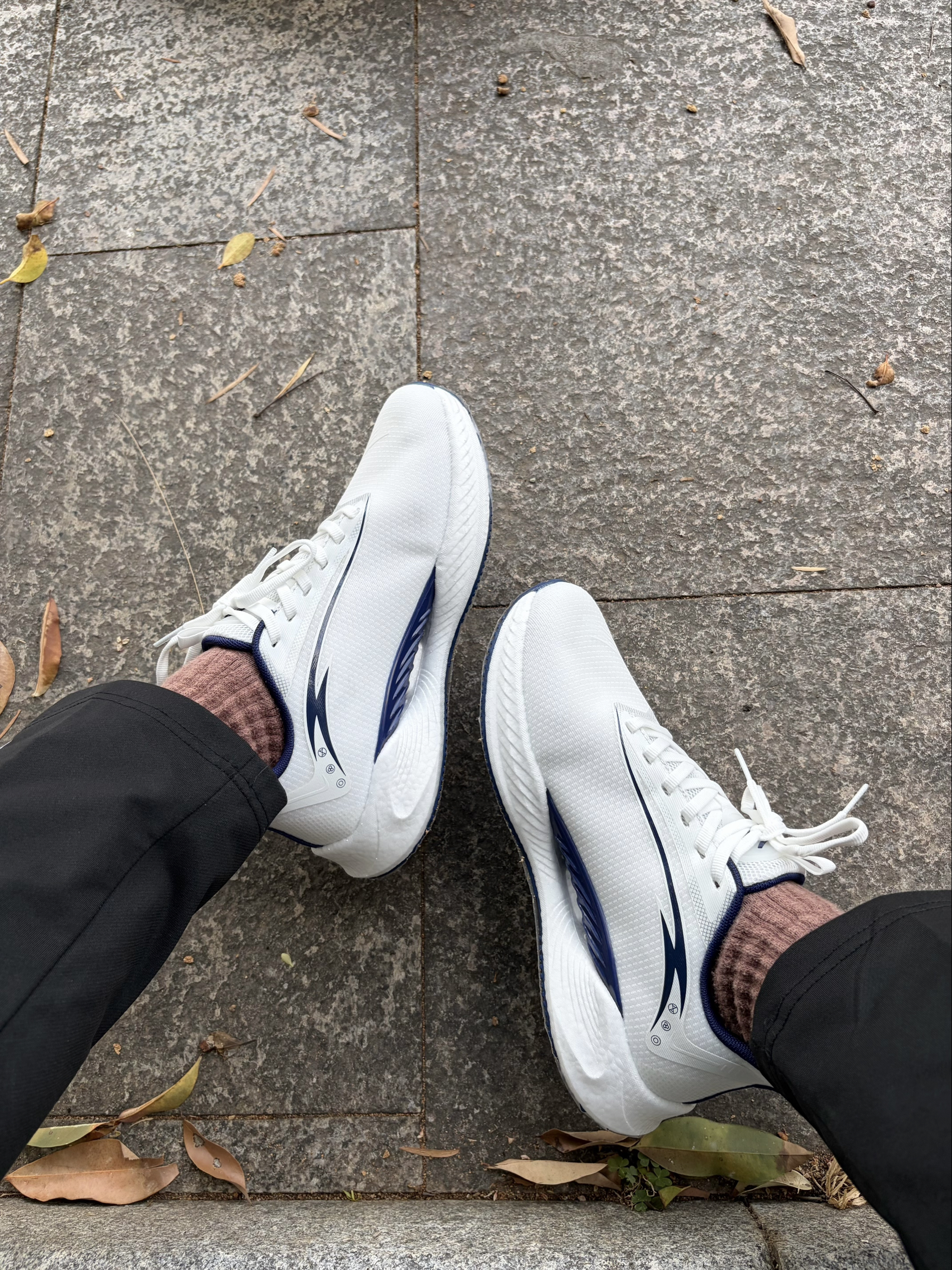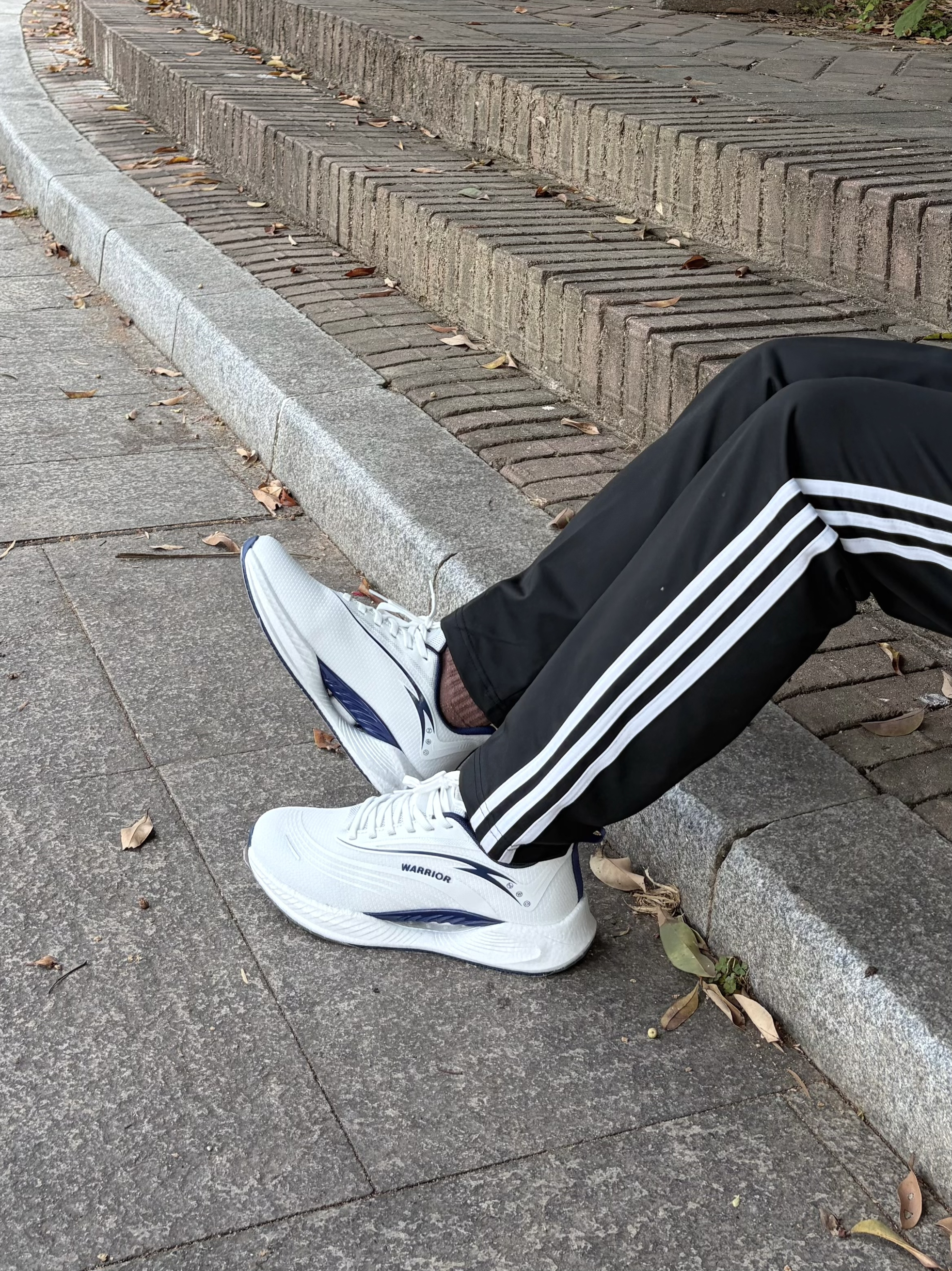 Warrior/回力 这双休闲鞋👟 成功治愈了我的出门焦虑🫸 白深蓝配色简约清新🔥 织物鞋面轻盈透气🌬️ 跑鞋般的脚感轻便不累 通勤or散步都合适🏃 搭件浅蓝外套👔配运动裤👖 简约又清爽 主打一个自在松弛🥰