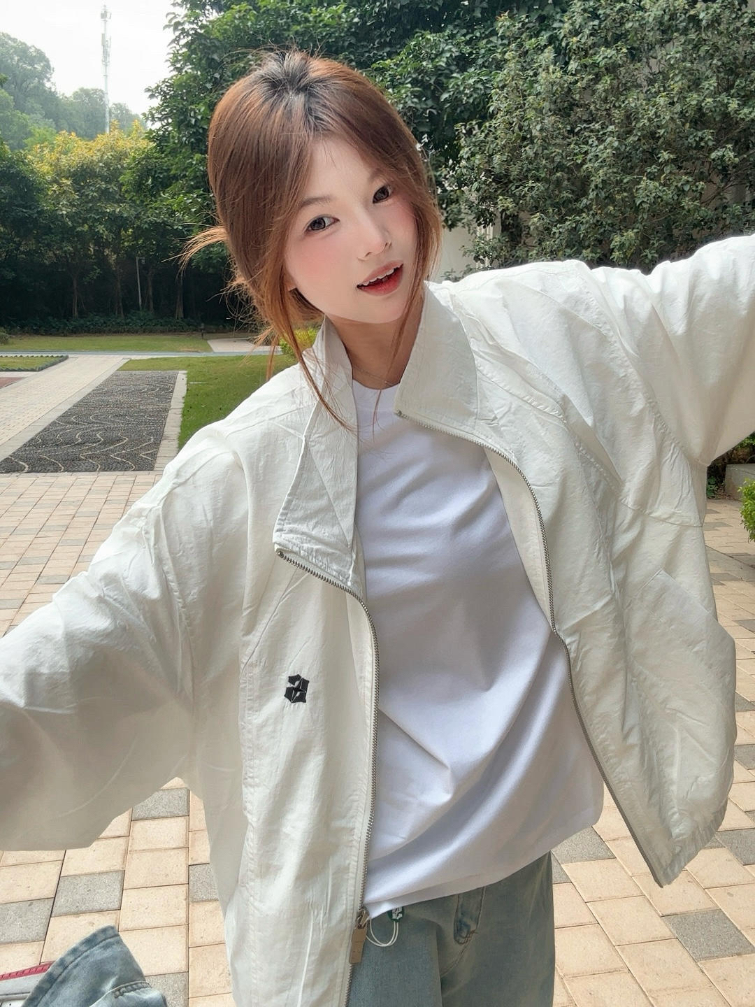 这件奶fufu的白外套真的太戳我了💭 立领设计+斜拉链,随性又显瘦 轻薄透气还能防晒,春夏秋三季都能穿 宽松版型藏肉又慵懒,随便搭都很韩系 出门随便抓一件就好看,懒人穿搭福音✨