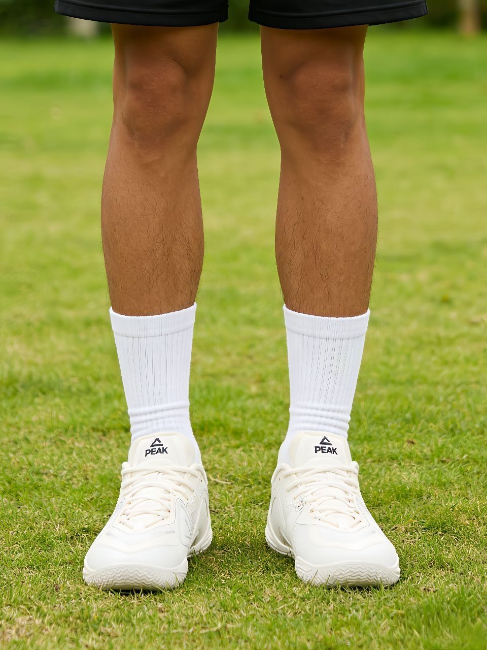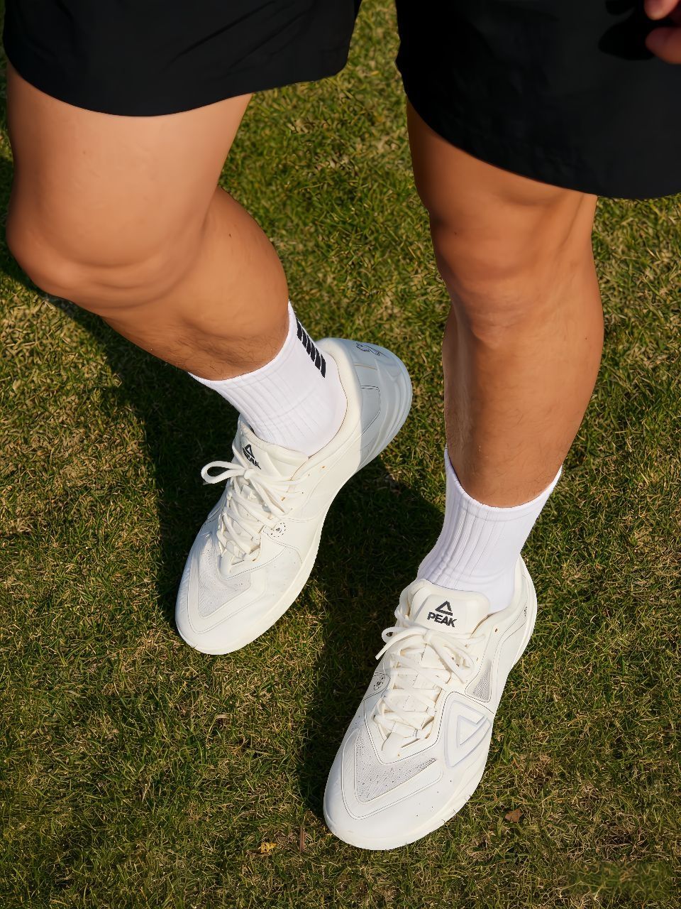 这鞋真就“鞋脚一体”了!上脚没啥存在感,但一跑一蹦,态极缓震就来了——落地软弹,启动还不拖沓,贴地感贼强,变向时防滑抓地稳得一批。低帮灵活,包裹紧实不勒脚,打完几场脚踝没负担。网上都说它是“水平缓震”,我觉着就是前掌薄后掌软,全场跑下来膝盖没啥感觉。乳白配色耐看又百搭,耐磨也够用,外场随便造。想找双实战舒服、不花哨的,这双闭眼冲!