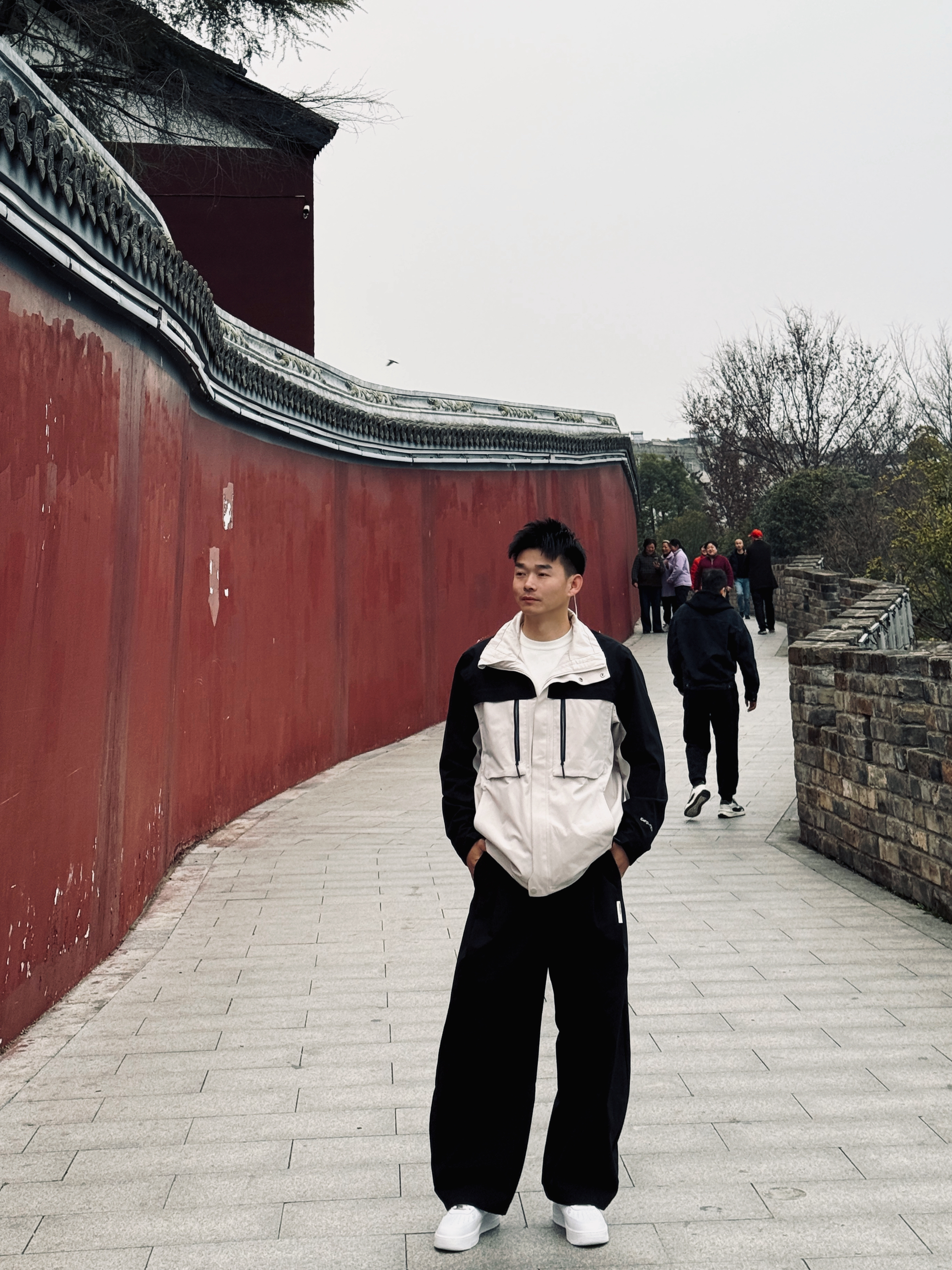 黑白配色,松弛有度。 穿梭在江景与红墙之间,用脚步丈量城市,随手一拍都是大片。 简单随意,生活与自由兼得~ 码数给大家参考下~ 身高: 175 体重:125斤 穿:L