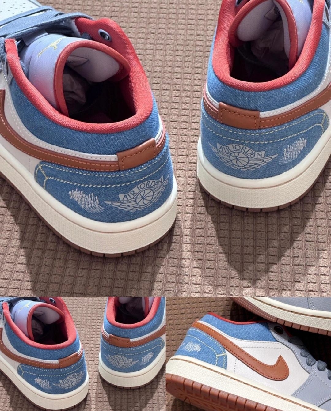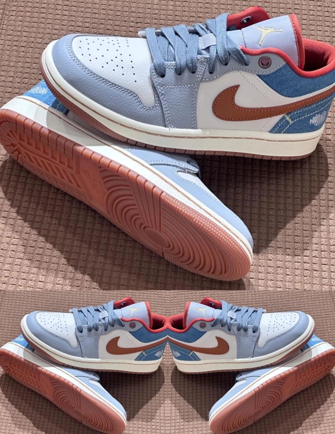 救命!这双AJ1真的长在我审美点上了 清爽白蓝配色+牛仔布拼接,自带做旧感 焦糖色Swoosh和红内衬撞色超吸睛 后跟的麦穗刺绣细节拉满,质感绝了 低帮设计显脚小,配裙子裤子都能hold住 上脚轻便又舒服,日常出街完全不挑搭配 已经成为我近期出门频率最高的鞋了! #AirJordan1 #球鞋推荐 #好穿又好搭 #春季穿搭 #宝藏球鞋