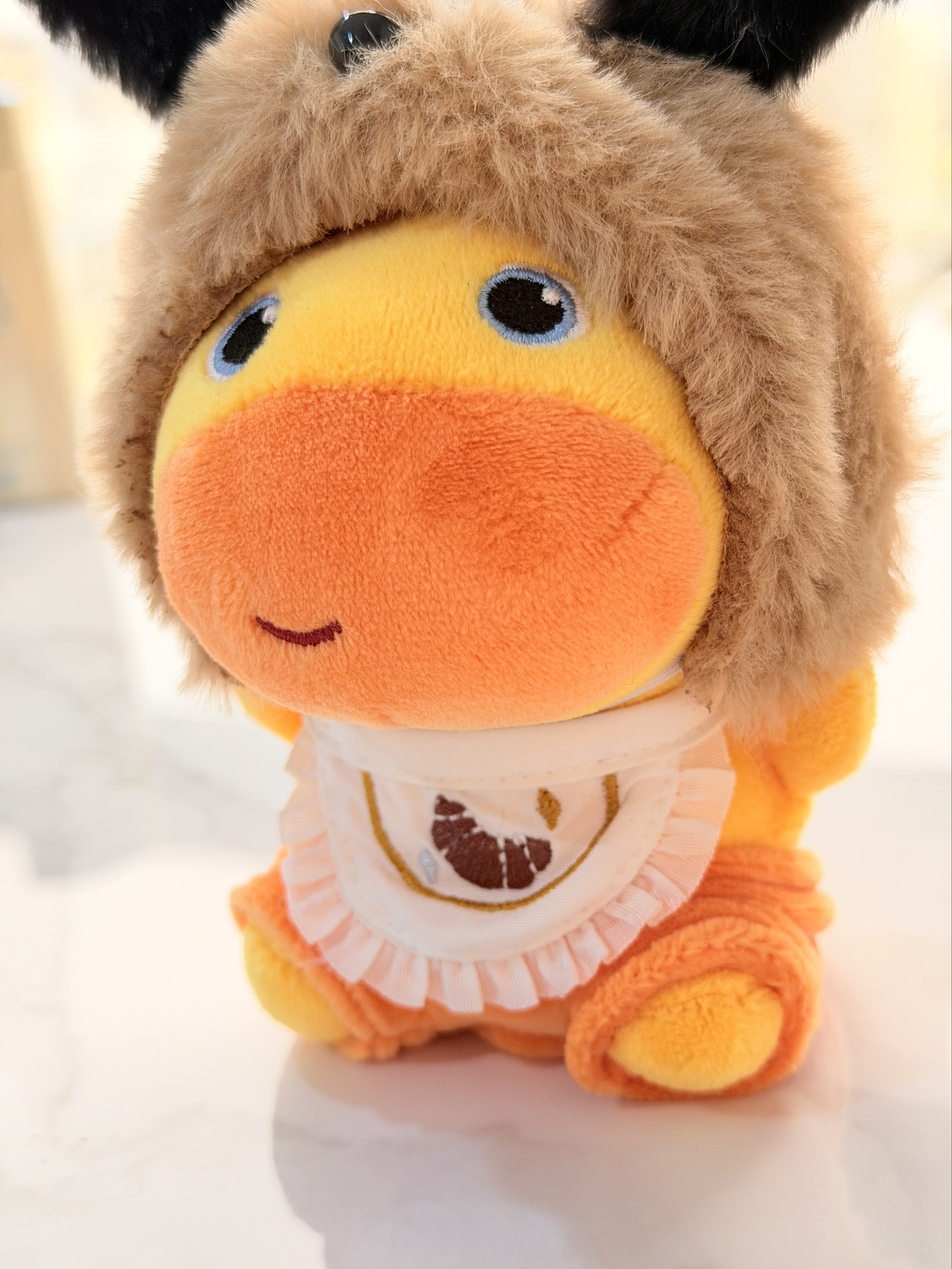 谁懂啊!这个水豚噜噜挂饰直接把可爱焊在身上了! 圆墩墩的坐姿+小狗头套,黑绒耳朵软fufu,围兜上的可颂面包刺绣超精致,一眼就沦陷~ ✅ 治愈系颜值:黄橙配色超元气,笑眼弯弯的表情,看着就心情变好! ✅ 软糯手感:丝滑毛绒面料,捏起来Q弹又舒服,解压神器get! ✅ 百搭实用:10cm小巧尺寸,挂包/挂钥匙都合适,走到哪都带着这份软萌~ 不管是自留当陪伴感小挂件,还是送朋友当惊喜礼物,都超有心意✨...