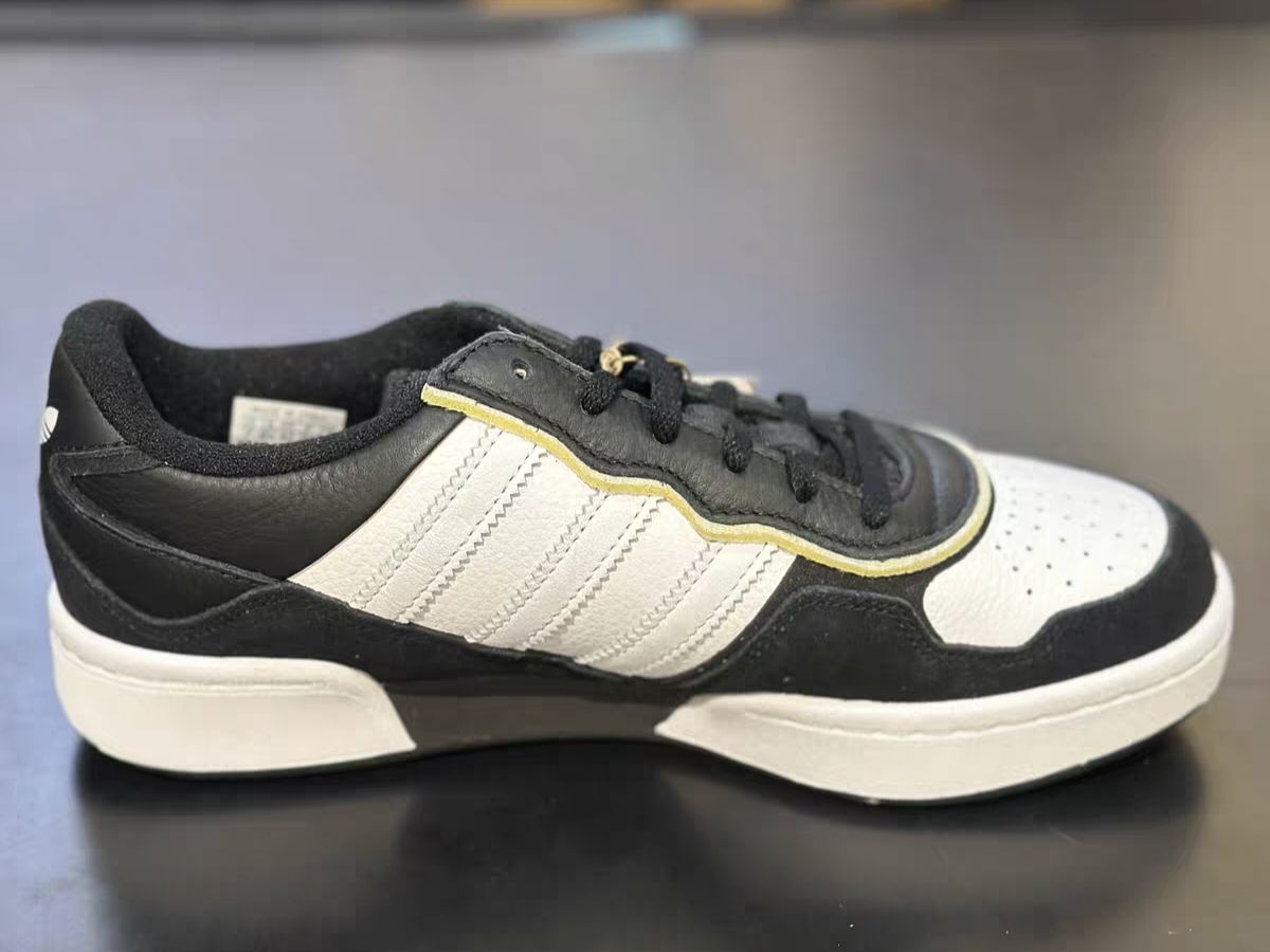 - 经典配色+金边细节:黑白撞色永不过时,金色线条点缀瞬间提升高级感,不管是日常出街还是通勤约会,都能轻松hold住各种风格,上脚就是美式复古少年感 - 扎实用料:荔枝纹皮革+麂皮拼接鞋面,质感拉满还耐穿,透气孔鞋头设计,夏天穿也不闷脚,柔软填充鞋舌+厚实中底,久走不累,日常通勤完全没问题 - 高性价比之选:对比同价位板鞋,这双无论是材质还是设计都更能打,三叶草经典Logo+侧边三条纹,辨...