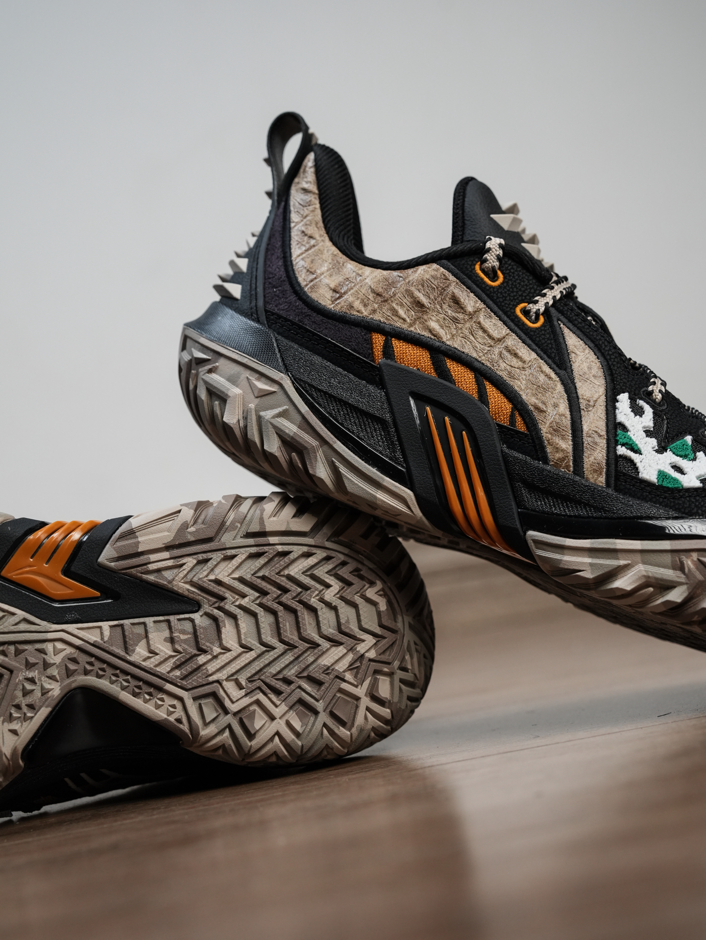 #新鞋零时差 桀骜系列向来是外场学生党的心头好,这双桀骜3「万兽之王」直接把历代经典配色揉进鞋面:1代野兽、画报,2代黑豹、绿斑蝶,3代尼罗鳄、虎爪的设计痕迹都藏在细节里,视觉野性十足。实战上更轻盈均衡,内外场都适配,变向稳定、外底耐磨,是一双能打全场的全能实战鞋。