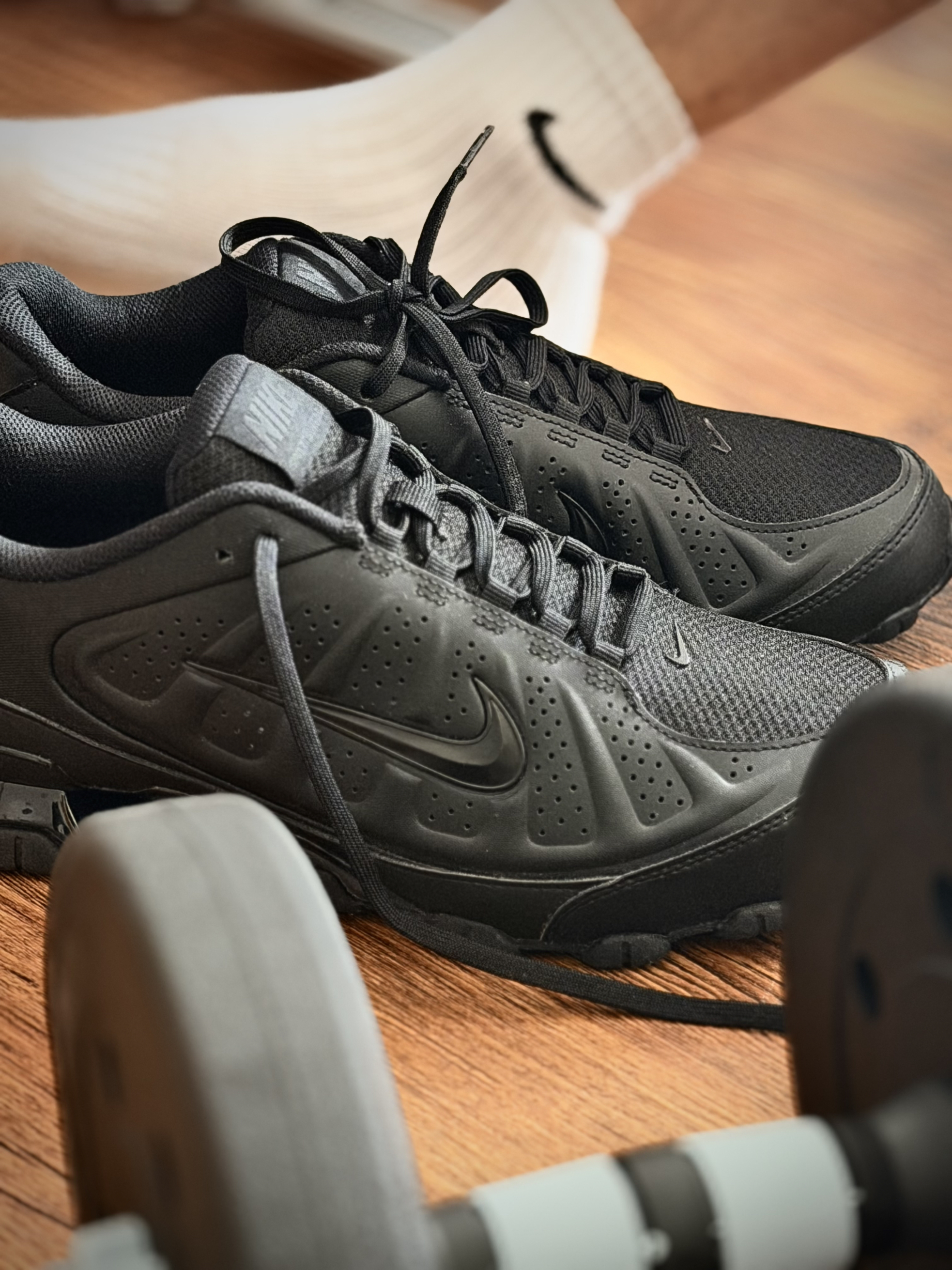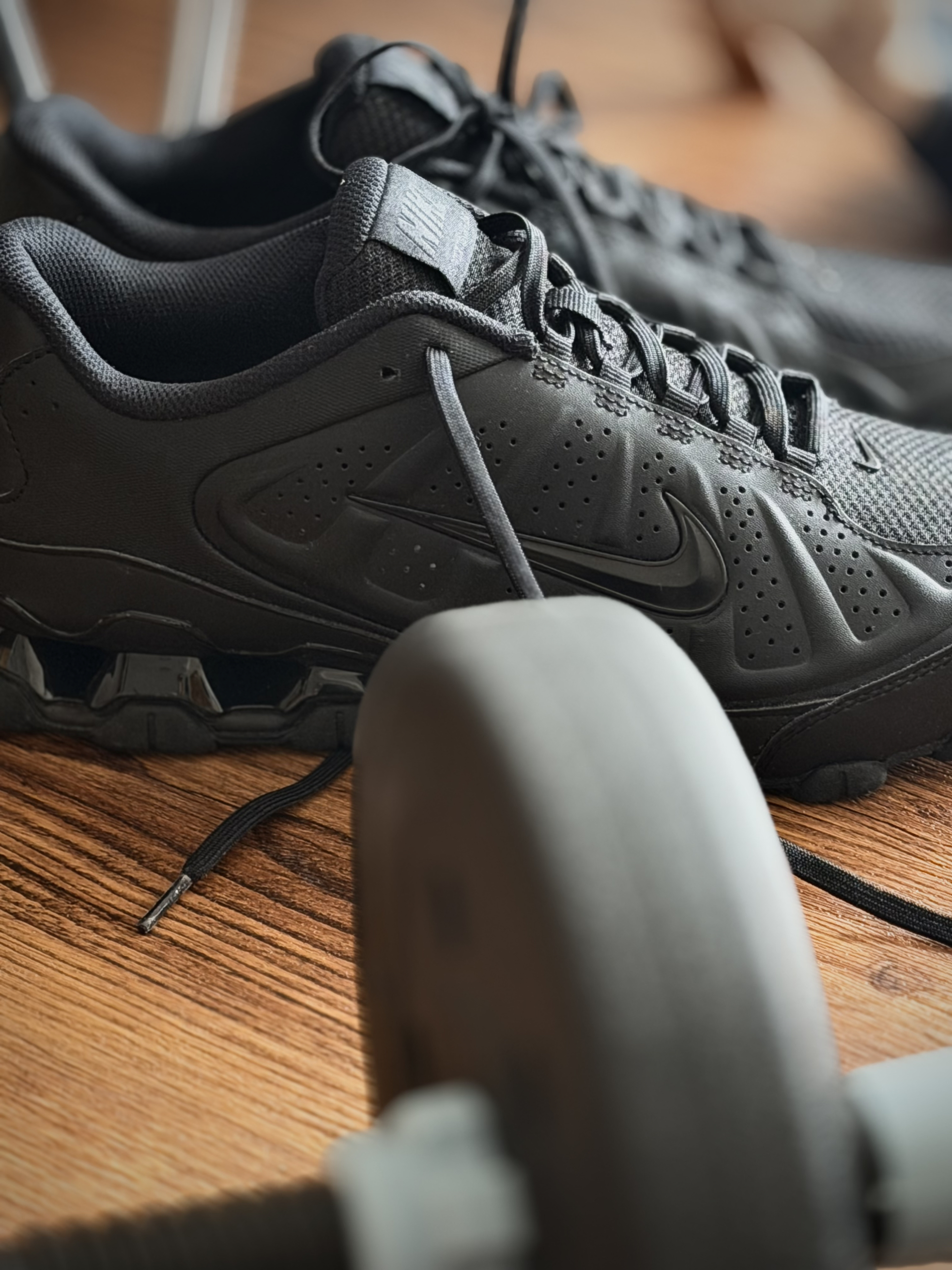事情是这样的—— 今天下班约了健身搭子一起去练腿。换完衣服准备出门,突然意识到:还得带双训练鞋? 公司鞋柜里已经放了一双通勤穿的板鞋,包里再塞一双鞋,又重又占地方。背着挤地铁,想想都累。 正纠结的时候,低头看了一眼脚上——这双Nike Reax 8 NSW,不就是拿来干这个的吗? 当初买它,就是图个省事 黑色,低调不张扬,配束脚裤上班穿不违和。 Reax缓震,走路有回弹,站一天不累。鞋...