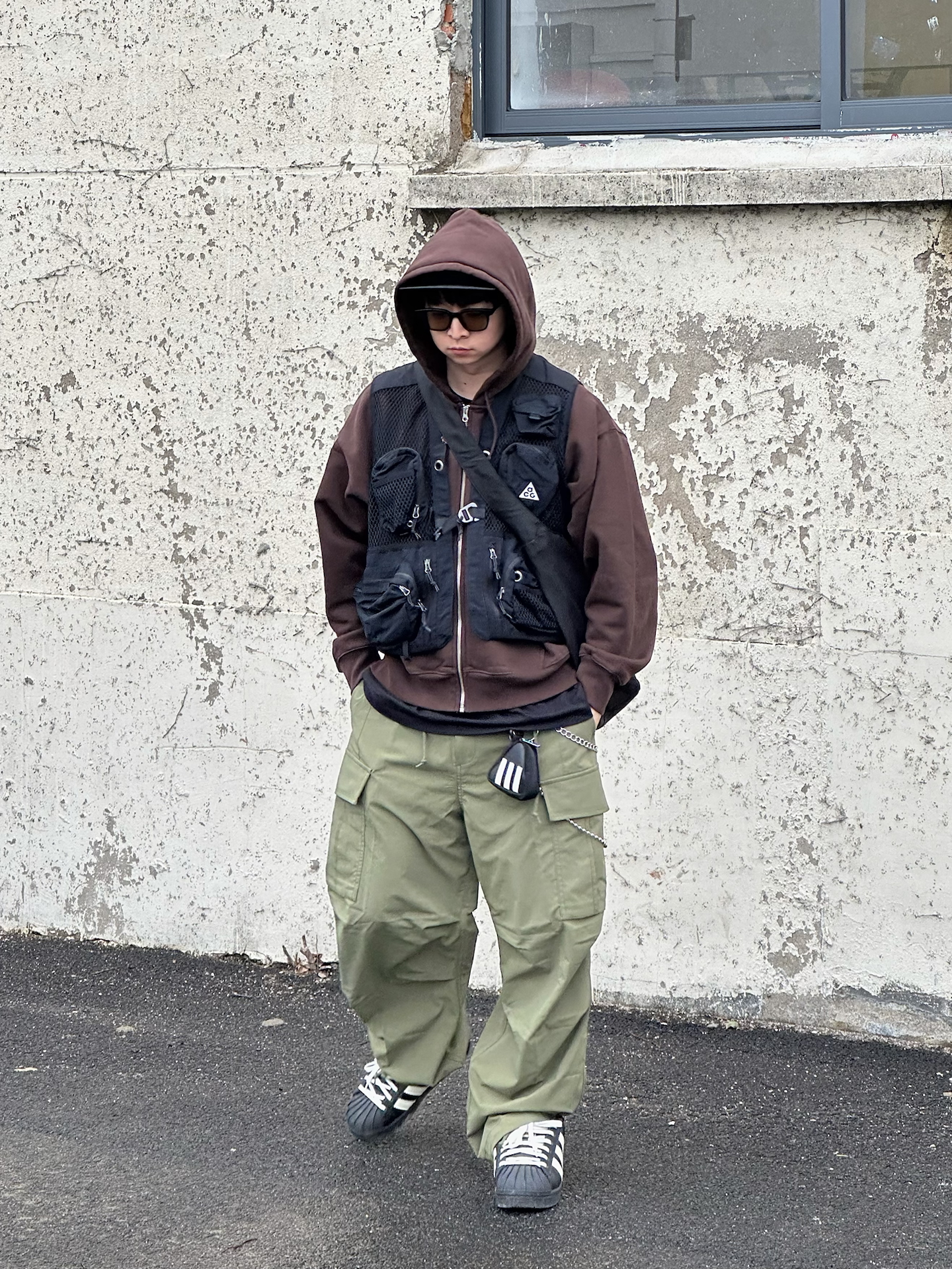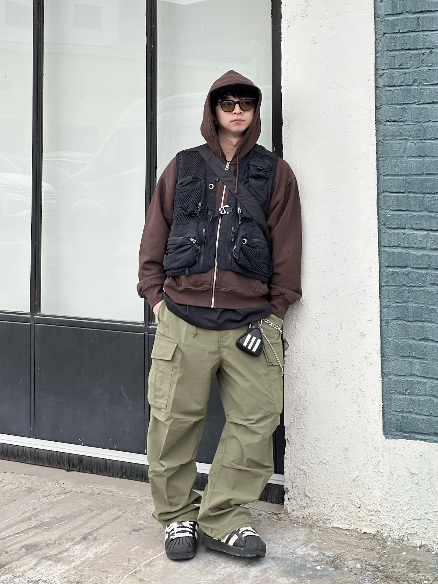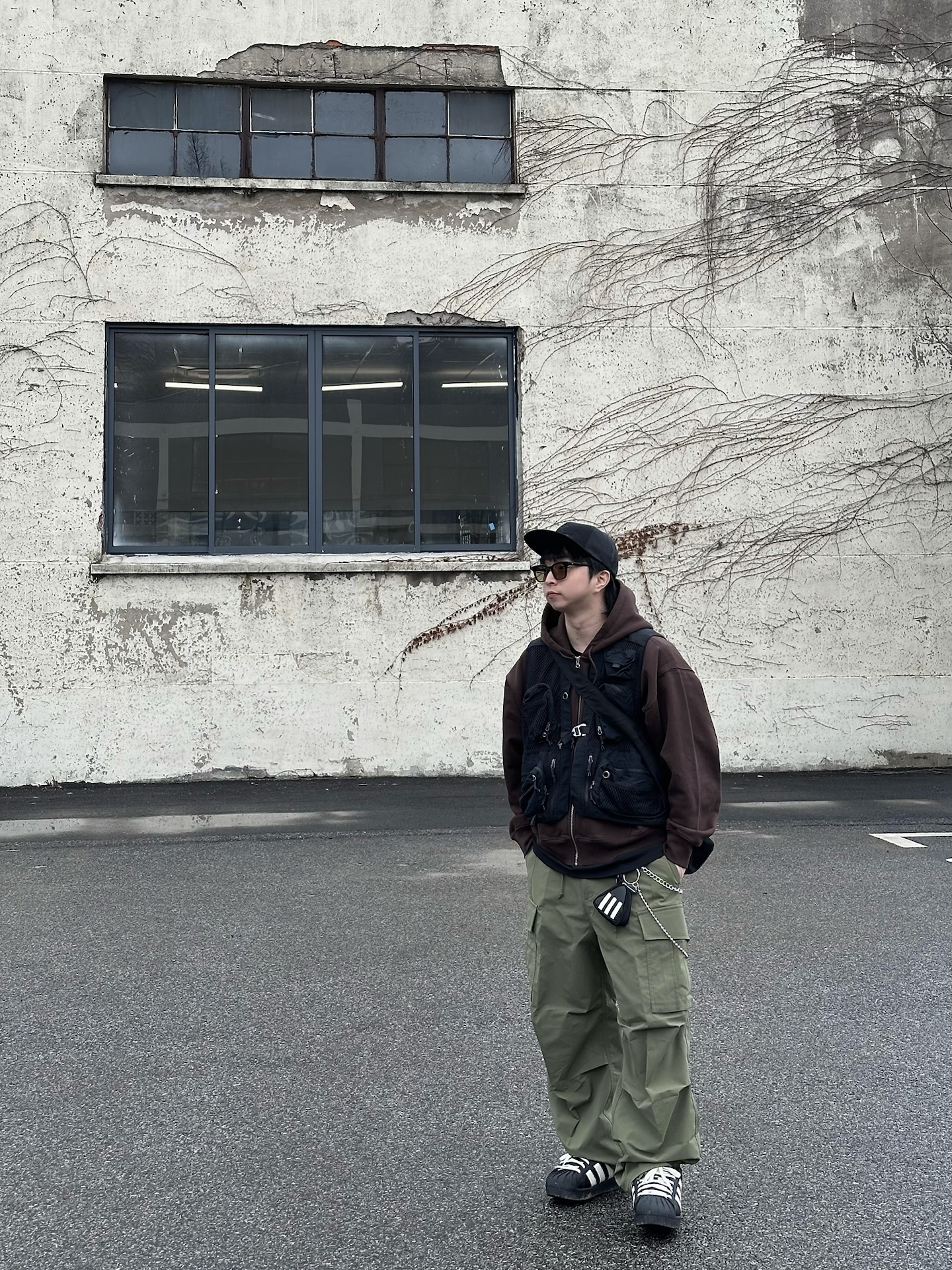 哈喽👋🏻大家好哇 这里是🪨石地夫的穿搭小日记📝 - - 深咖连帽卫衣叠穿黑色多口袋机能马甲,层次感瞬间有了👍🏻 - 军绿多袋工装裤,宽松直筒版型修饰腿型,裤腿的立体口袋很实用,走路带风🍃 - 脚踩菲董贝壳头面包鞋,整体配色简单又高级,日常出街、citywalk穿它,舒适度和时尚度全拿捏🤏🏻 - 早春就这么穿,低调又吸睛👀 #裤子选的好穿搭没烦恼 #10s学会穿搭技巧 #潮人的春天来了 #一件...