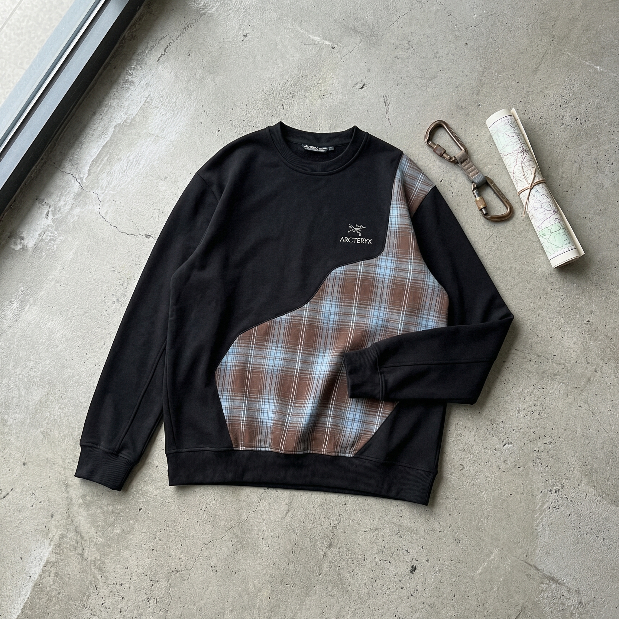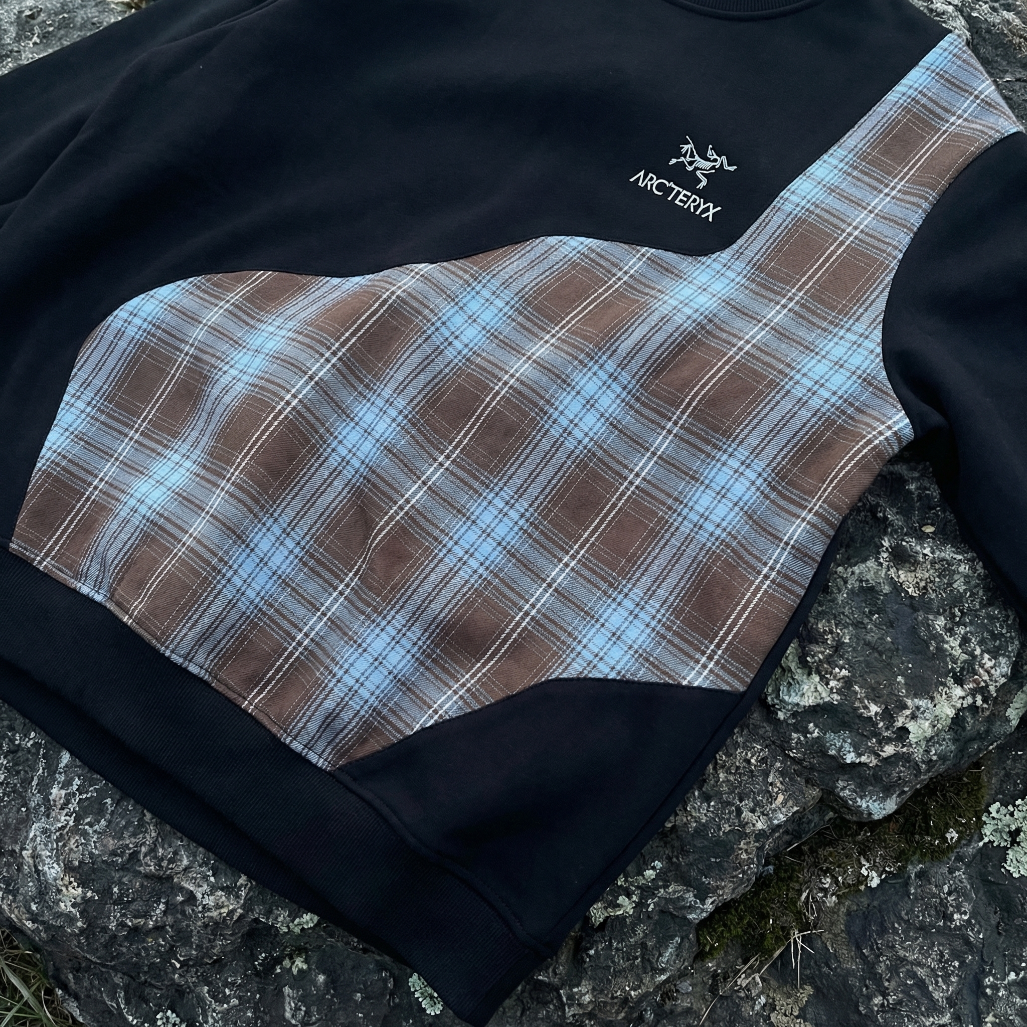 这件卫衣真的好戳我!黑色基底超百搭,侧边棕蓝格纹拼接很有设计感,小标细节也精致。面料软软的很舒服,宽松版型日常穿毫无束缚,甜妹也能轻松驾驭的潮款,穿上身温柔又随性。