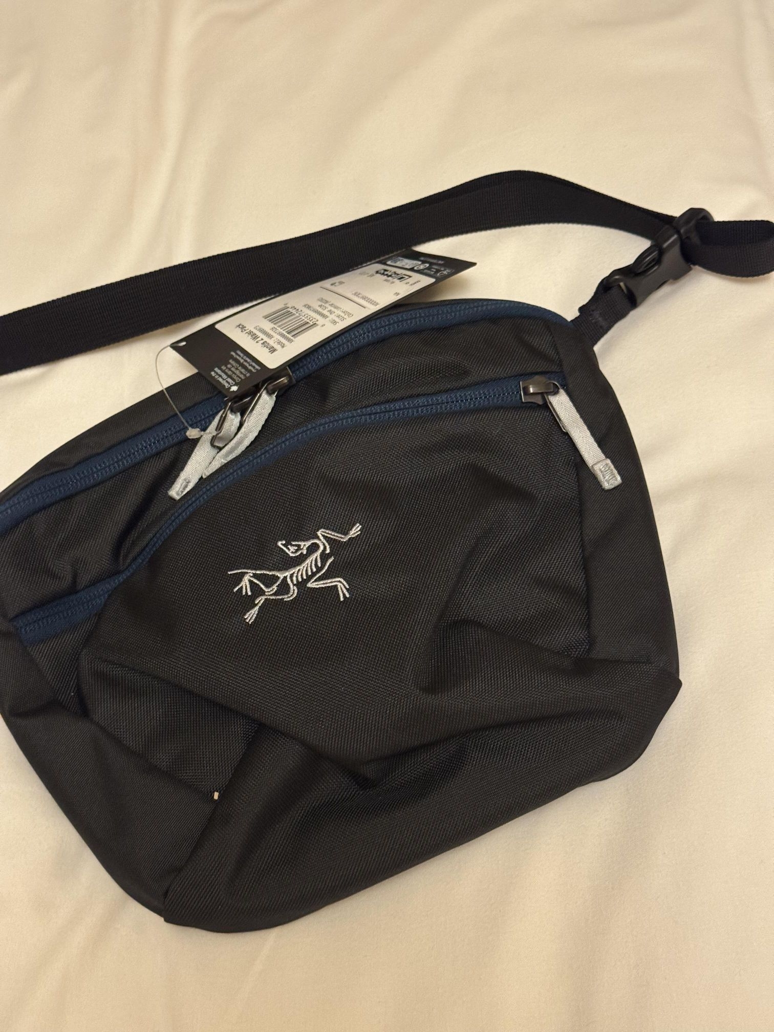 🎒始祖鸟Mantis 2腰包,2.5L容量,防泼水尼龙材质,轻便耐用,适合通勤、徒步、旅行等多场景。肩带可调节,支持腰包、斜挎、单肩多种背法,灵活实用✨。黑色主色+蓝色拉链,低调有型,刺绣Logo超有辨识度。内部多隔层,收纳手机、钥匙、钱包超方便,满足日常需求👍。