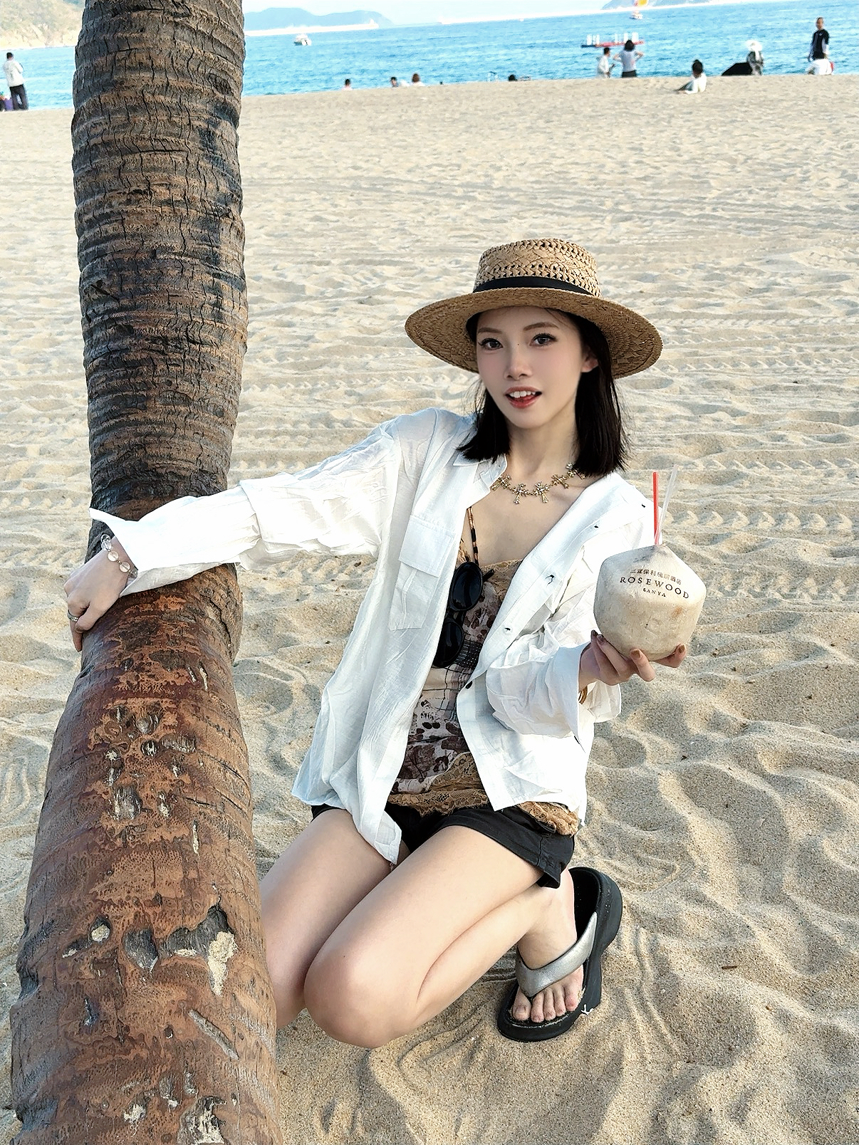 豹纹蕾丝吊带➕工装短裤 松弛感拉满 白衬衫可以防晒 也增加了层次感 帽子真的很百搭~