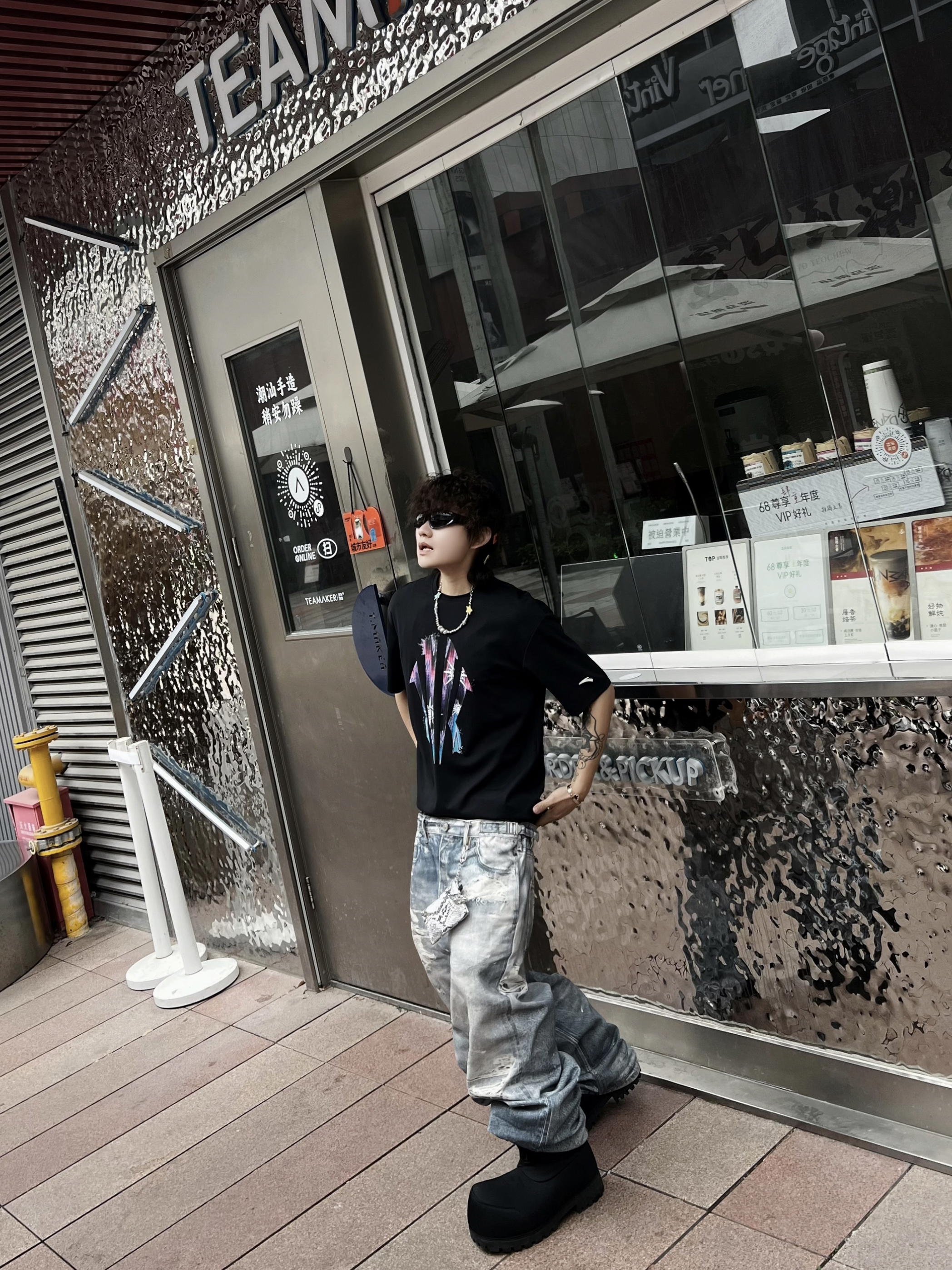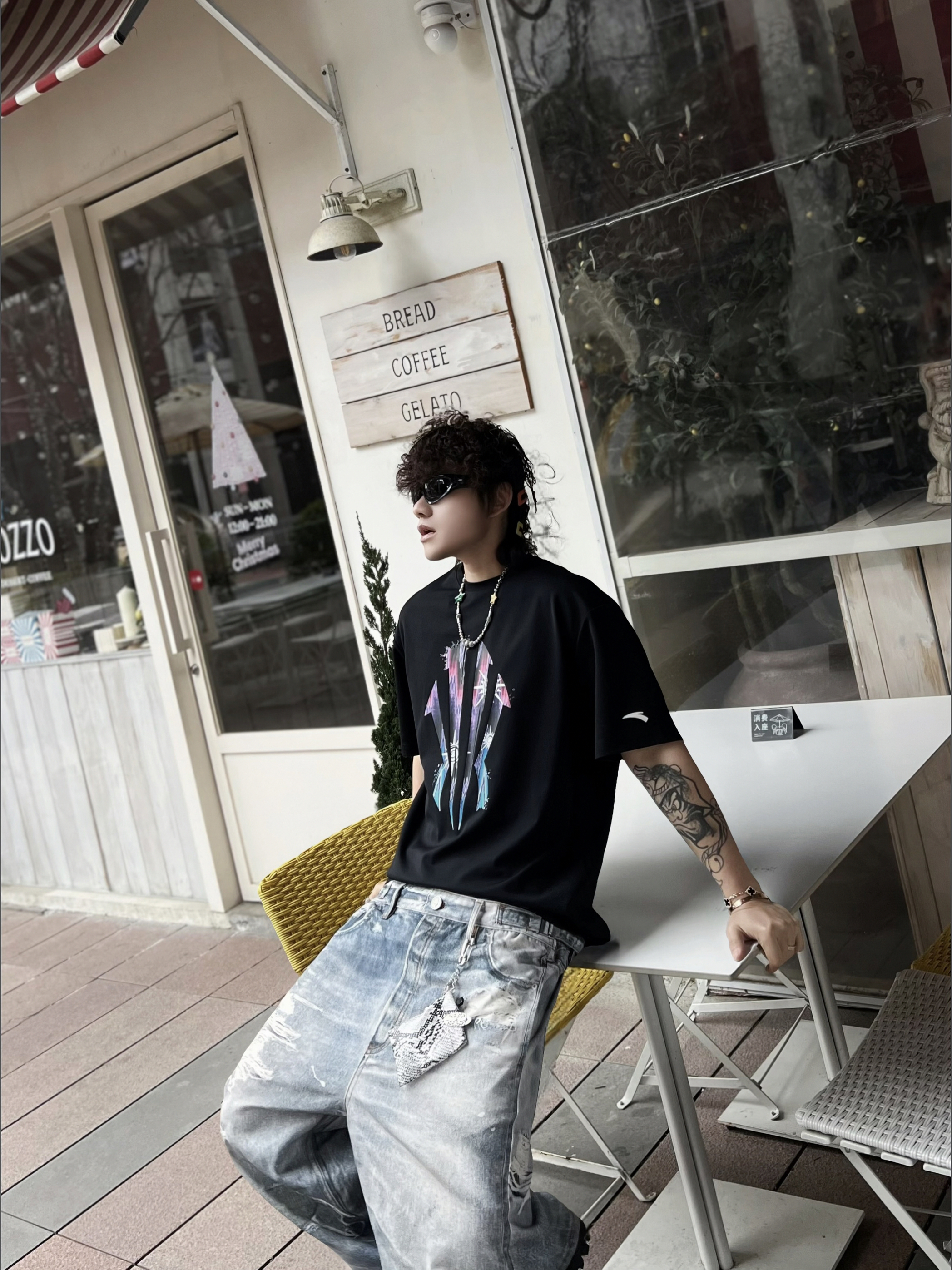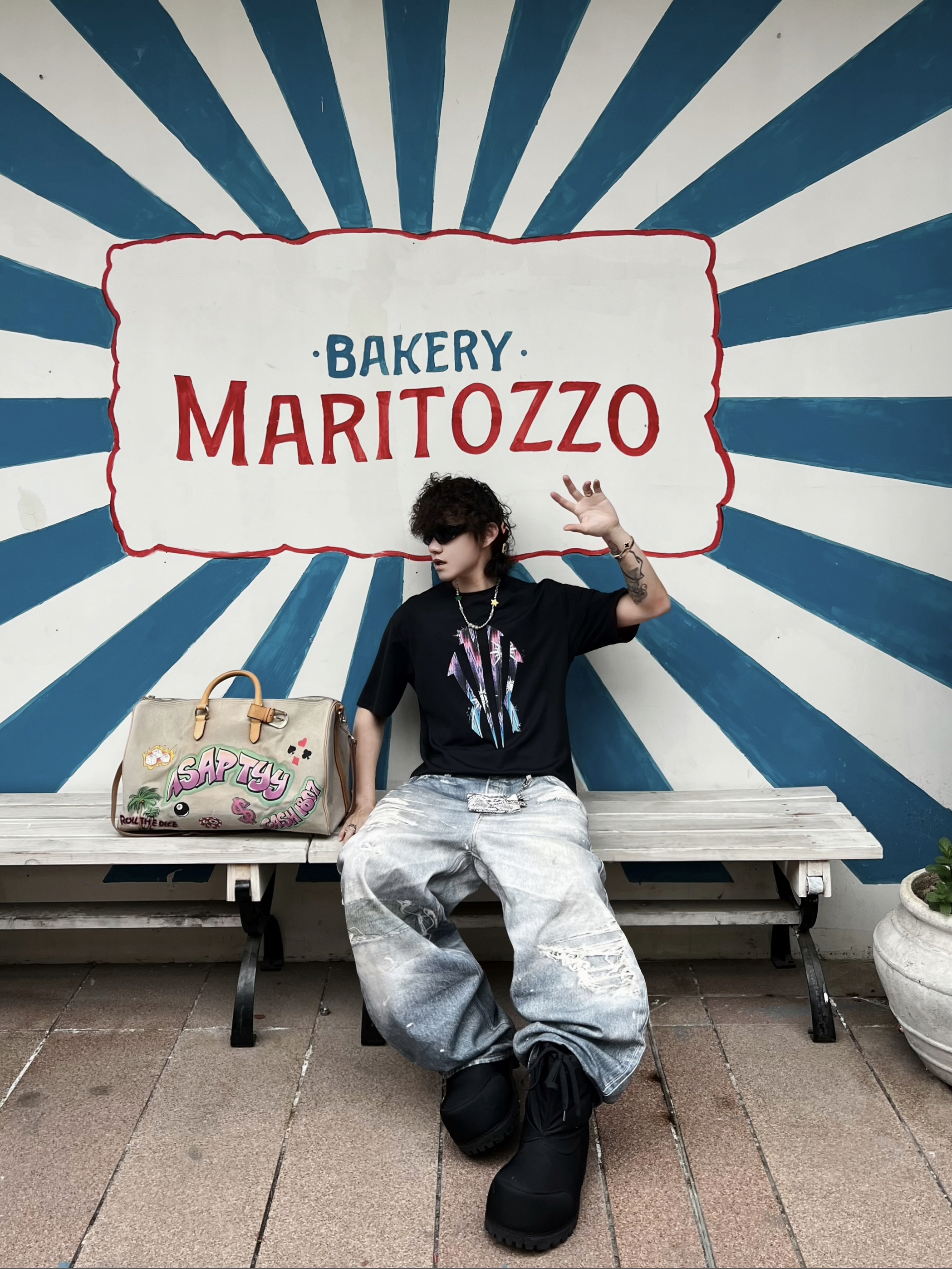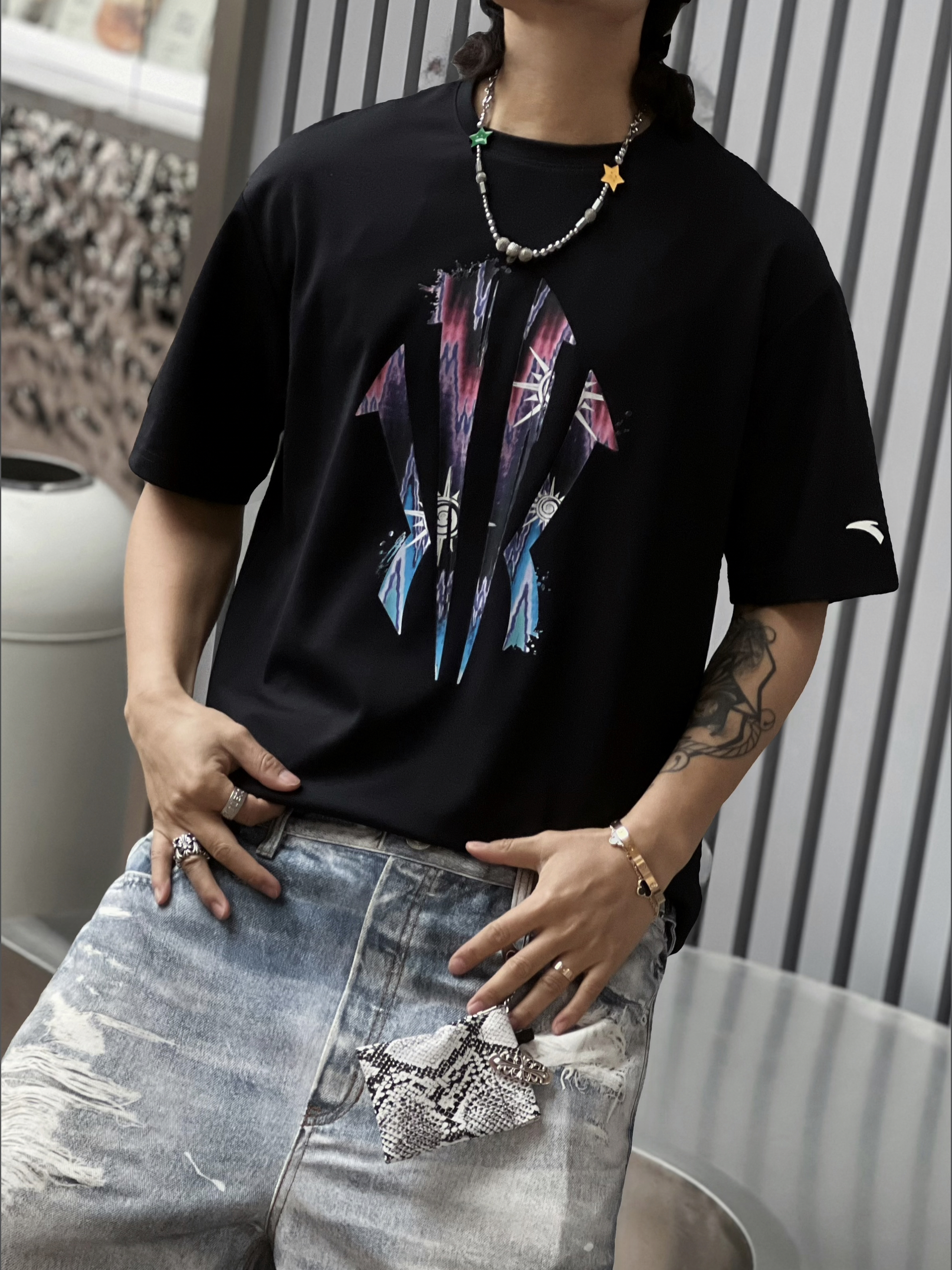 Hi、这里是有点懒的薯条🍟~ ☑️黑T+牛仔的经典组合,被我玩出了新花样! 🔘安踏欧文短袖的渐变印花太吸睛🥊 运动感与潮流感并存😘 🛺做旧水洗牛仔+破洞设计,sagging穿法慵懒又不羁 厚底黑靴踩出气场,配饰点缀让整体更有层次 不用刻意凹造型,随便一站都是街头大片📸 👔 安踏