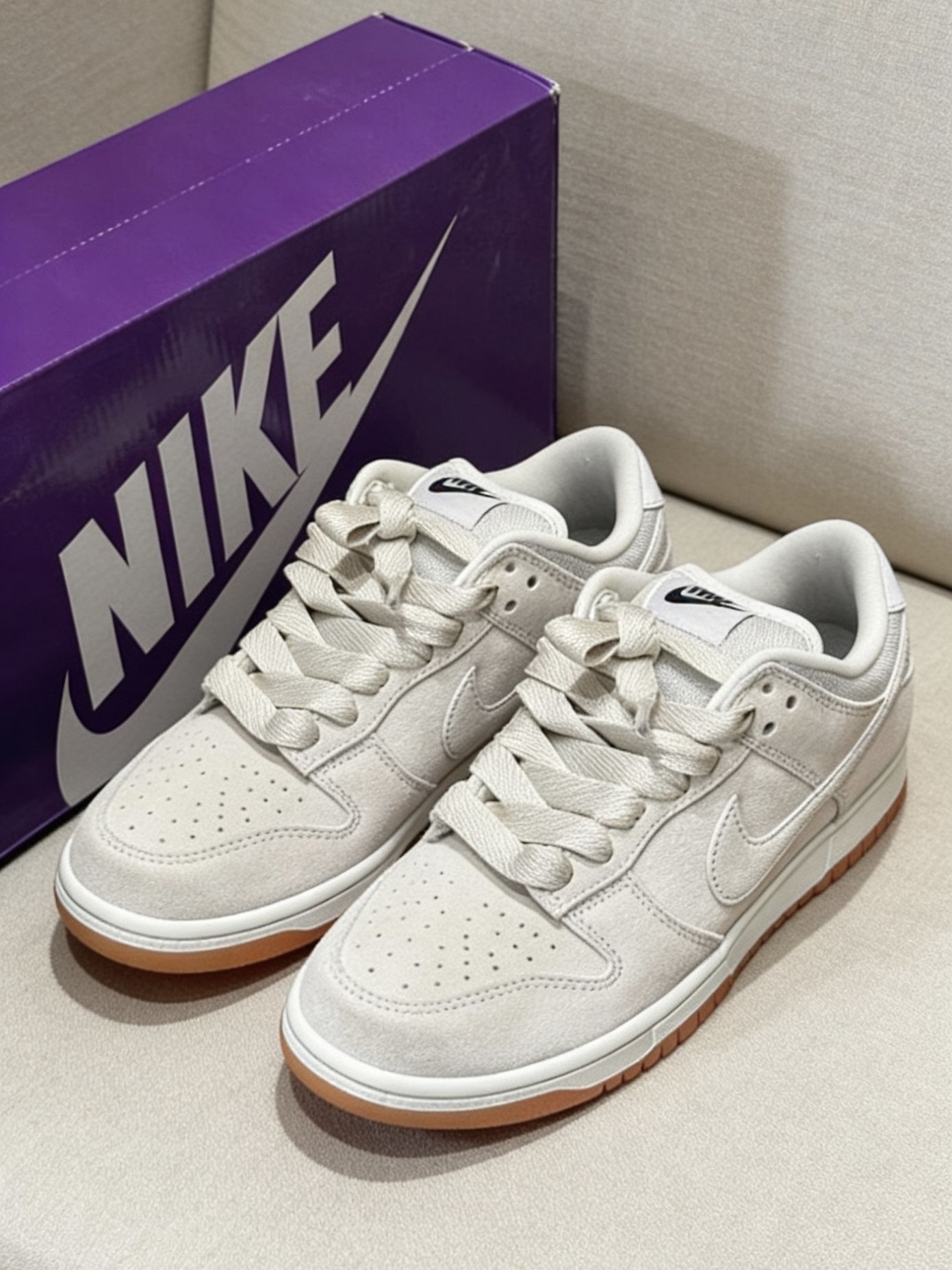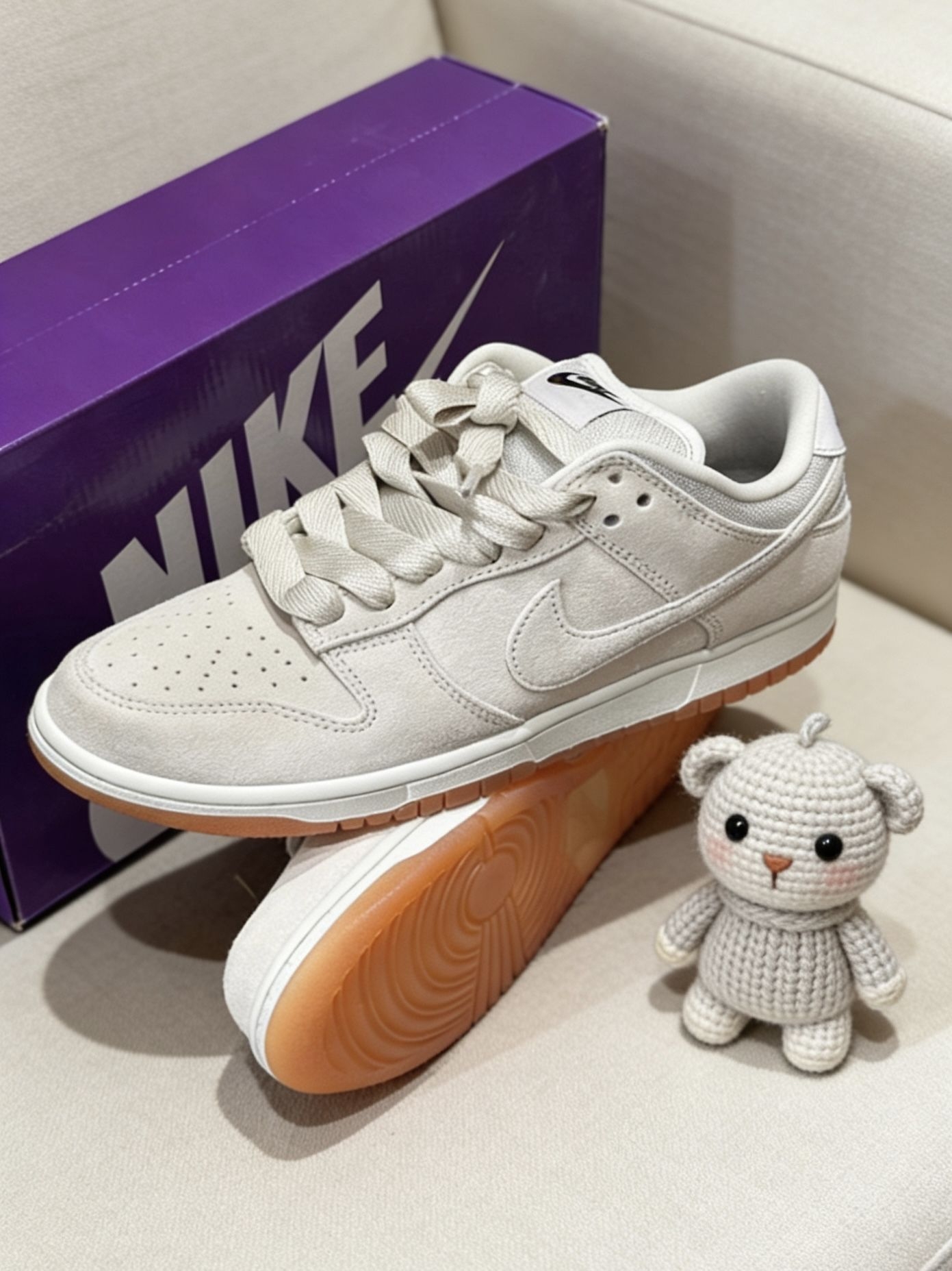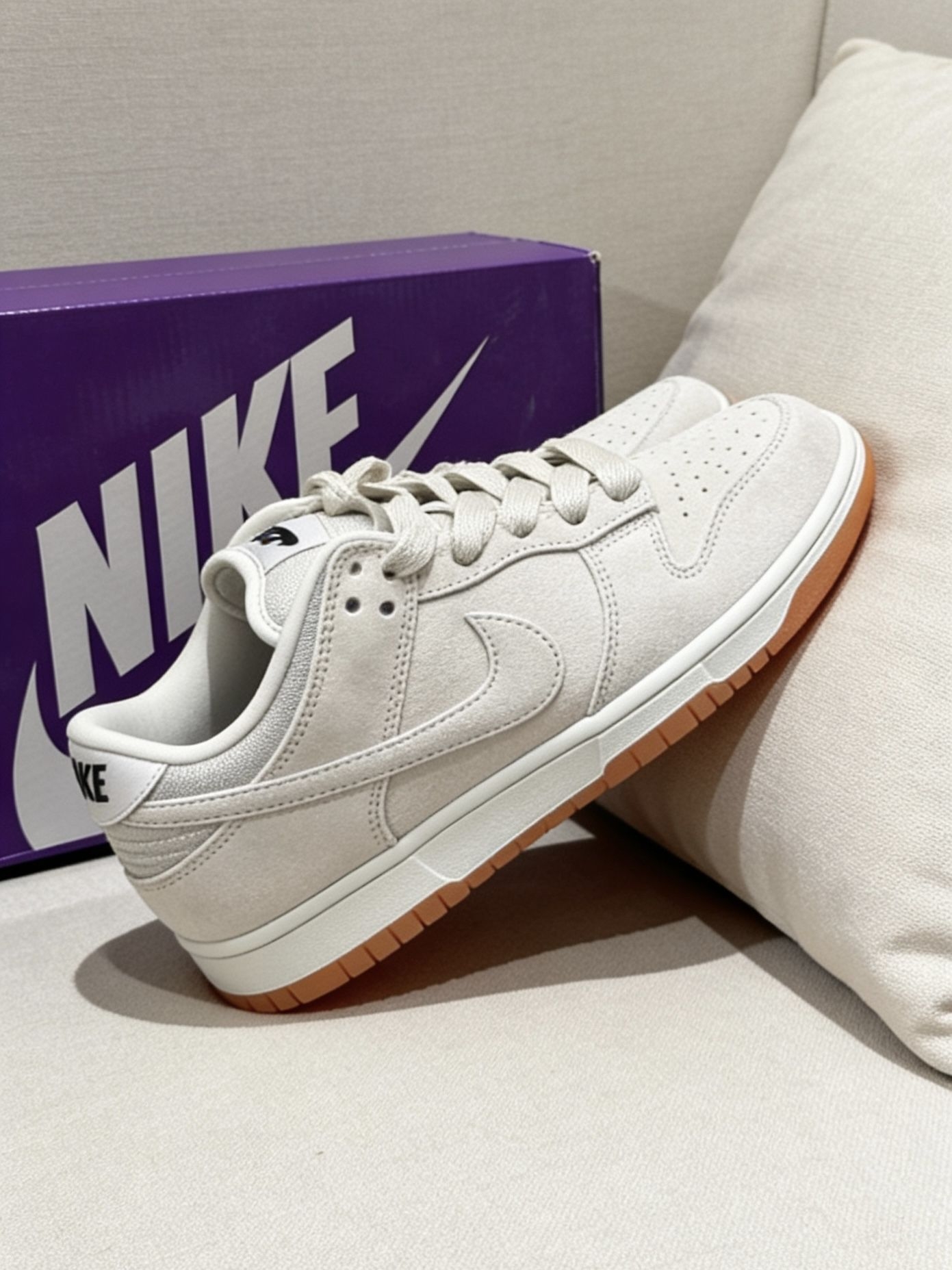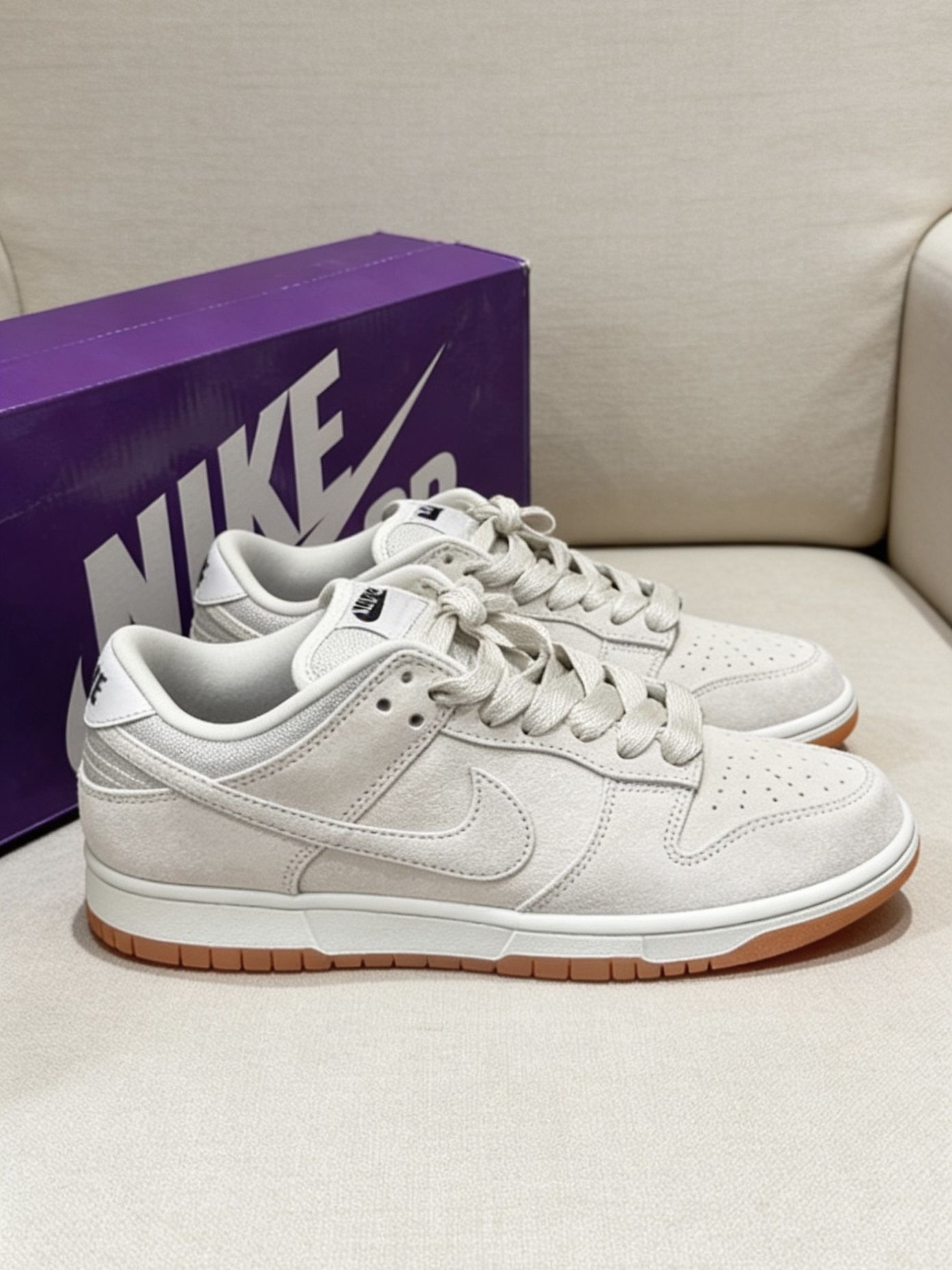 小众不撞款!灰色翻毛皮Dunk SB太绝了|||这双Nike SB的灰色生胶底真的太好穿了😌! - 全鞋身是细腻的磨砂翻毛皮材质,摸着手感很扎实,后跟和鞋舌的Nike标识细节满满。厚鞋舌织物内衬透气不闷脚,搭配生胶大底走路超稳。 - 穿搭上随便配深色牛仔裤、工装裤都很有街头感,日常通勤、周末逛街或者去滑板场刷街都合适,舒服又耐看👟! #哪个男生没有双Dunk #今天只晒鞋 #宝藏板鞋分享 #这双鞋...