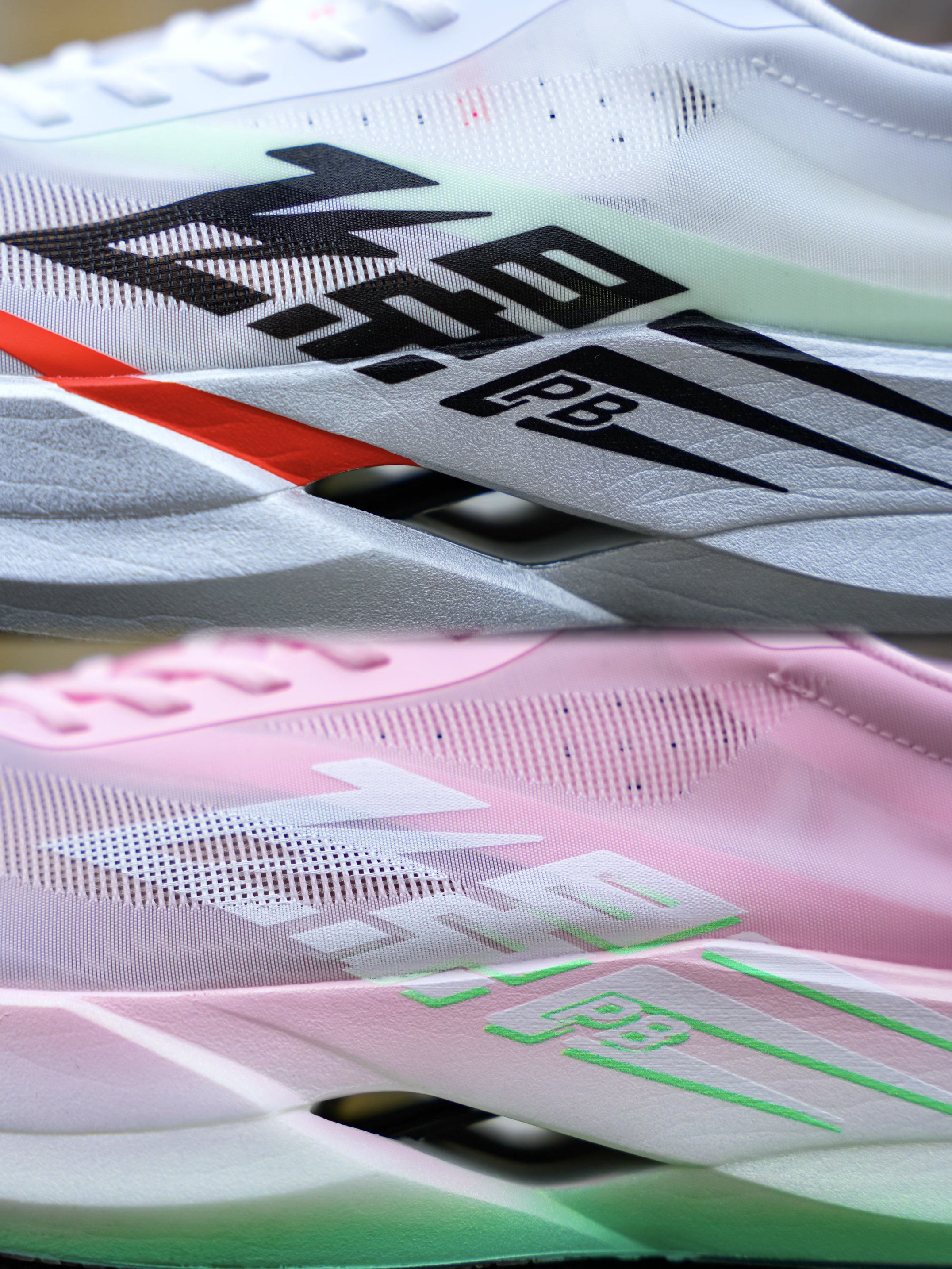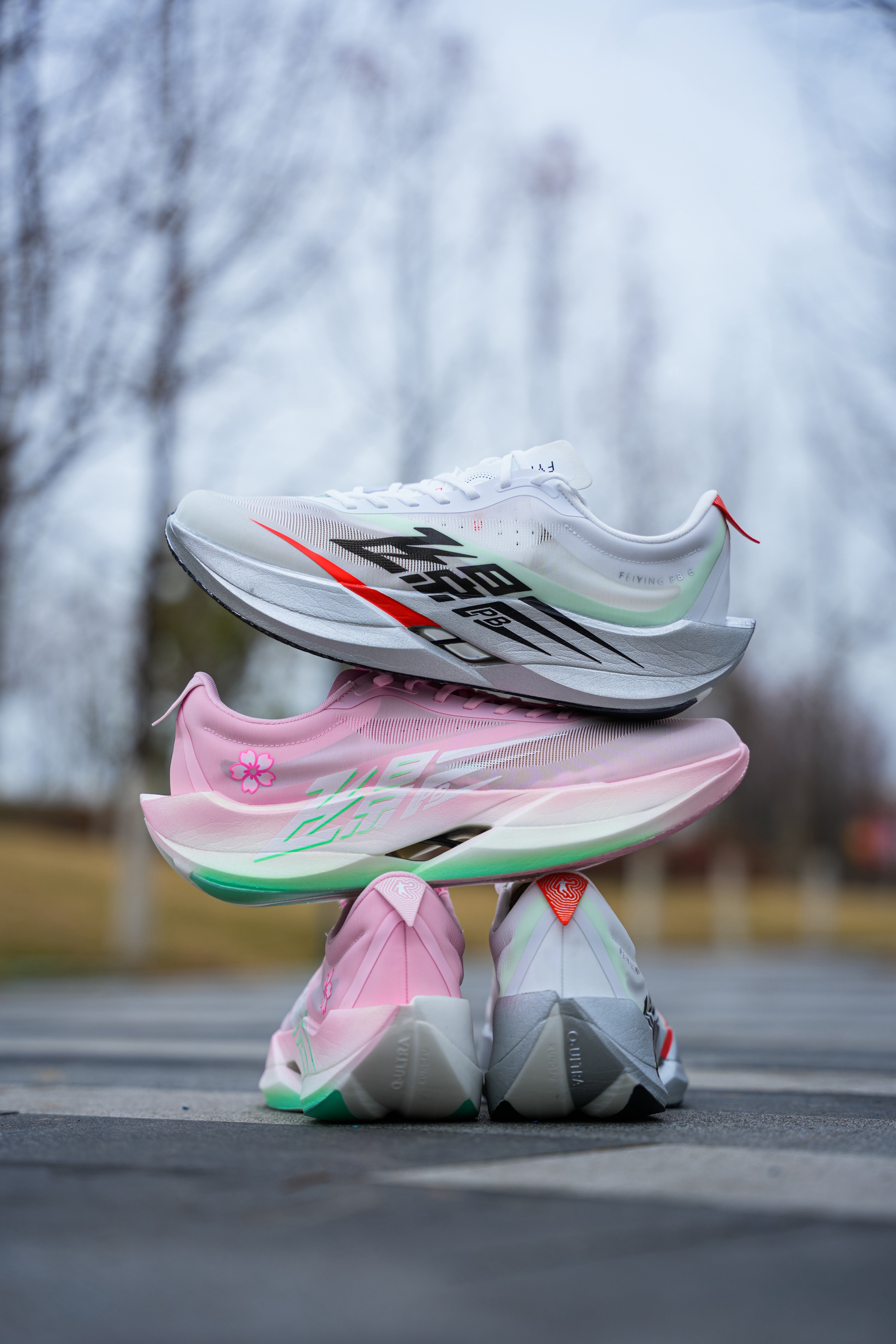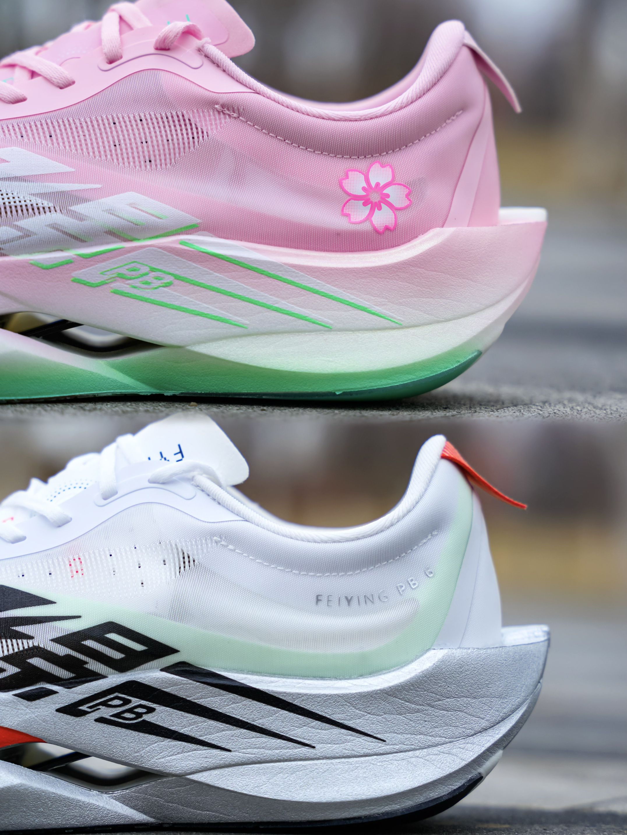 飞影pb6的配色也是越来越多了,那这个经典的百炼成钢和樱花你会怎么选呢?我是觉得樱花的粉色看起来更骚气一点,上脚的颜值也是不差的! 而这双百炼成钢就比较普通,白银搭配反而比较百搭耐看一些,两双配置一样 性能一样!尺码可以正常选择. 喜欢耐看百搭选“百炼成钢”就行,喜欢鲜艳一点的可以选“樱花”,我觉得樱花配色更好,你们觉得呢?