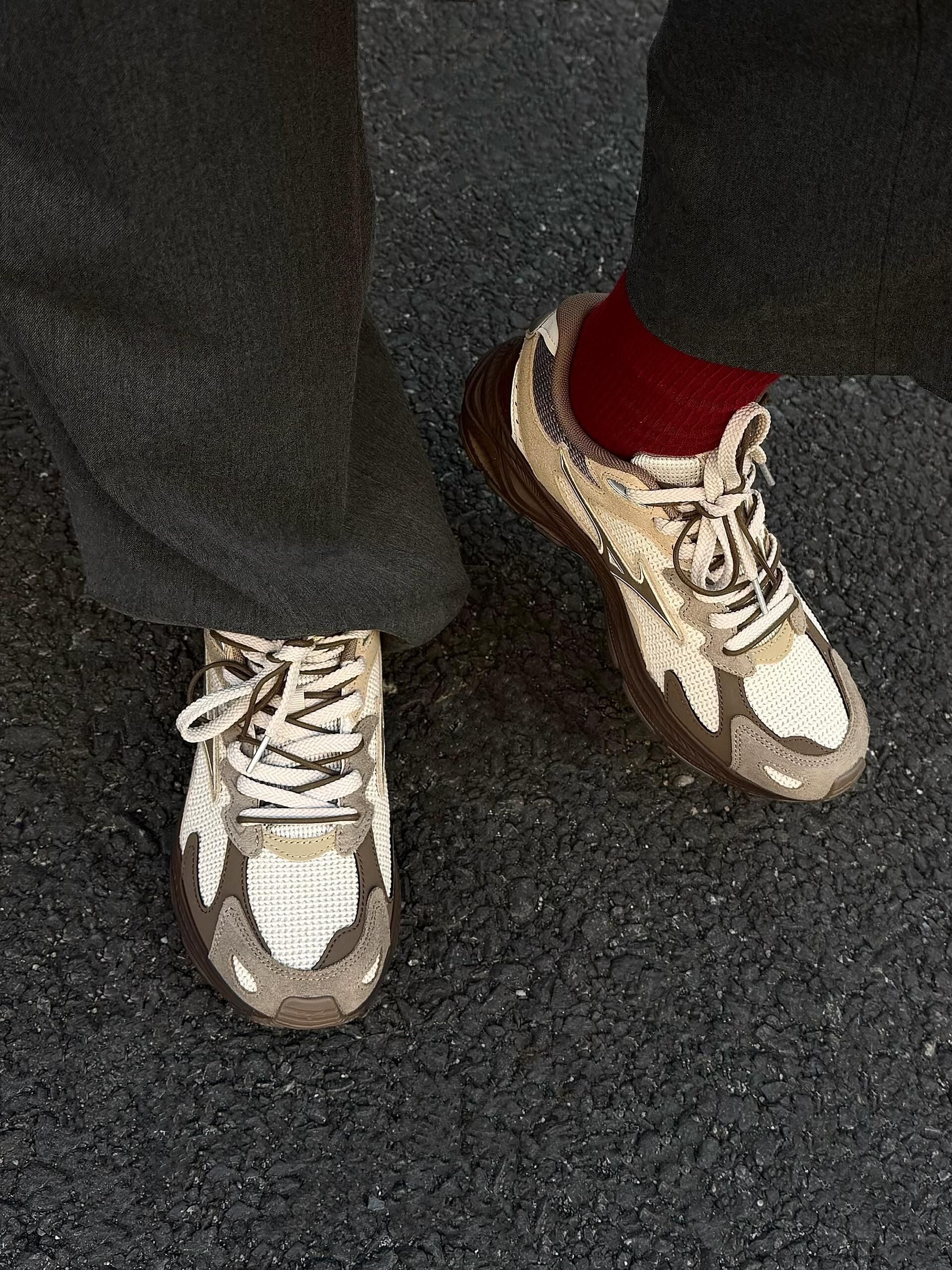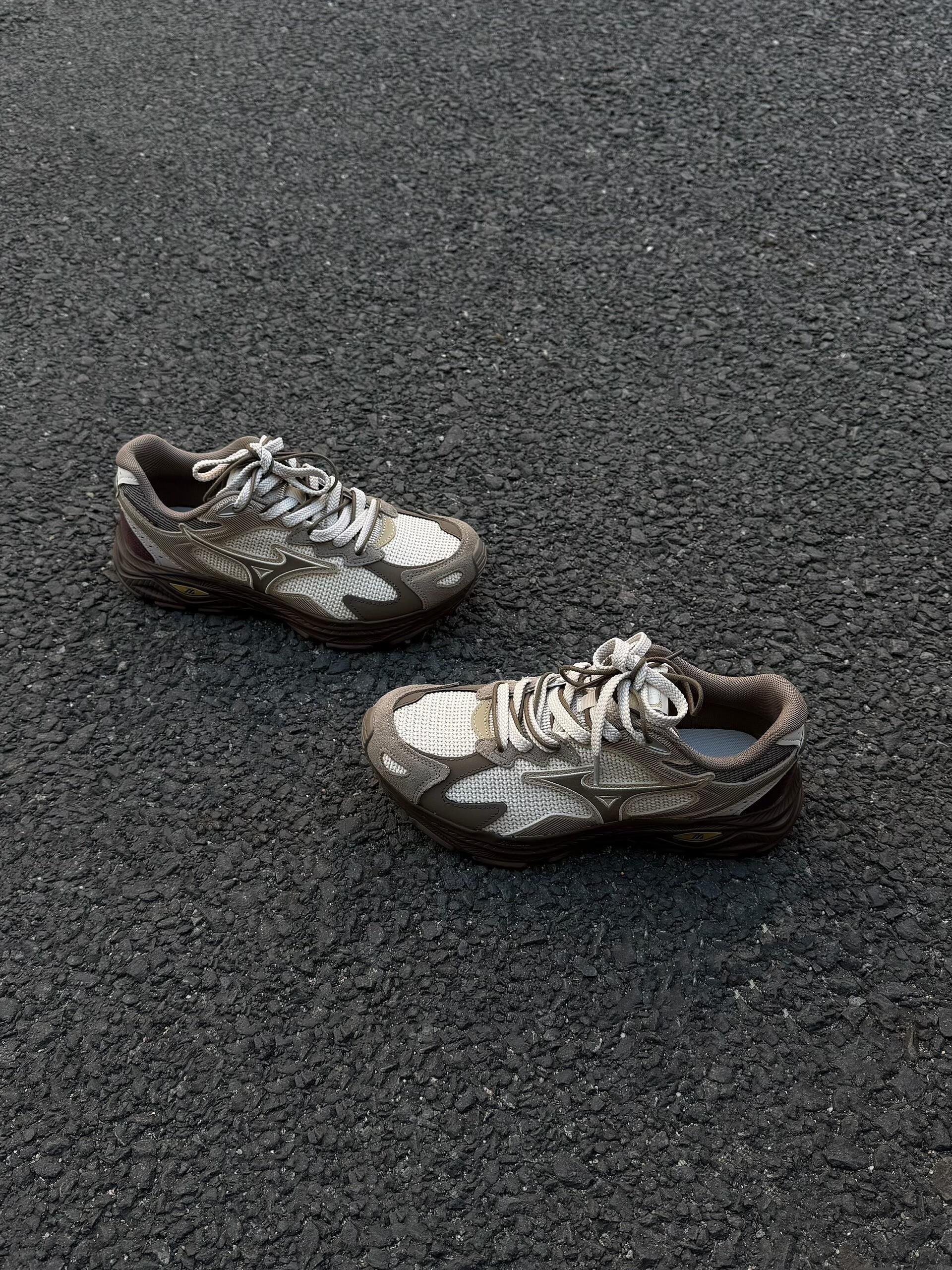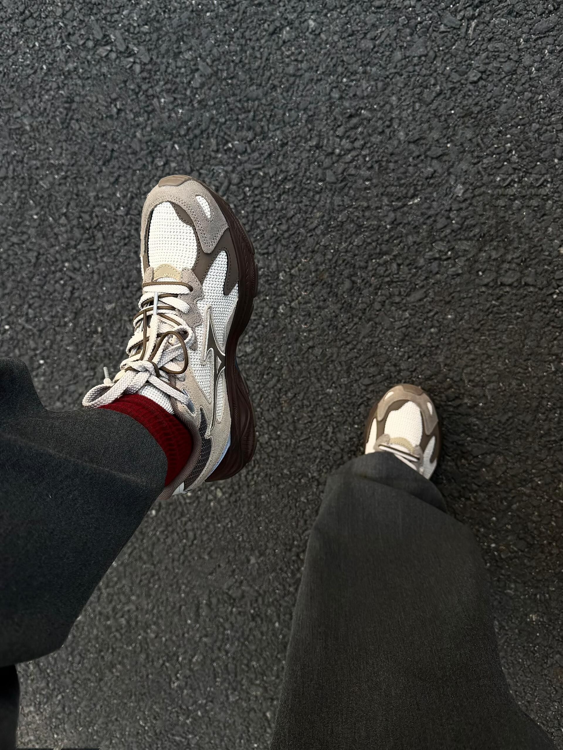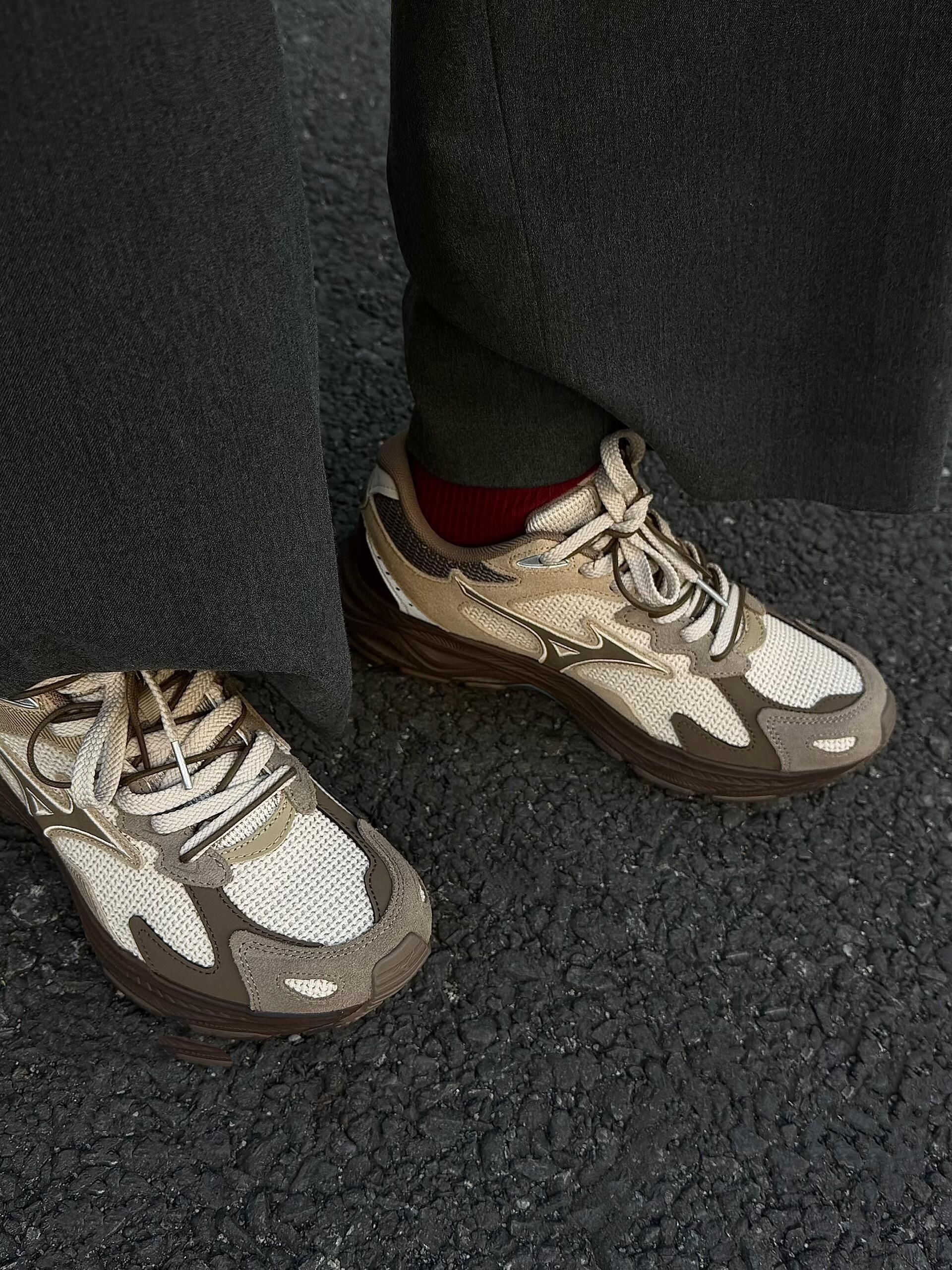 秋冬真的离不开一双耐看又百搭的老爹鞋👟美津浓这双棕白拼色直接长在我审美上复古配色 + 利落鞋型,不管搭裤子还是卫衣都很绝 上脚轻便不笨重,厚底还悄悄显腿长日常出街、通勤上学随便穿都不违和质感在线,舒适度也在线,越穿越香~ 秋冬穿搭有它一双就够顶,闭眼入不亏!