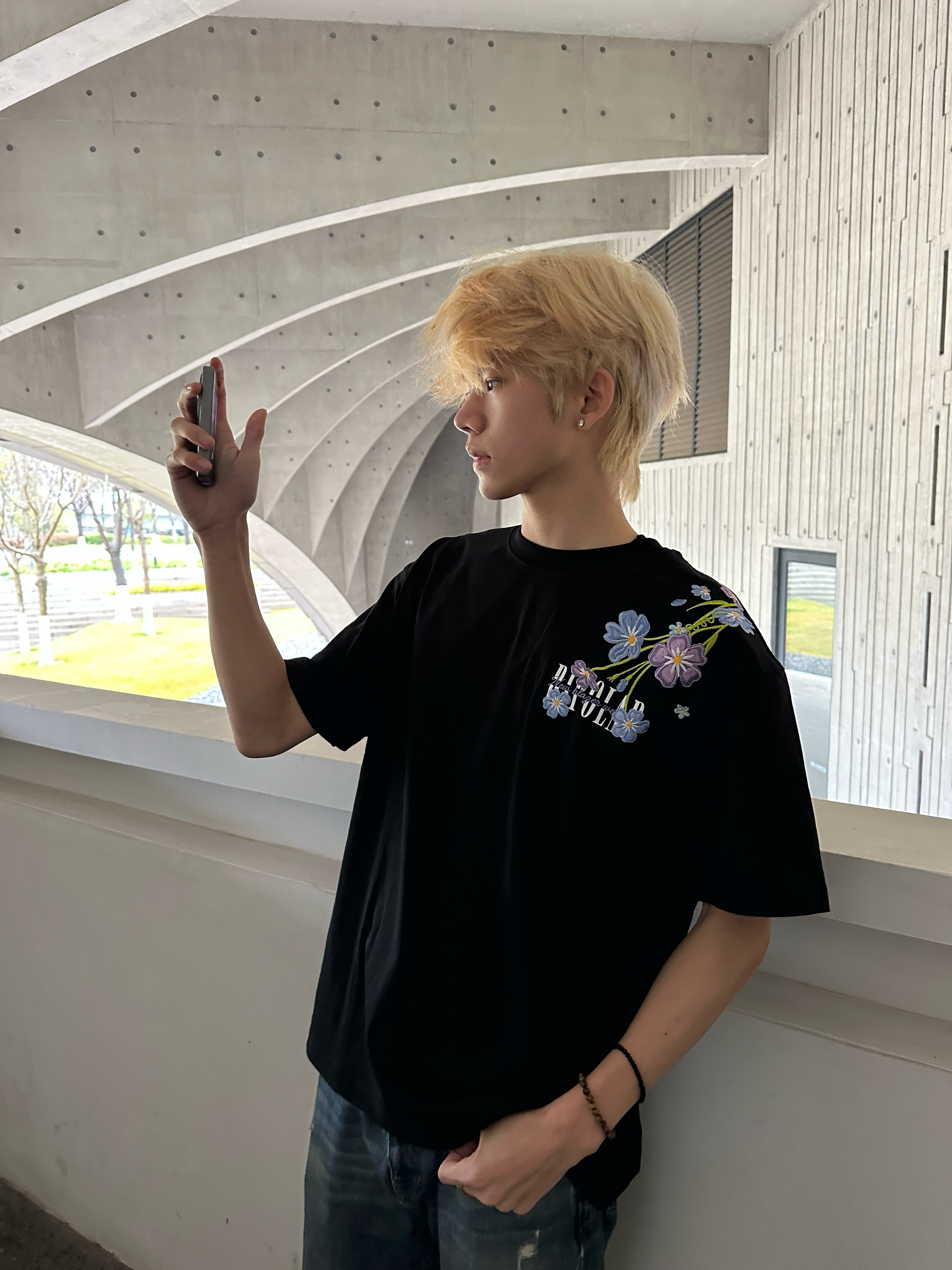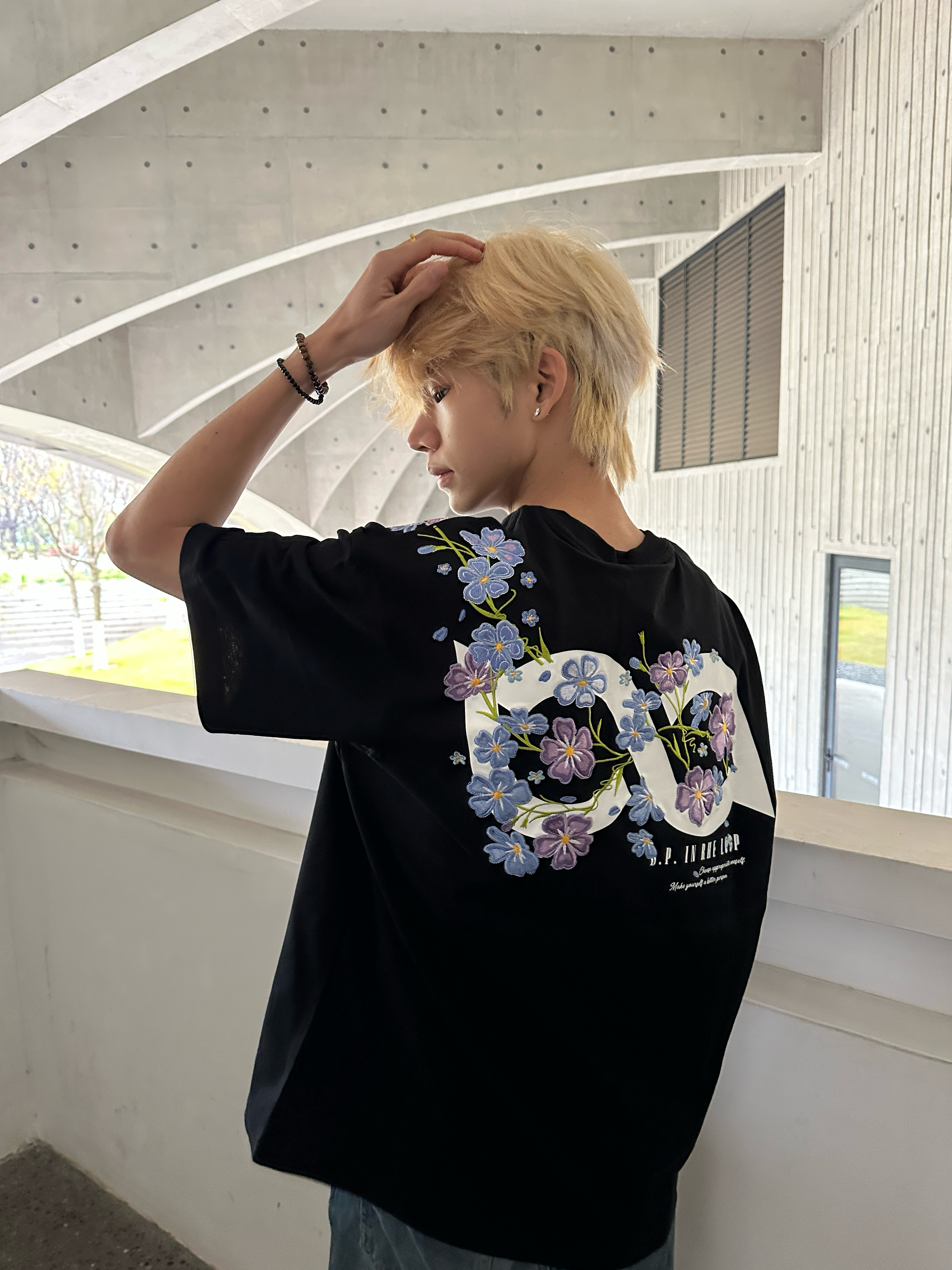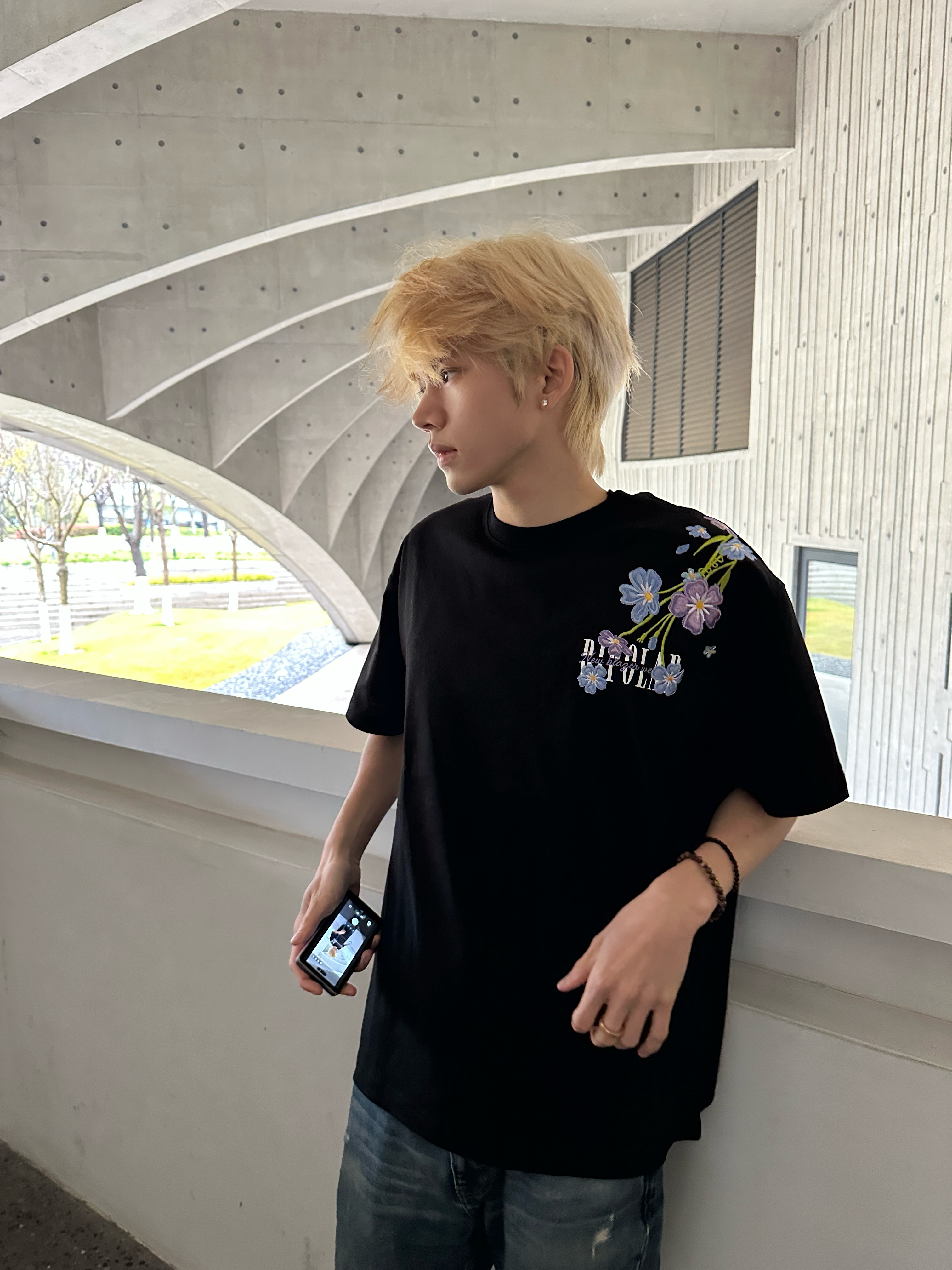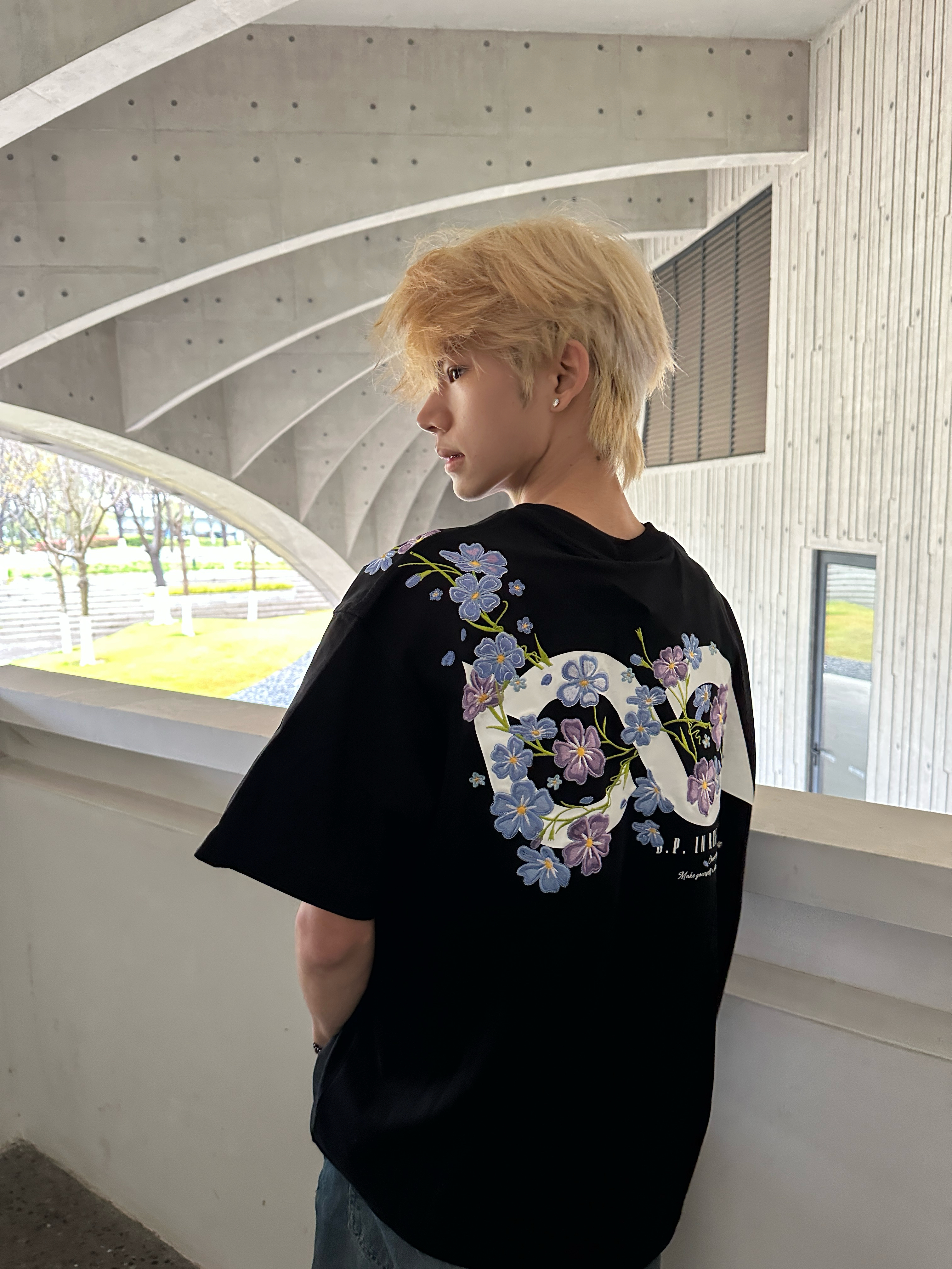 这件 BIPOLAR 的花T恤直接把春天穿在了背上🥹 背后的无限符号+紫蓝碎花印花太有氛围了 不是那种土气的大花,是清清爽爽的春日感 版型是那种宽松的oversize,穿起来很舒服 不会有束缚感,面料也很透气 夏天穿也不会闷。关键是黑色真的百搭