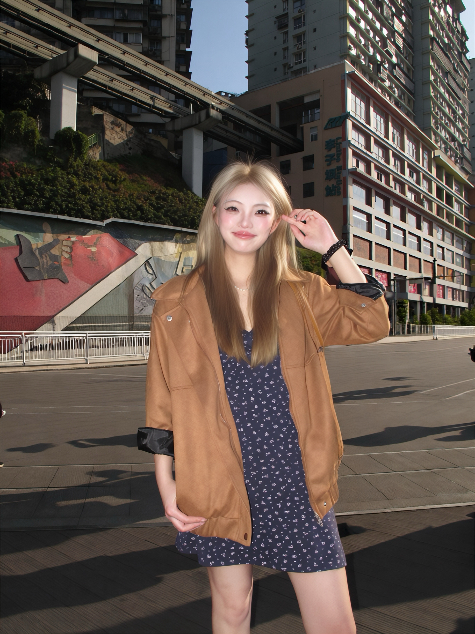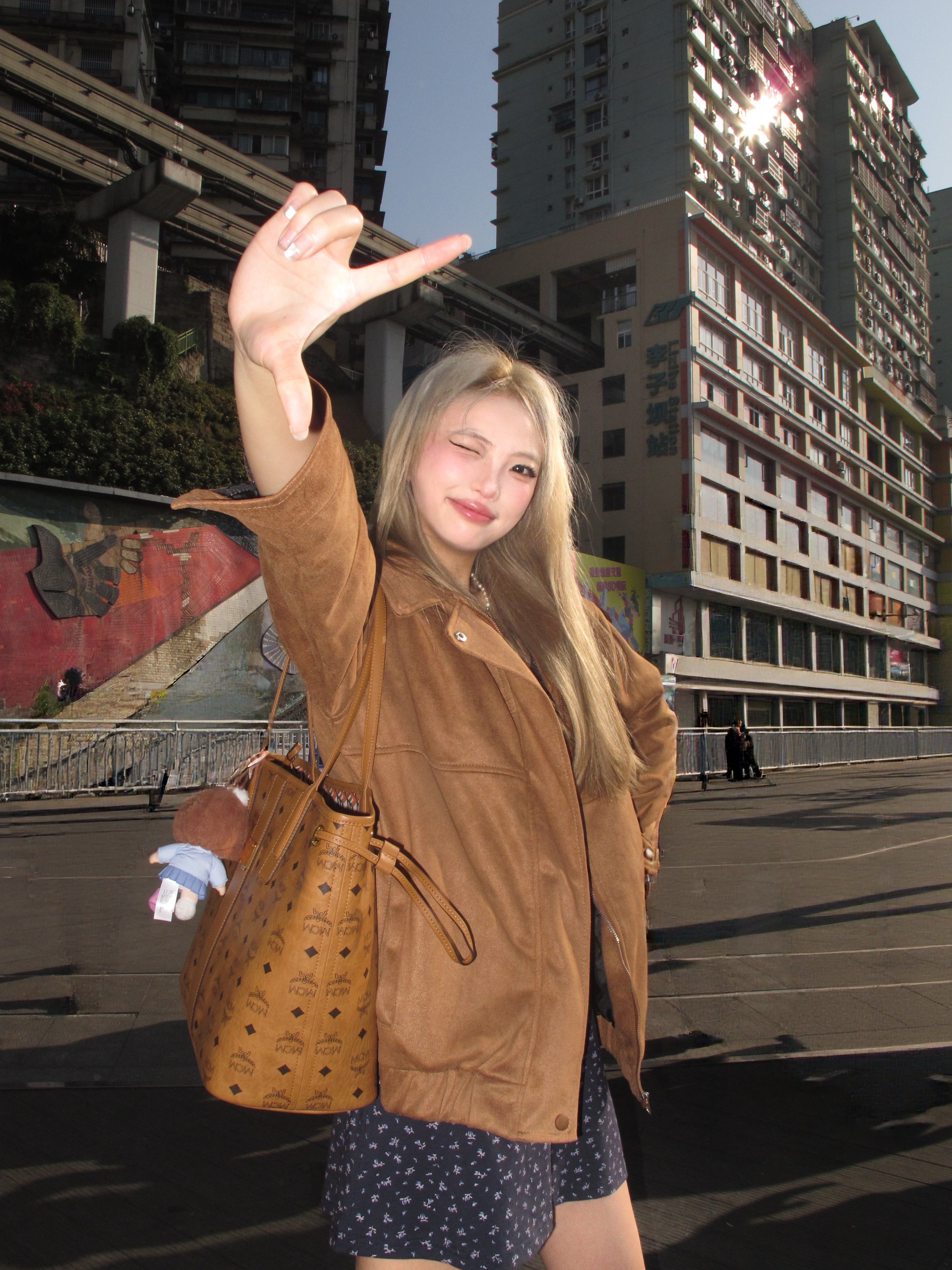 谁懂啊? 春天的第一套穿搭就是学习高允真欧尼的 碎花裙搭配麂皮外套🧥 一套好出片~ 靴子穿棕色系短靴 无痛增高个几cm不是问题 搭配了mcm托特敲能装 一套色系好和谐✌️ 在李子坝这个打卡地也是拍出了人生照片了!