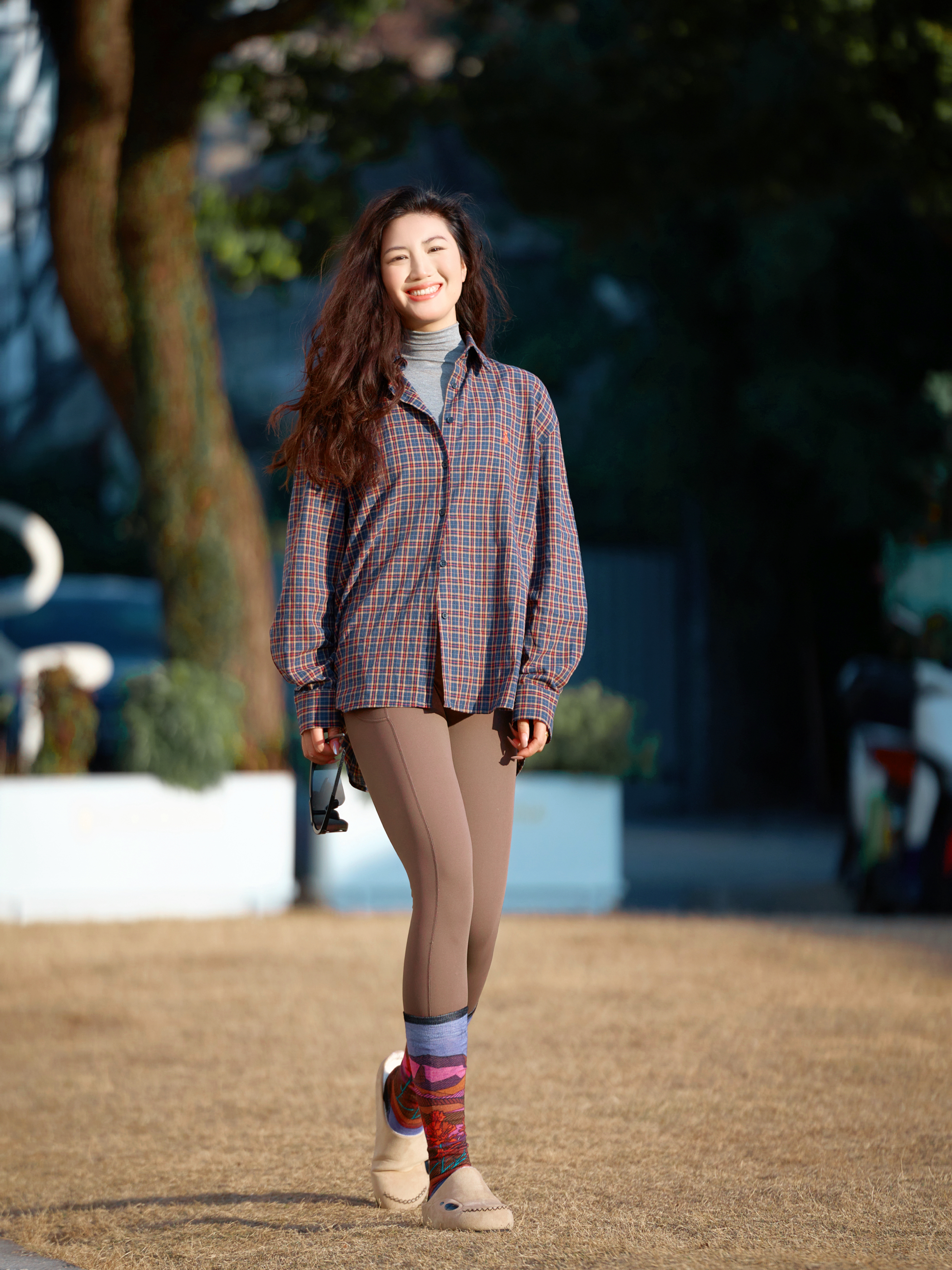 🌱🌸每年春天之前我都迫不及待的思考 “春天要穿什么”? 今日格子衬衫点亮春日穿搭。 温柔又不失有生命力! 搭配棕色leggings 春日户外配色不单调