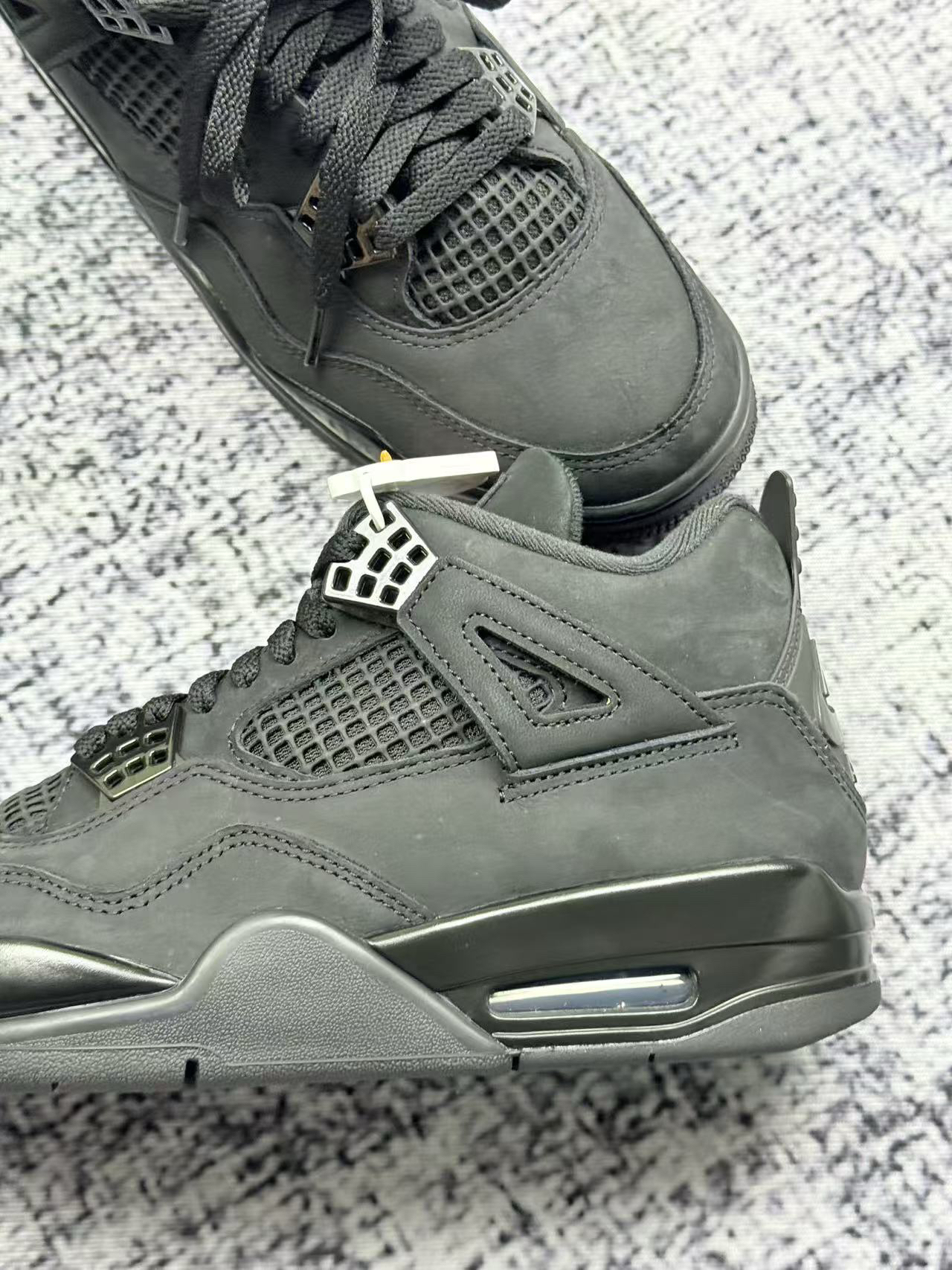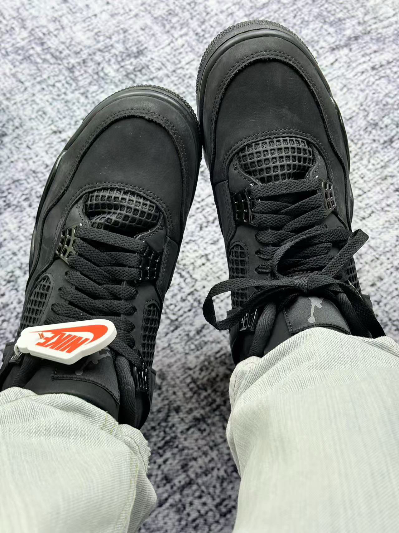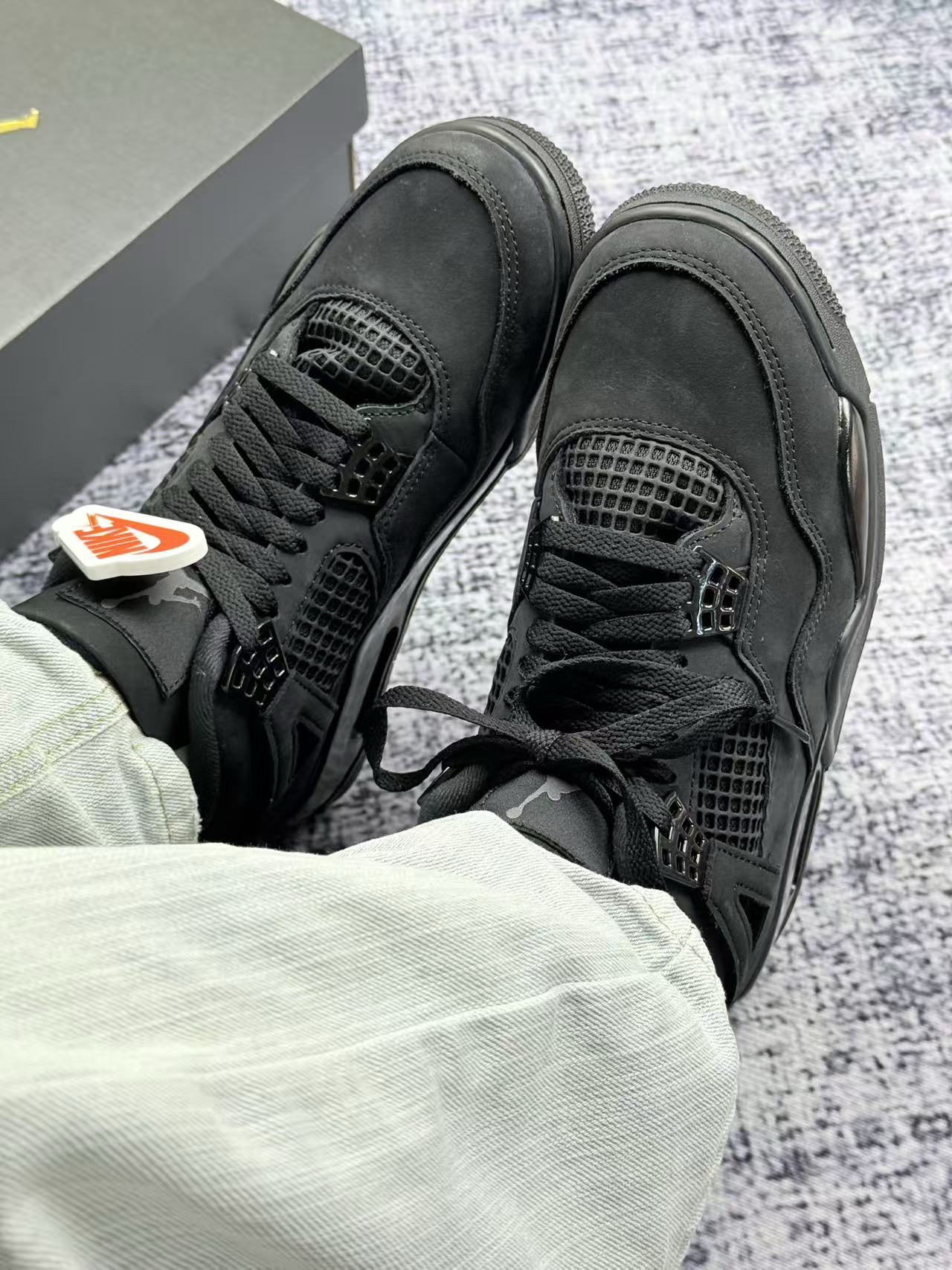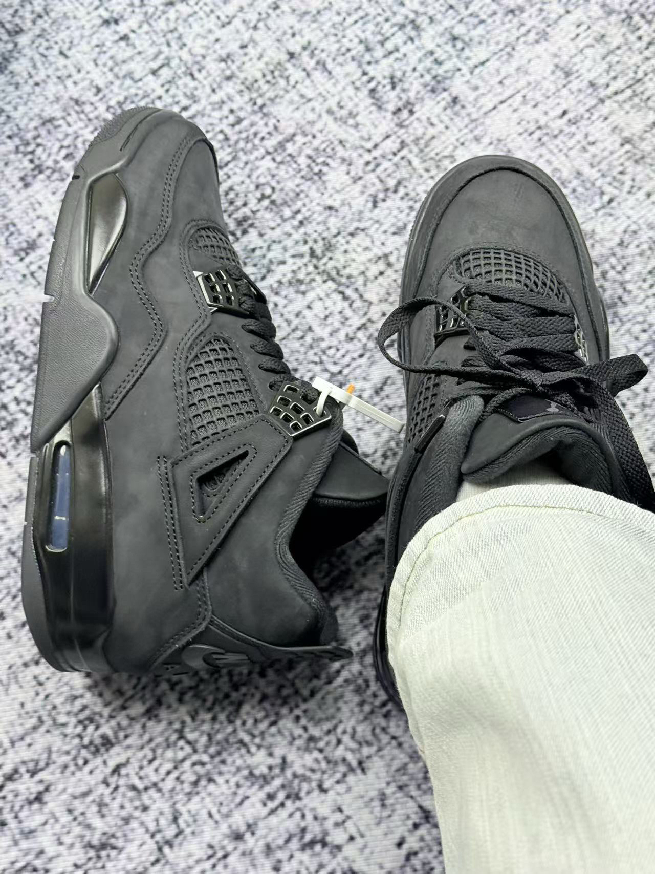 刚上脚这双AJ4黑猫👟,第一感觉是全黑磨砂皮的质感很讨喜,哑光质地比亮面款更耐脏,搭配浅色系裤子也很和谐,随便搭条水洗牛仔裤都能出效果😌。 但缺点也很实在:鞋身比普通板鞋沉不少,长时间走路脚踝会有坠感,鞋头的网面看着透气,夏天穿脚面还是会闷🤨。另外鞋型偏窄,宽脚得选大半码,不然前掌会挤得慌。 日常压马路穿还算合适,要是走太多路就不太舒服了。对我来说,它的颜值和搭配性够日常穿就够了,至于脚感,...