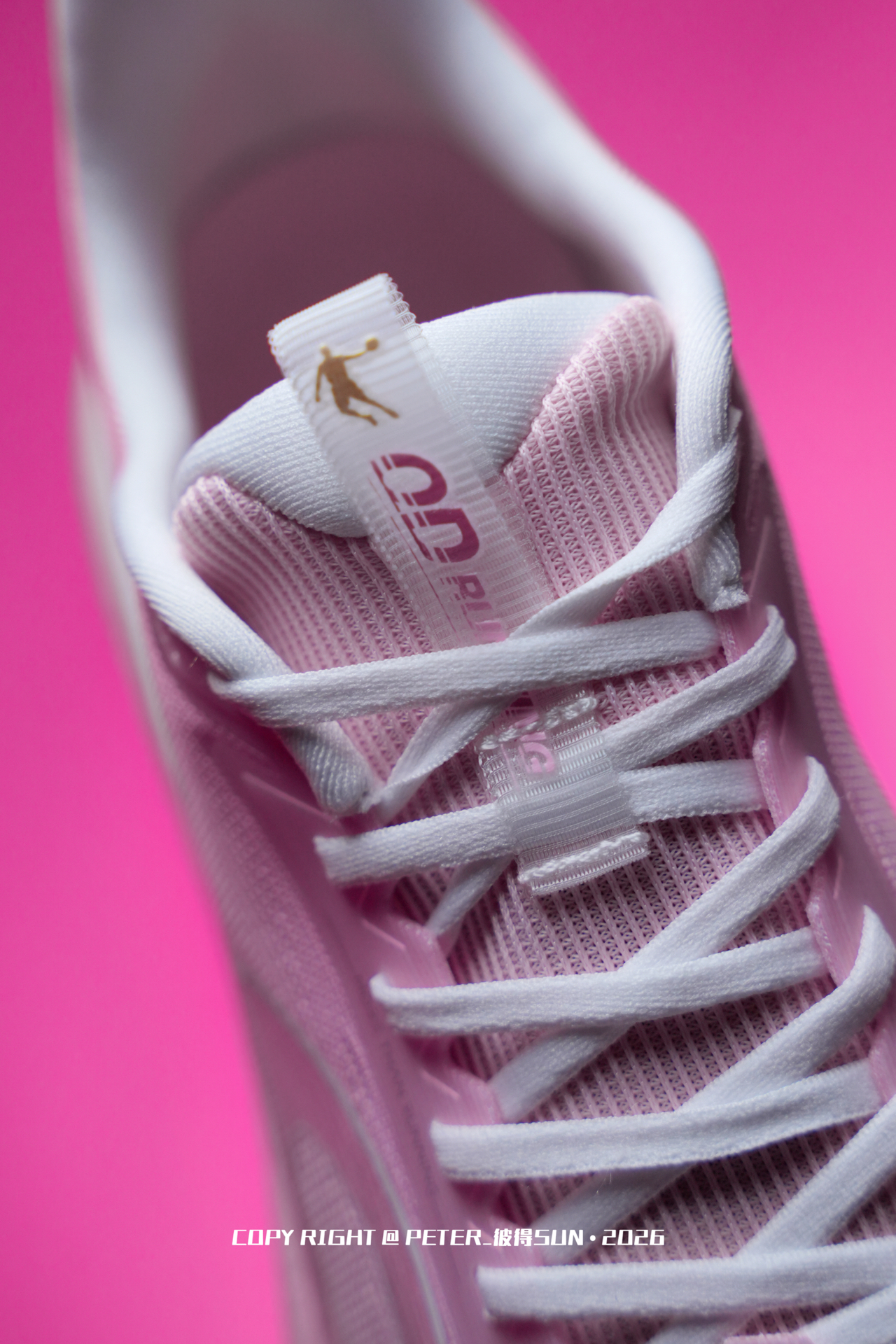 今天分享 #乔丹 飞速4.0的樱花🌸配色。 湖蓝和樱花🌸粉渐变搭配挺符合春日气息的,上脚也吸睛,搭配校服校裤,休闲裤都挺好看 鞋面是轻薄的工程网布,上脚贴合不错,也挺透气性,跑个10K也不闷脚。 作为一款无板跑鞋,刚性没有过剩情况,上脚感觉前后过渡挺自然。脚感属于韧弹的那种,前后上翘的设计,静态就有滚动感,蹬地发力的反馈也很直接。跑起来还有一定推进感。我觉得这双鞋日常慢跑或者体测训练都能穿。...