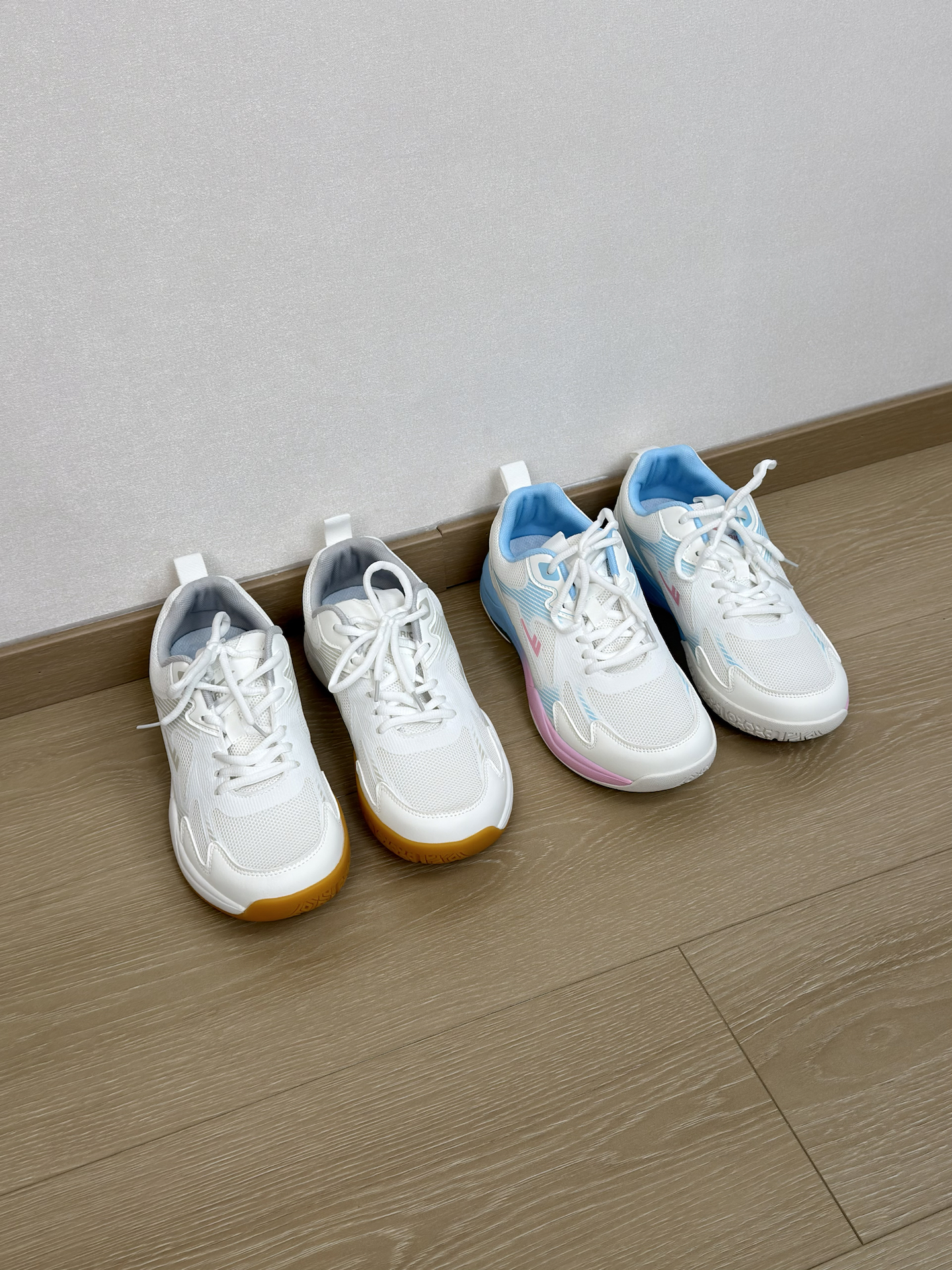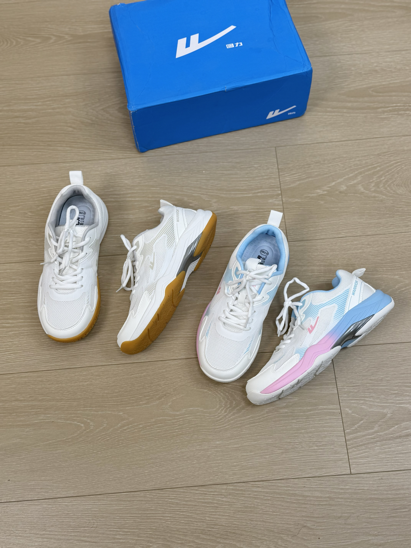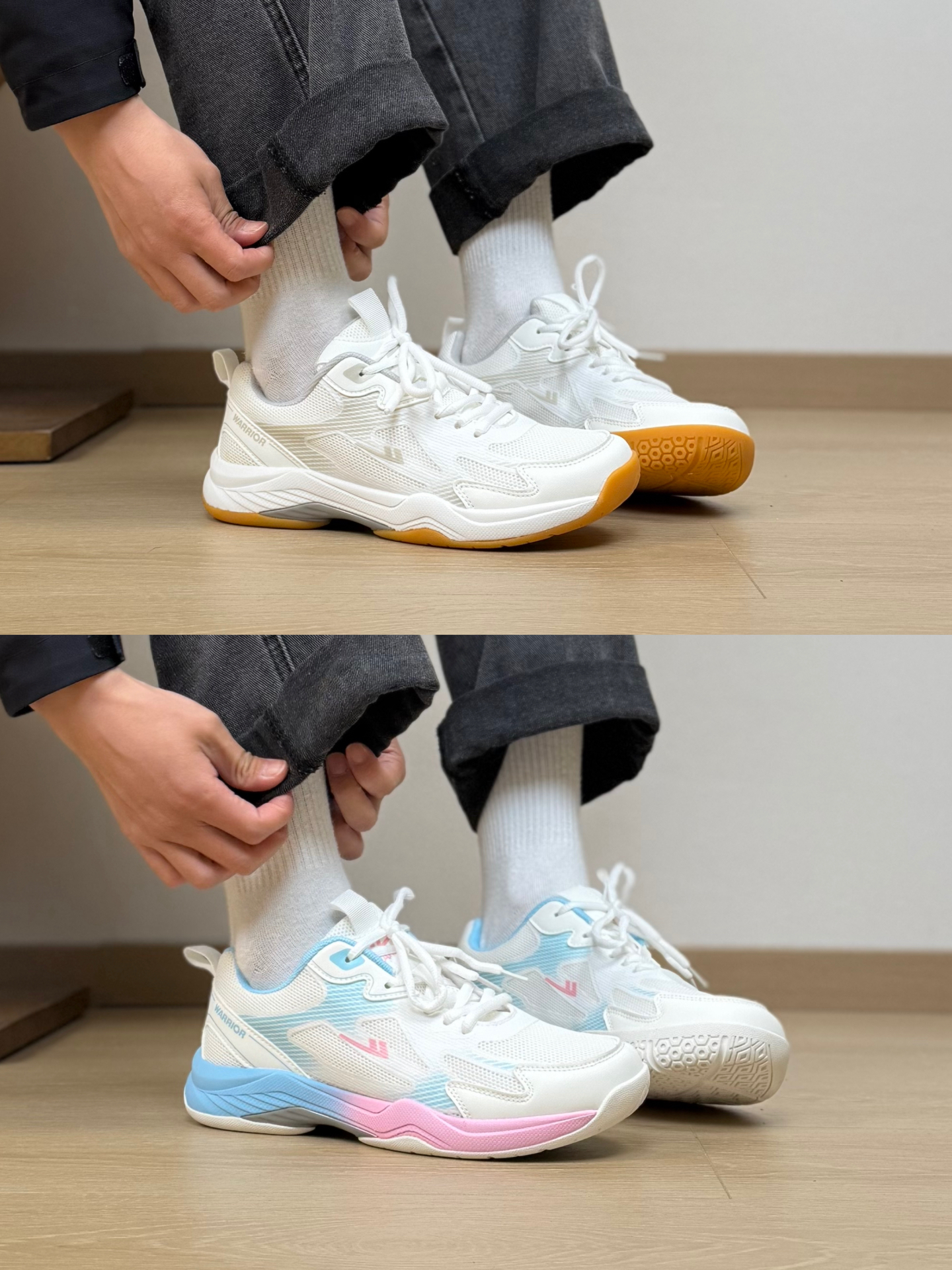 一双是浅蓝 + 粉的渐变撞色 自带清爽少年感 像把春日海风踩在脚下 阳光感拉满 一双是干净利落的纯白系 低调耐看永不过时 不管是牛仔裤还是休闲运动裤都能搭 网面透气不闷脚,防滑大底抓地力拉满 打球时变向、起跳都稳得一批 颜值和实力双在线! 尺码我觉得正常 不偏码的~ #我的鞋柜春上新 #单鞋拿捏春日氛围感 #踏春出片穿这双 #此人鞋商极高 #超高颜值羽毛球鞋
