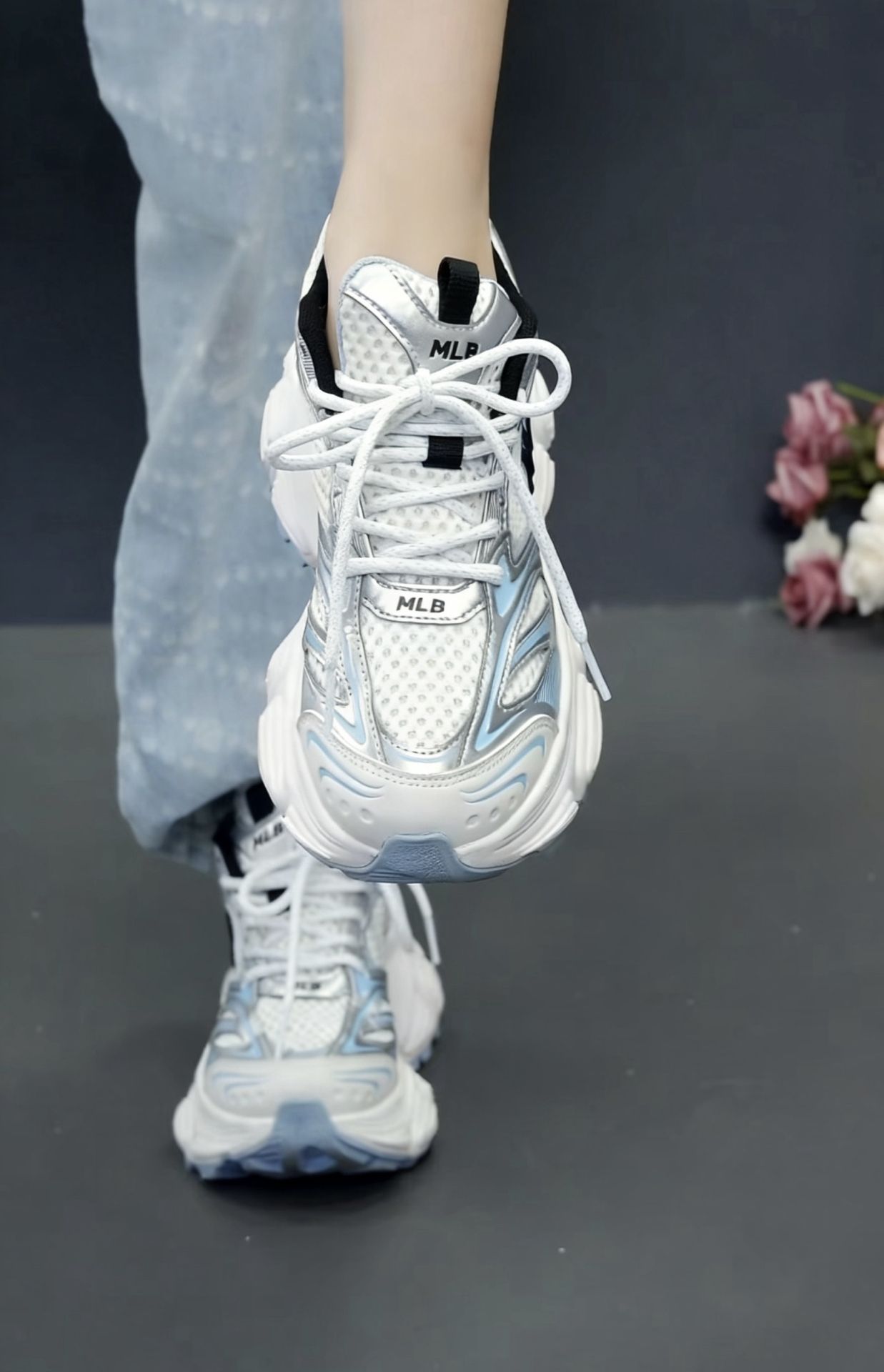 韩系穿搭党必入!这双MLB白蓝老爹鞋真的长在审美上,奶白+浅蓝撞色像海盐汽水一样清爽,NY小标低调又有辨识度,温柔又不张扬,日常穿超有氛围感。 鞋型圆润显脚小,5cm厚底悄悄拉长腿线,小个子、微胖脚都友好,搭牛仔裤、百褶裙、运动裤都适配,韩系甜妹、休闲风都能hold住,男女同款做情侣鞋也超搭。