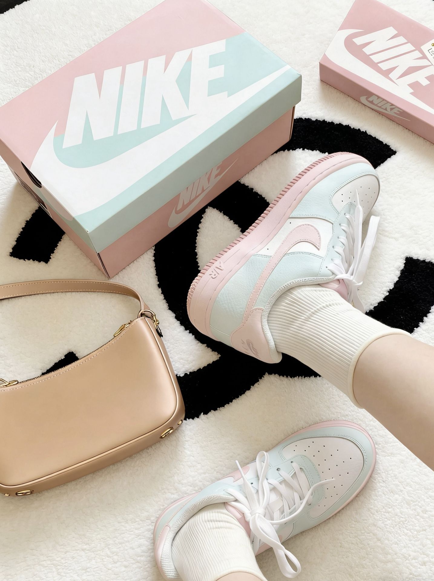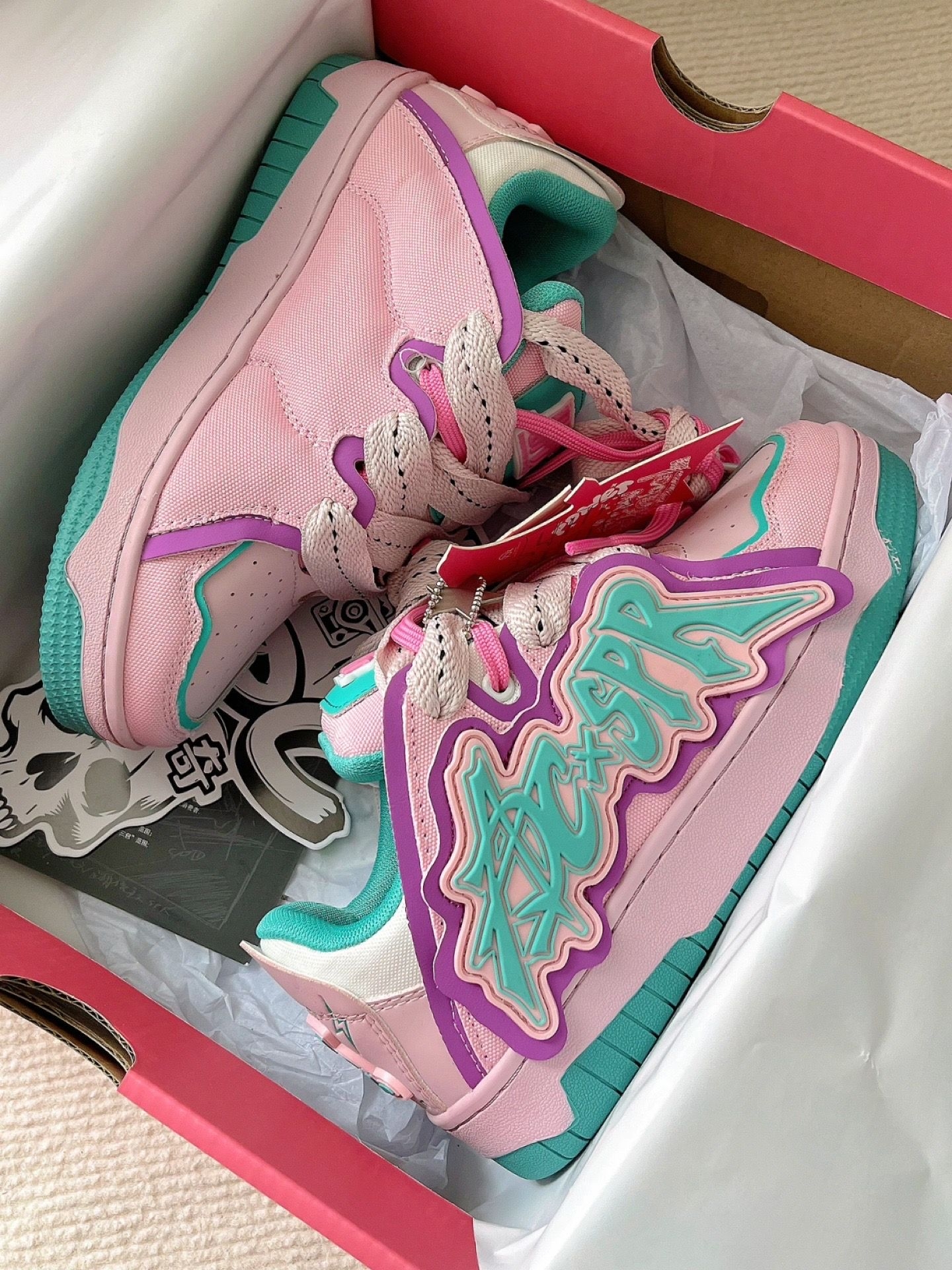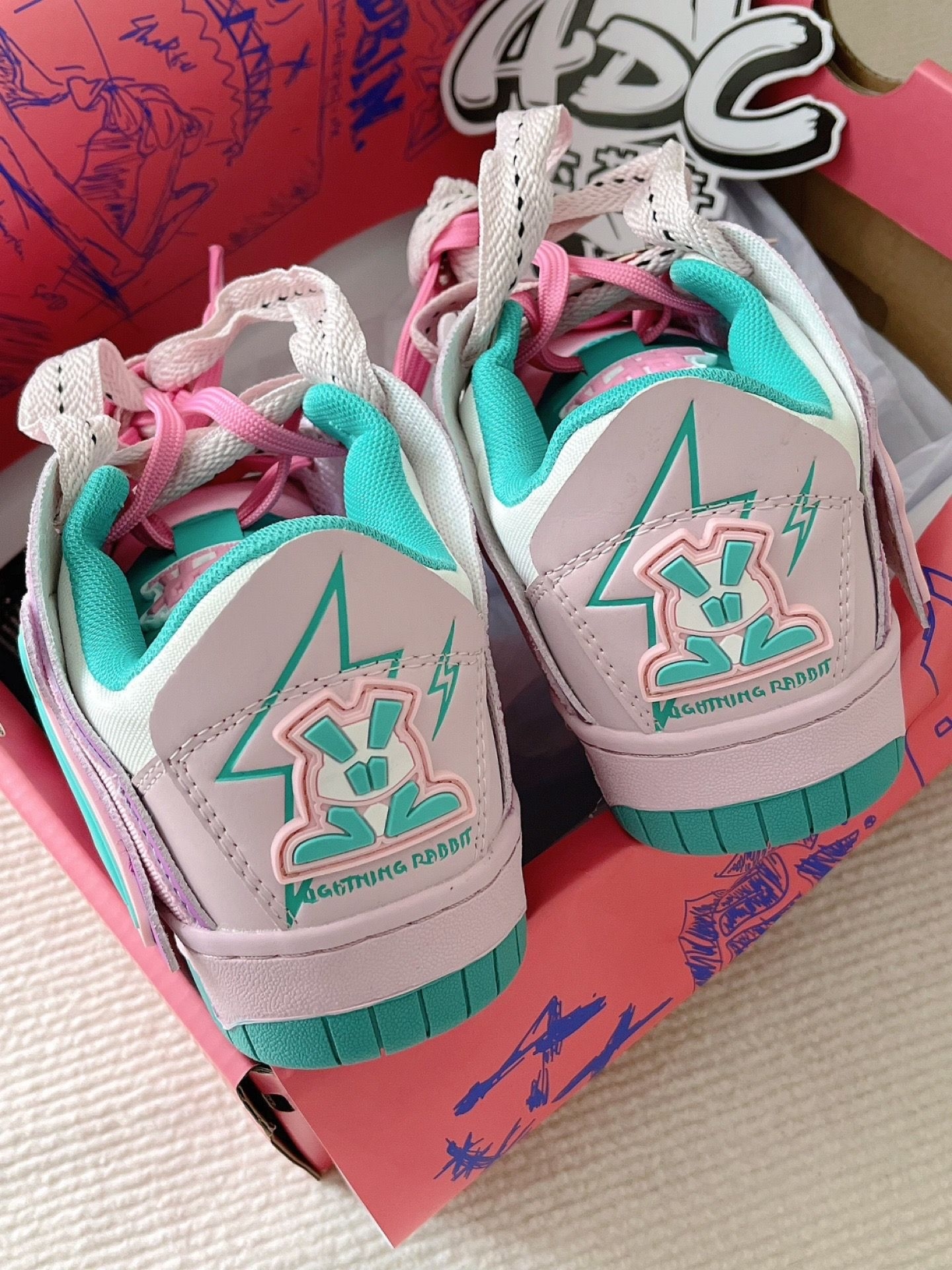 简直是漫画女主的鞋! 粉色搭配湖水绿!就很亮眼✨ 侧面字母忒独特了🤾🏻♀️ 而且上脚巨显腿细‼️