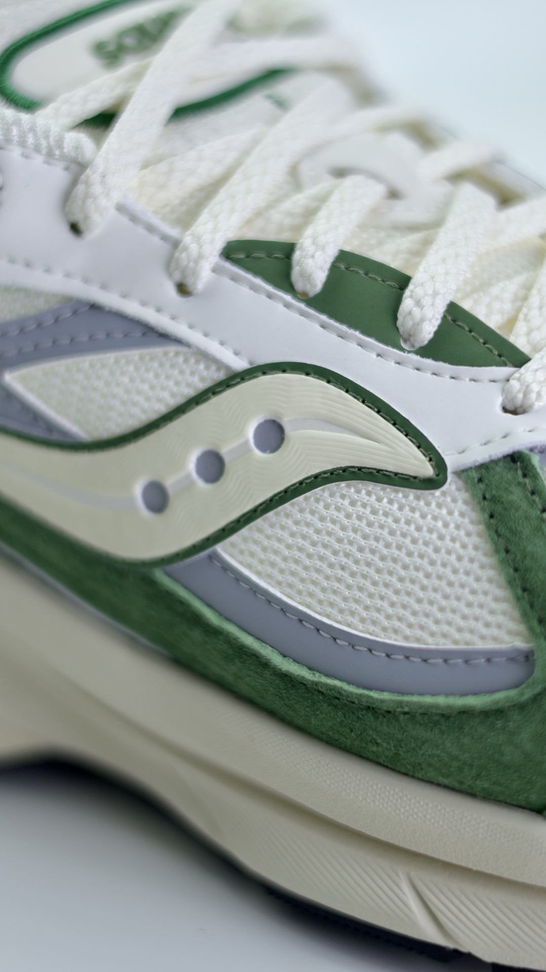 索康尼这双新跑鞋,鞋面采用网眼织物拼接翻毛皮,质感扎实,透气不闷脚,墨绿与米白的配色清新。 脚感软弹适中,缓震回弹表现出色,日常通勤、慢跑都能驾驭。 鞋楦标准偏宽,对宽脚人群友好,无需刻意买大半码。 橡胶大底纹路深邃,抓地耐磨。 💰另外定价也比较合理,无论是追求复古穿搭还是日常舒适脚感,都值得入手。 #saucony索康尼 #小白鞋是百搭的神 #我的鞋柜春上新 #时尚爆品推手 #...