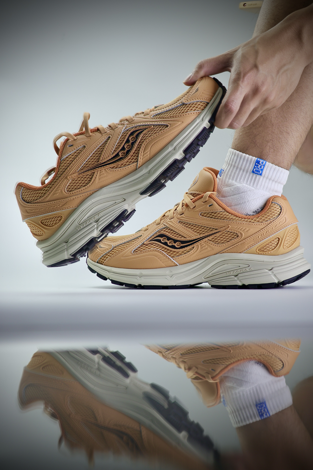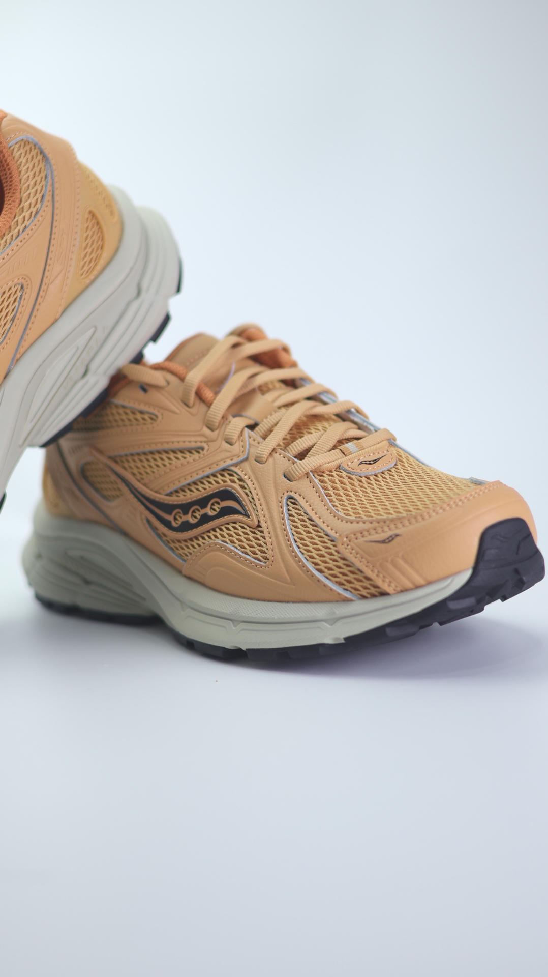 这双索康尼Kinvara 4 RE小麦色,说点真实感受。 首先颜值,这种暖调小麦色特别有复古感,不过穿搭方面需要上点心。 脚感是偏韧弹的那种,不是软趴趴的,走路很稳,暴走一天也不会觉得脚底板酸。网面透气,夏天穿也不闷脚,鞋楦对宽脚也挺友好,不挤脚。 缓震不算特别强,大体重的朋友跑步可能不太够。 整体就是一双很舒服、很百搭的复古跑鞋,日常穿、轻度运动都合适,性价比挺高。 #saucony索康尼 #小...