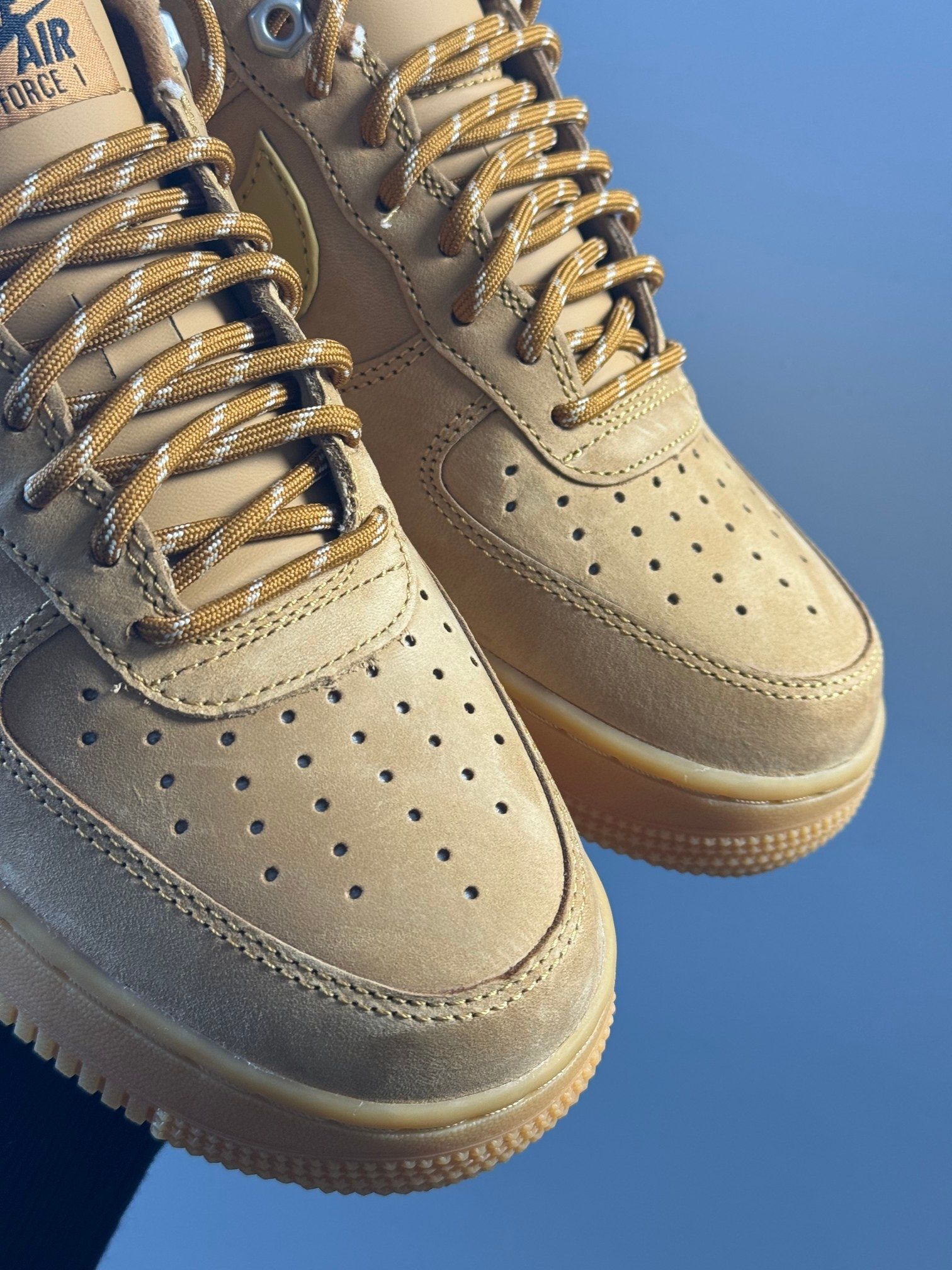 这双Nike Air Force 1 07 LV8 Workboot小麦色,简直是秋冬穿搭的万能钥匙。磨砂牛皮的质感摸起来就很扎实,比普通款更耐造,颜色是那种暖乎乎的焦糖小麦色,配牛仔裤、工装裤都自带复古滤镜,上脚瞬间氛围感拉满。 同色系的麂皮Swoosh、生胶大底、金属鞋眼扣,还有粗麻绳鞋带,每一处都透着工装风的硬朗感。脚感还是经典AF1的软弹,日常通勤、逛街暴走都不累,而且越穿越有味...