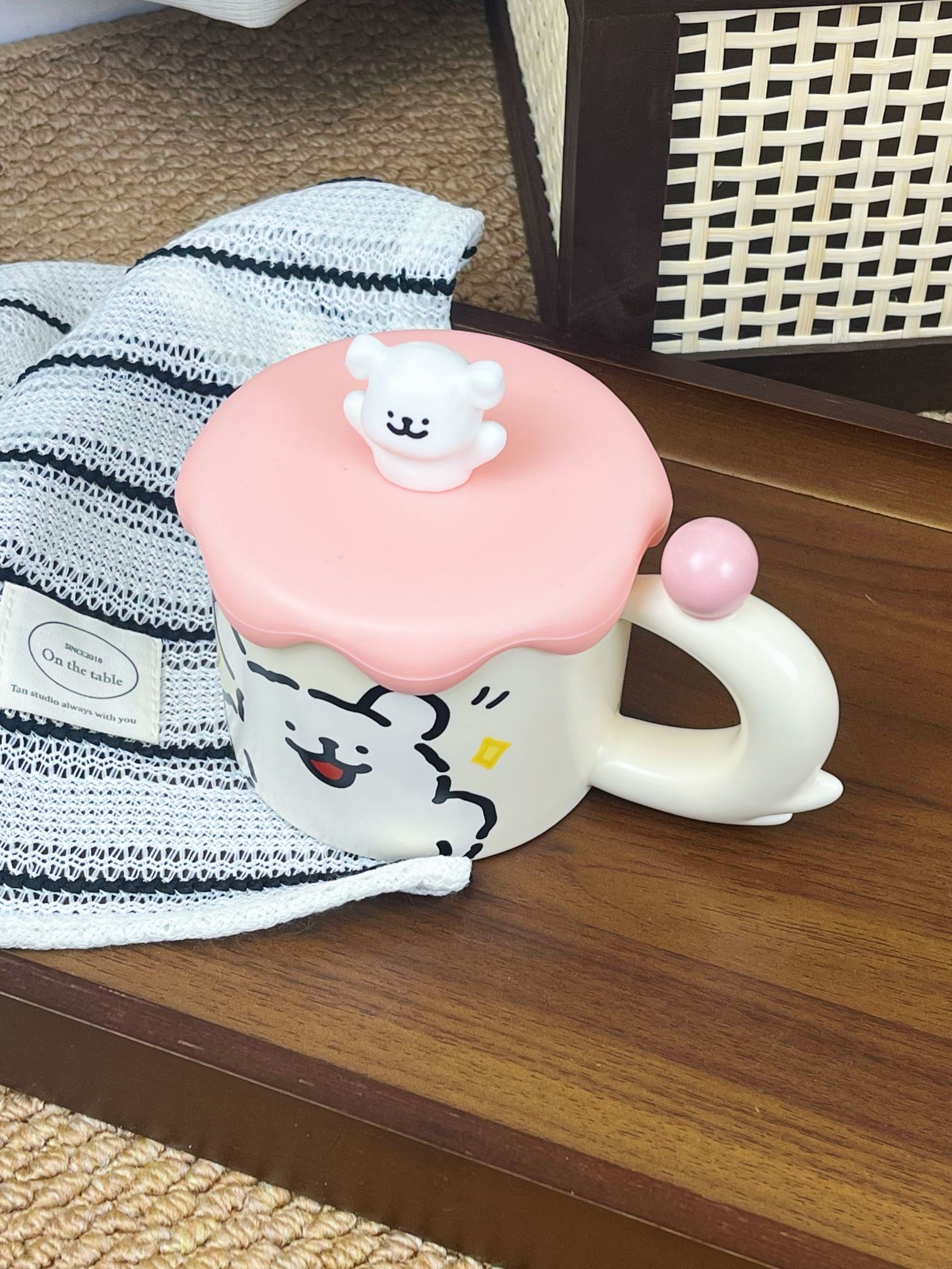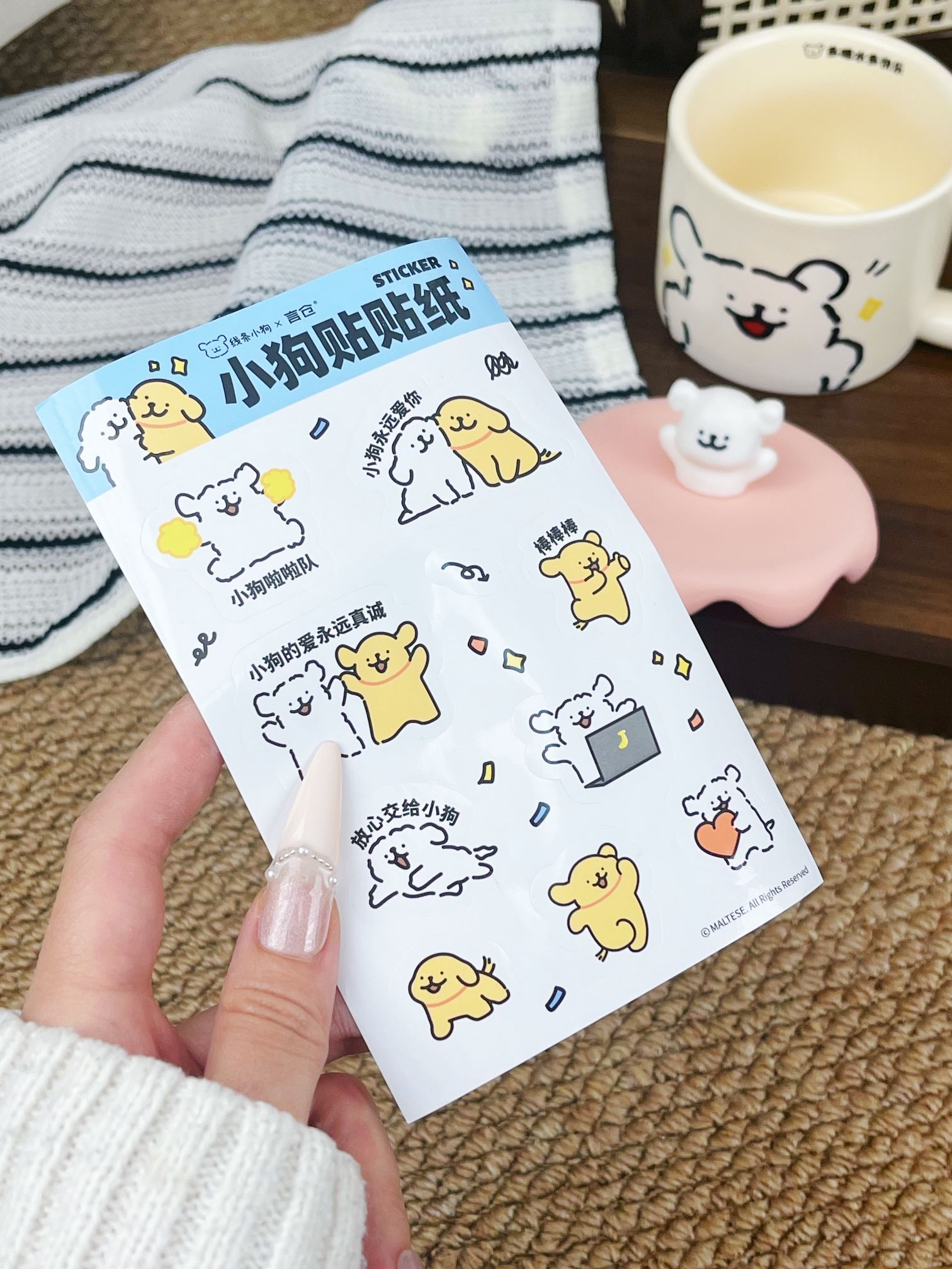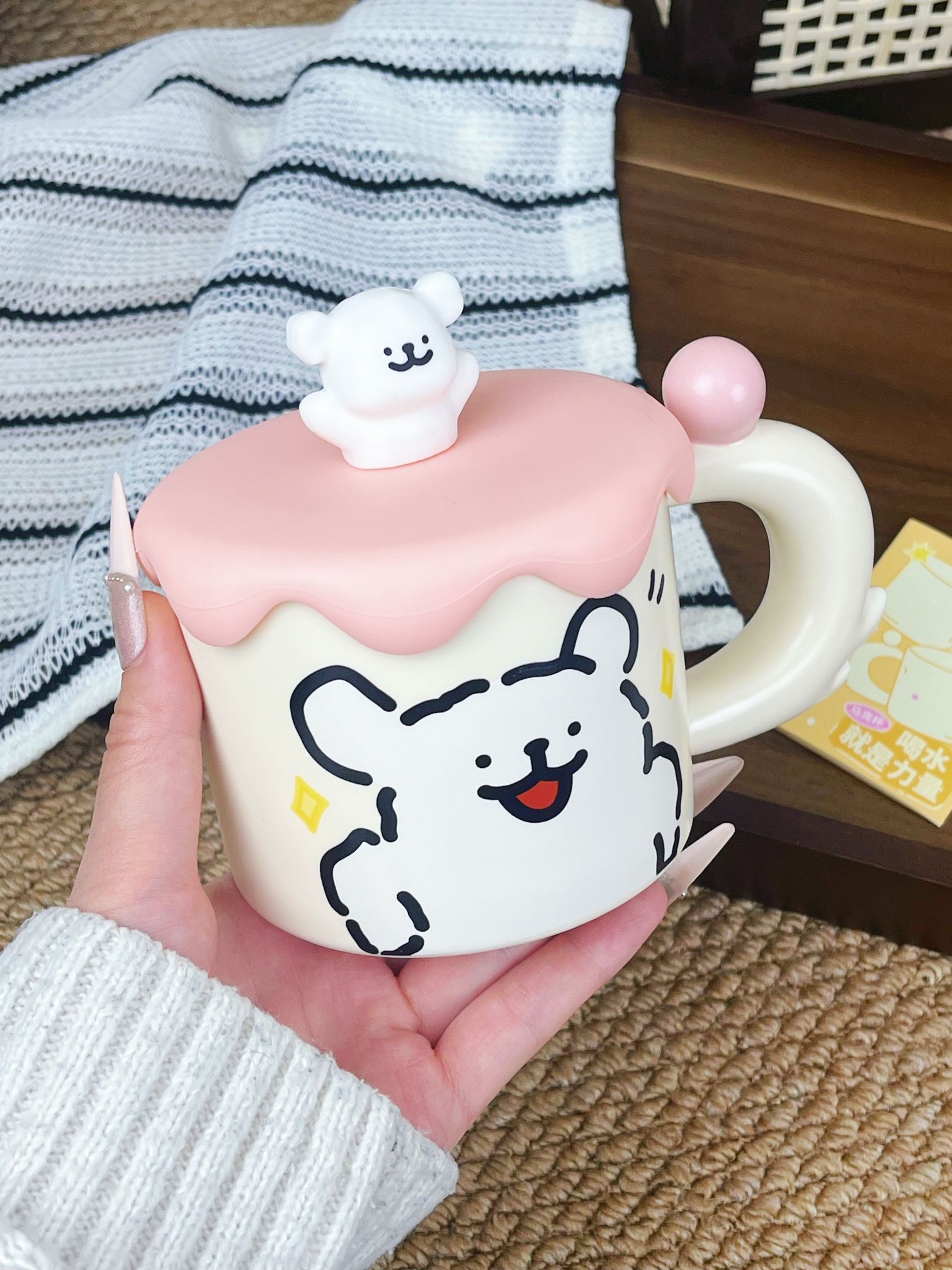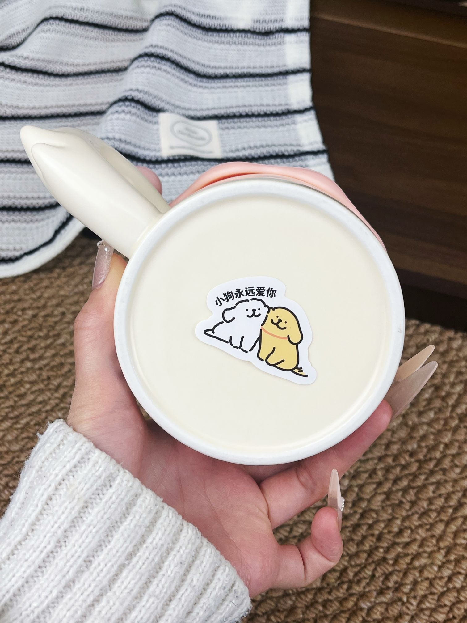 是收到会敲开心的礼物唉💝 可可爱爱的包装 还蛮有分量的 矮胖矮胖的陶瓷杯 把手还是小狗🐶的尾巴 搭配上粉粉嫩嫩的杯盖💓 尊滴可可爱爱啊 素言仓家的线条小狗马克杯 好看的杯子喝水都会心情变好😄