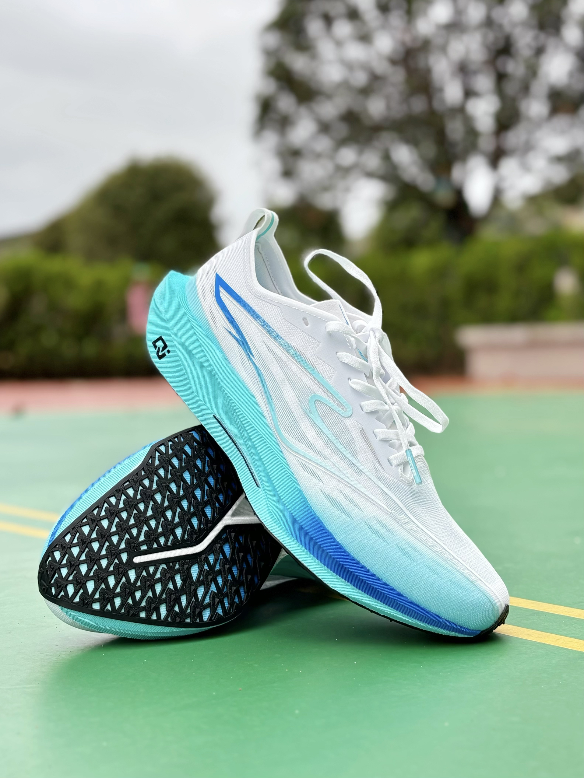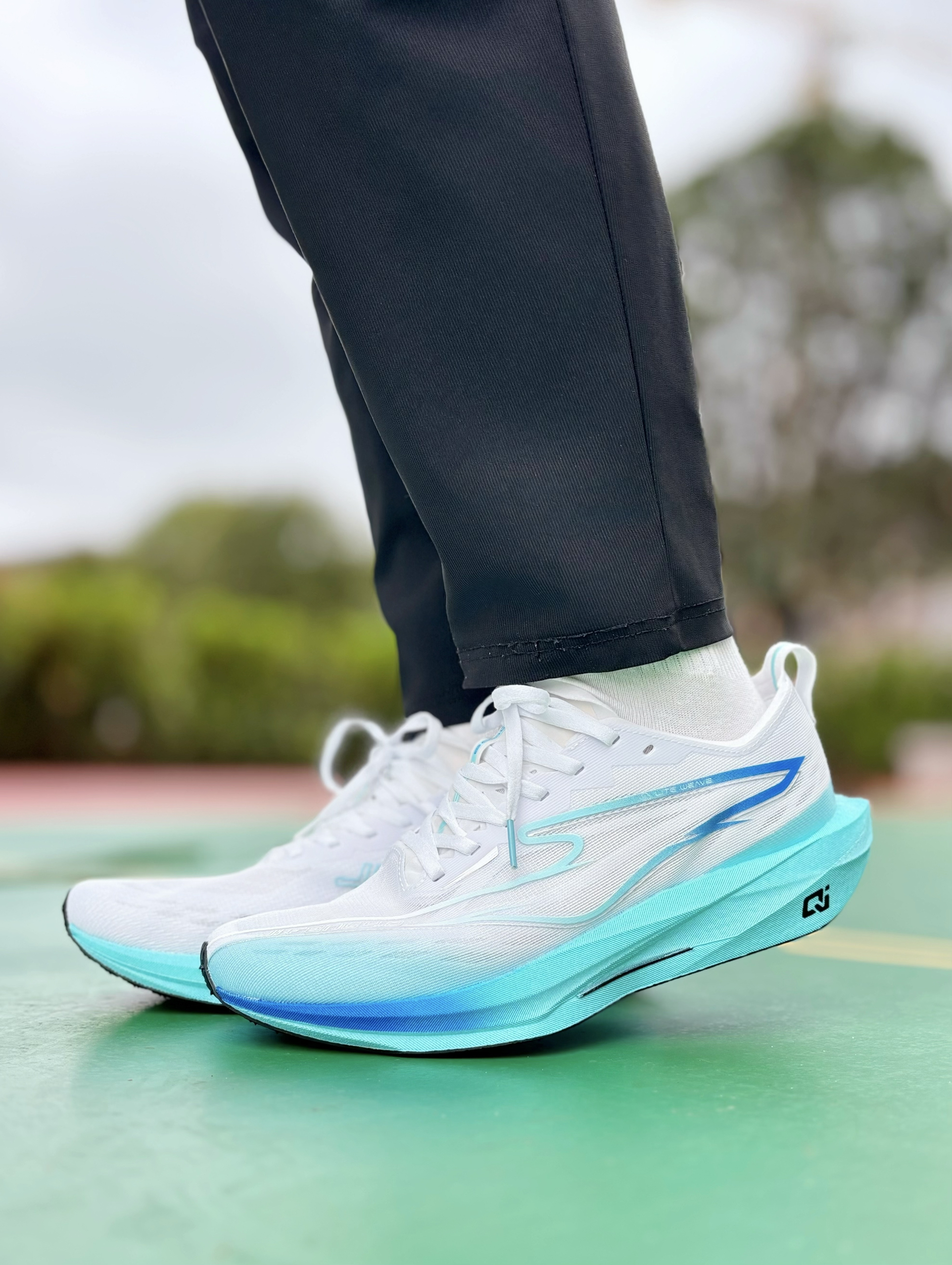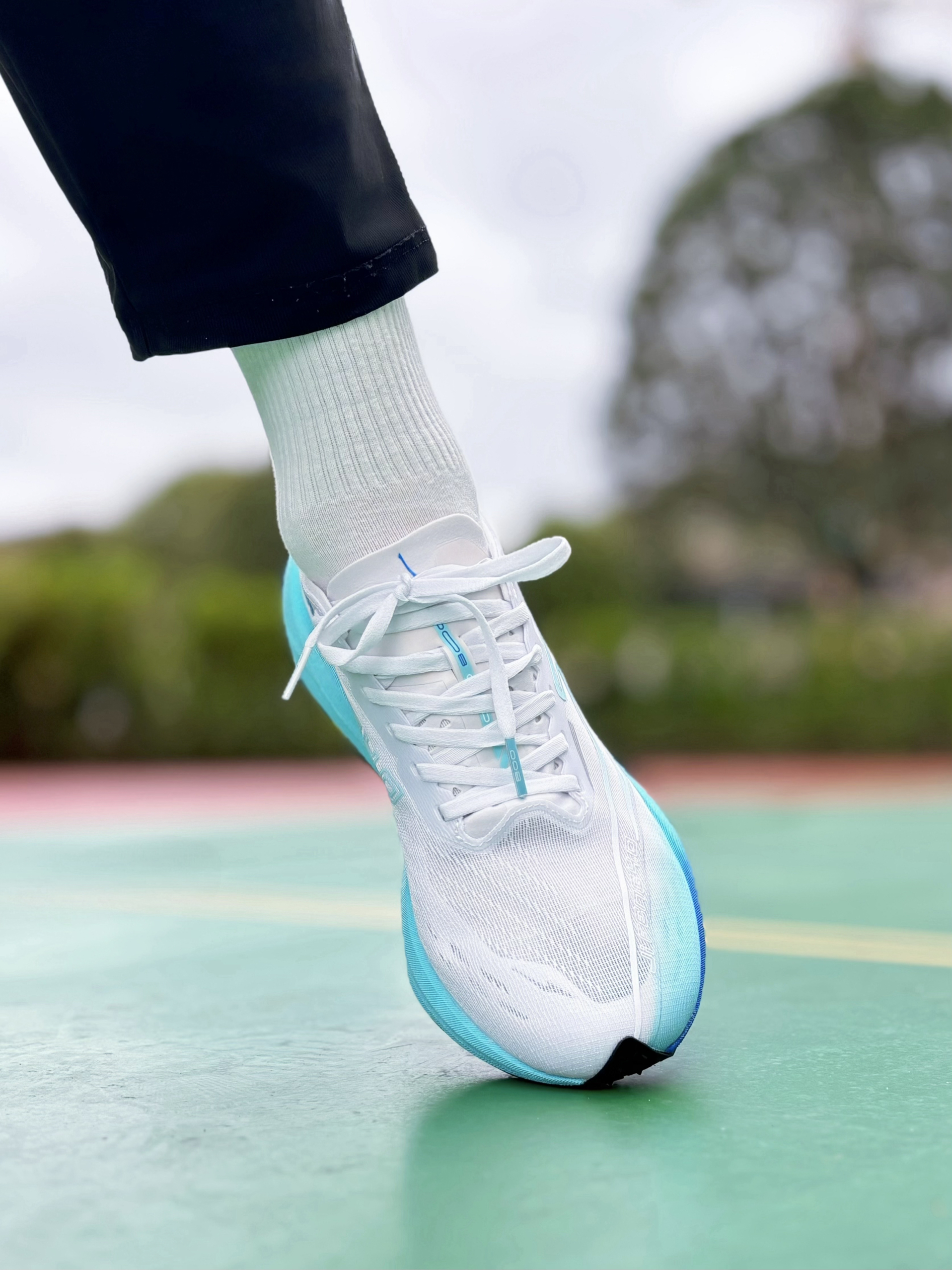 不少地区的体考体测,已经不能穿钉鞋了👟想要穿的舒服还能兼顾日常训练?那 鸿星尔克 极风4 无钉钉鞋👟分享给兄弟们!我这双是绝对零度配色,白蓝渐变看着就很清爽,平时搭校服或者运动裤都挺顺眼,不会觉得突兀~ 单只不到200g,穿起来确实轻便灵活,跑起来也没什么负担感,抬腿摆臂都省力不少。这次中底用了全掌炁科技,是双层ETPU发泡的,软弹感挺明显但又不会卸力。我跑了几圈下来,膝盖和脚踝都没什么压力,...