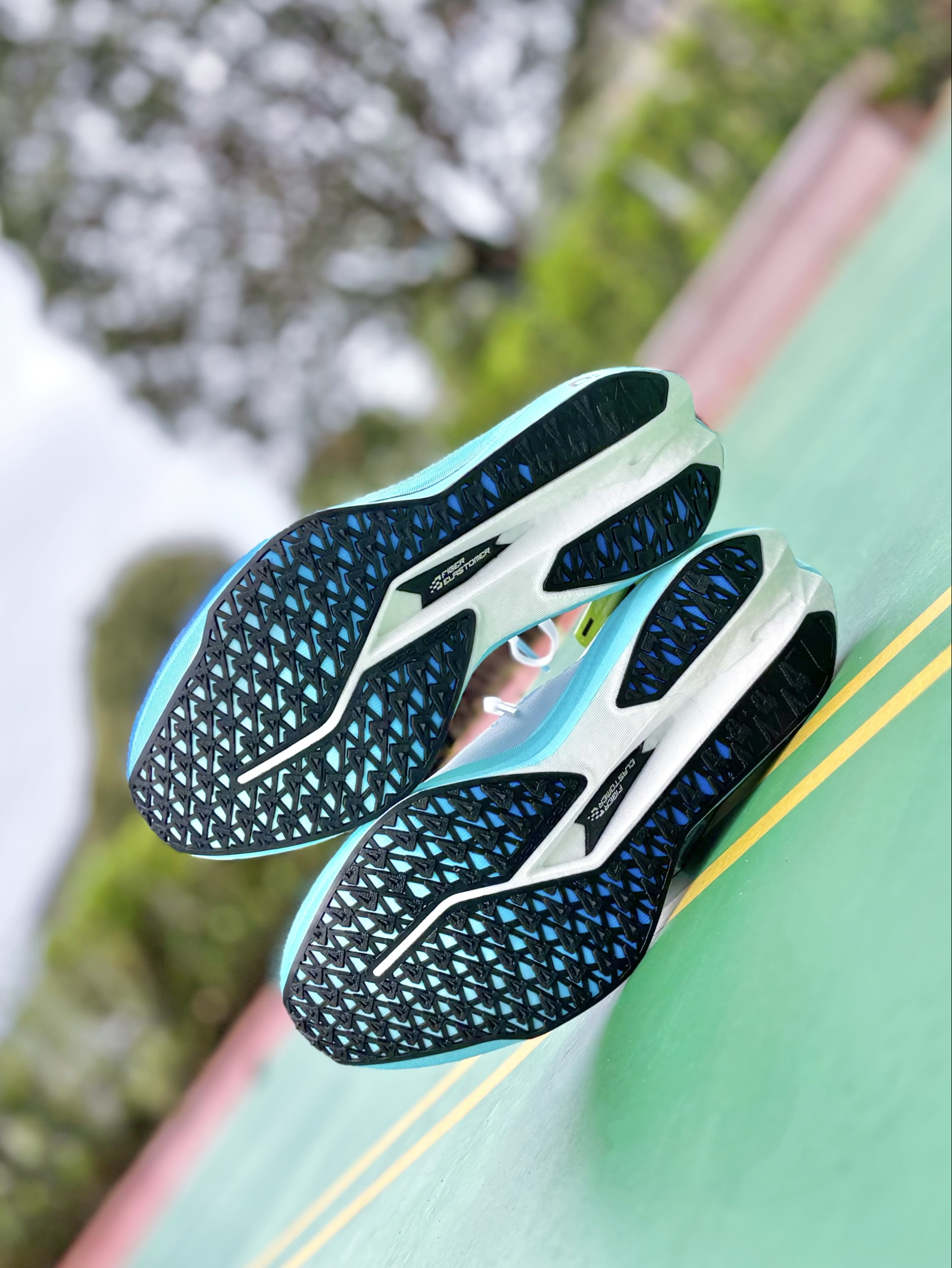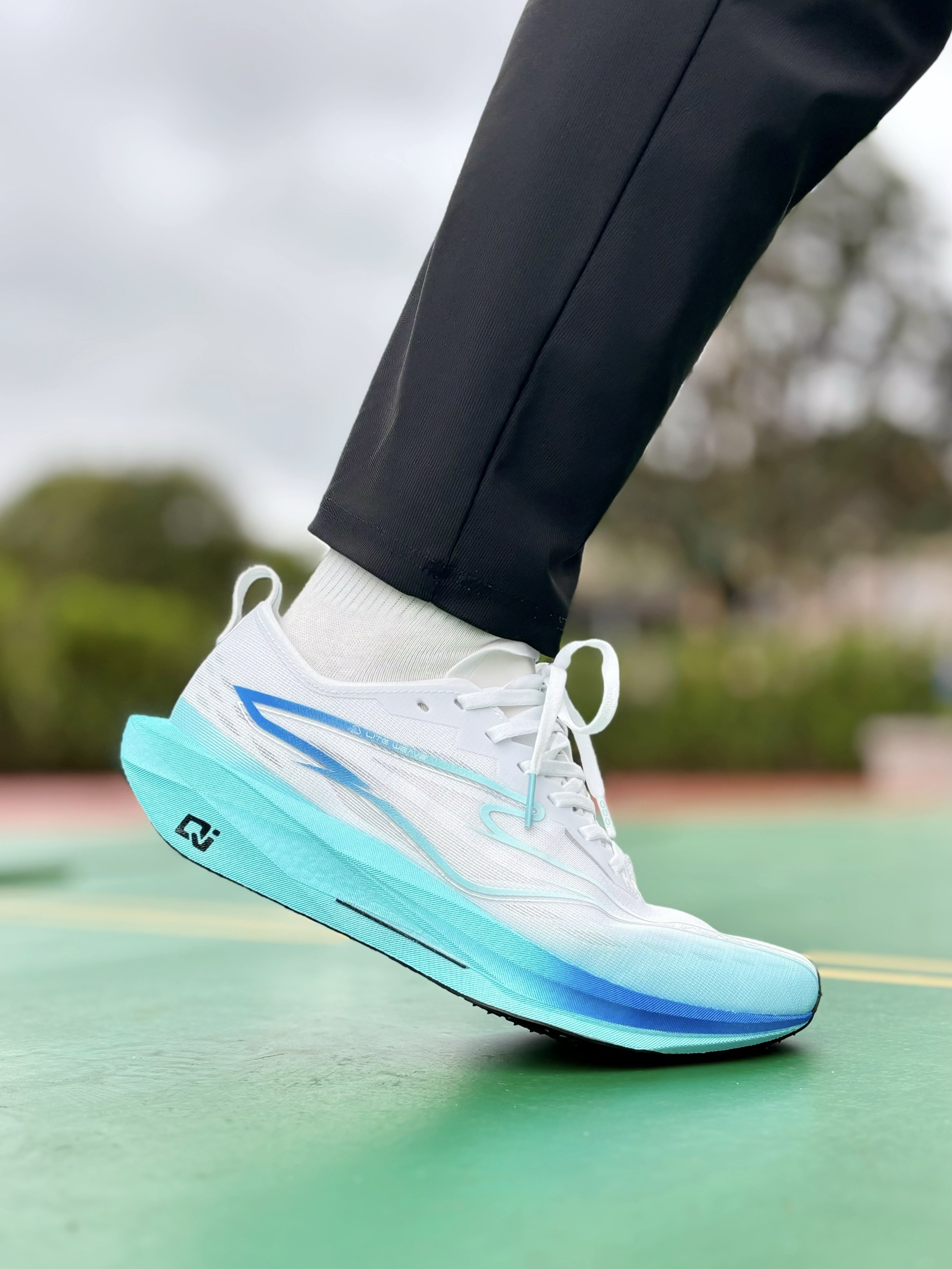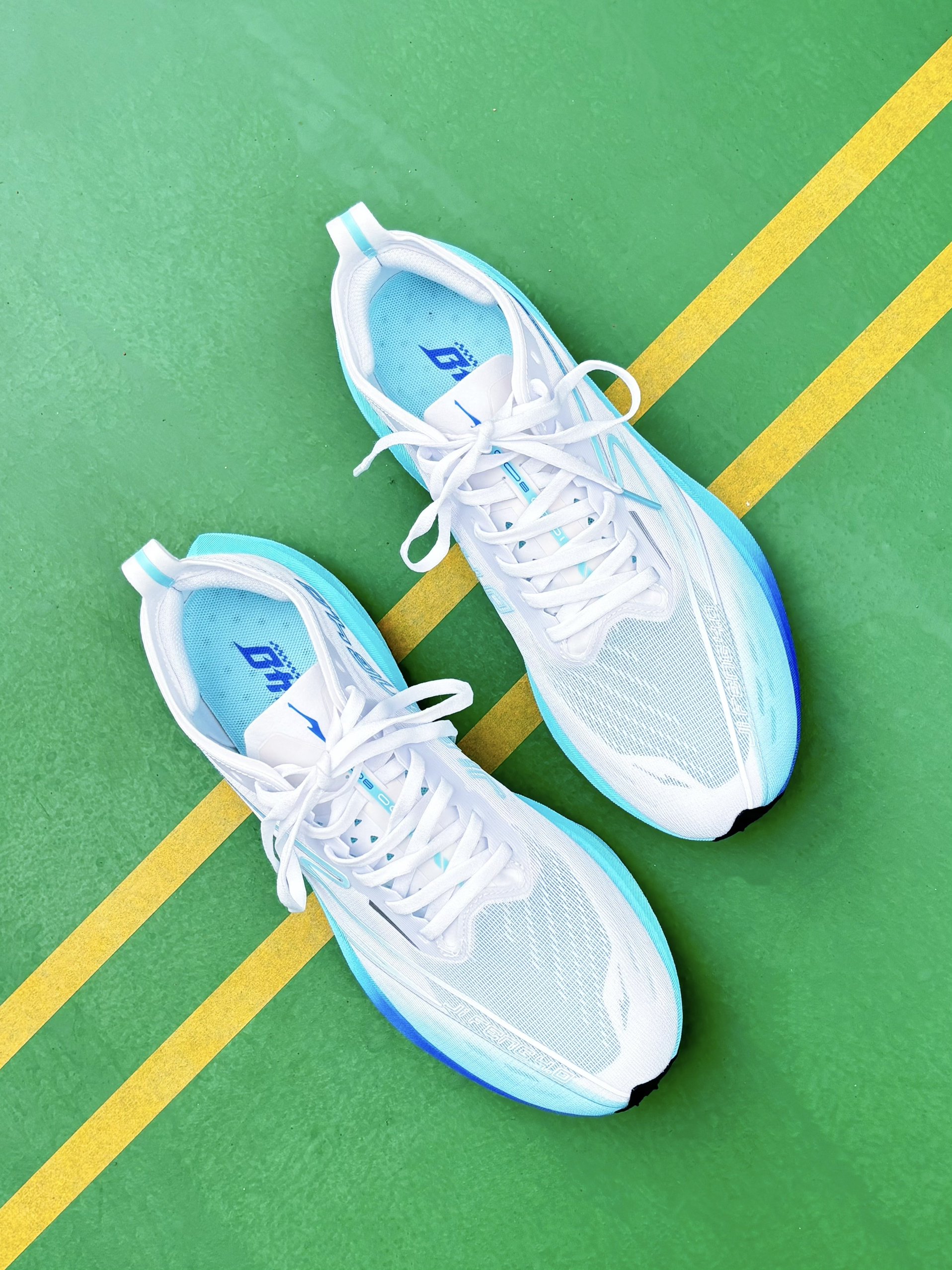 不少地区的体考体测,已经不能穿钉鞋了👟想要穿的舒服还能兼顾日常训练?那 鸿星尔克 极风4 无钉钉鞋👟分享给兄弟们!我这双是绝对零度配色,白蓝渐变看着就很清爽,平时搭校服或者运动裤都挺顺眼,不会觉得突兀~ 单只不到200g,穿起来确实轻便灵活,跑起来也没什么负担感,抬腿摆臂都省力不少。这次中底用了全掌炁科技,是双层ETPU发泡的,软弹感挺明显但又不会卸力。我跑了几圈下来,膝盖和脚踝都没什么压力,...