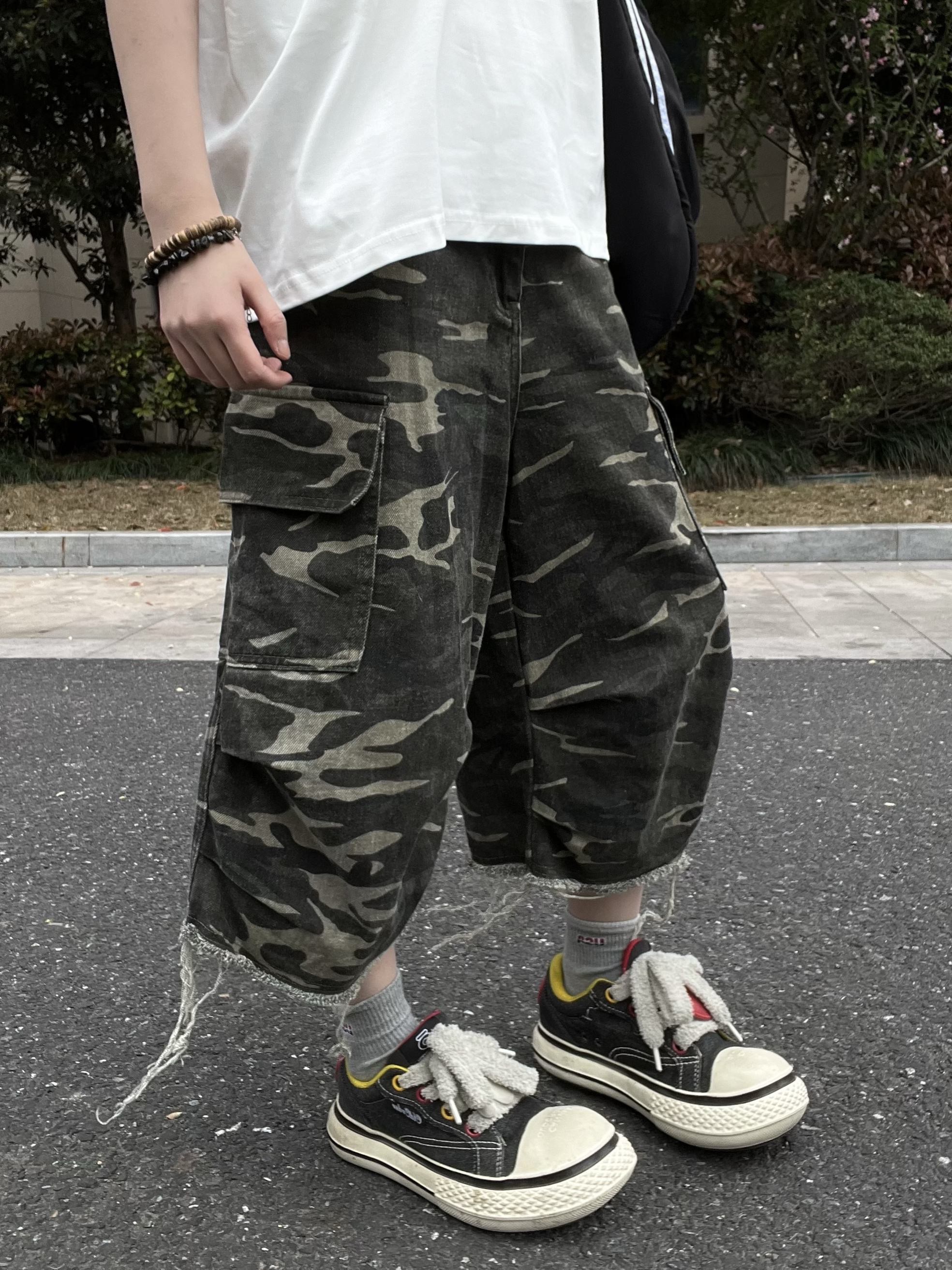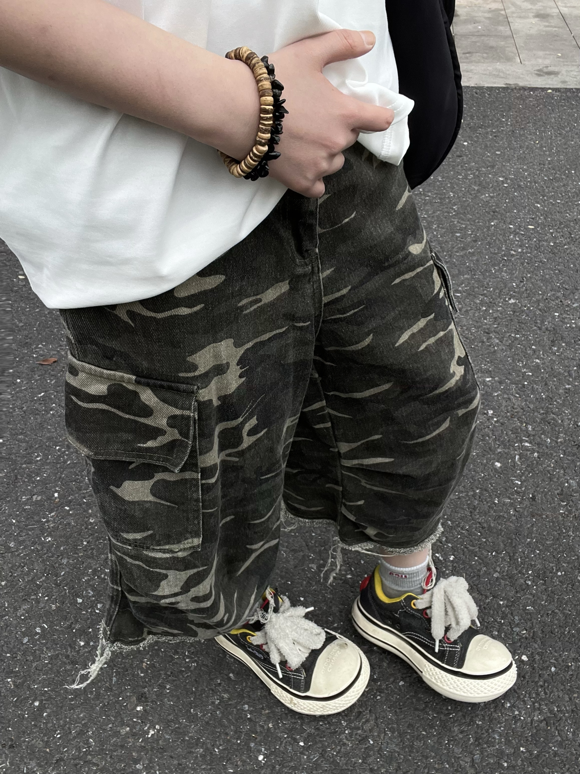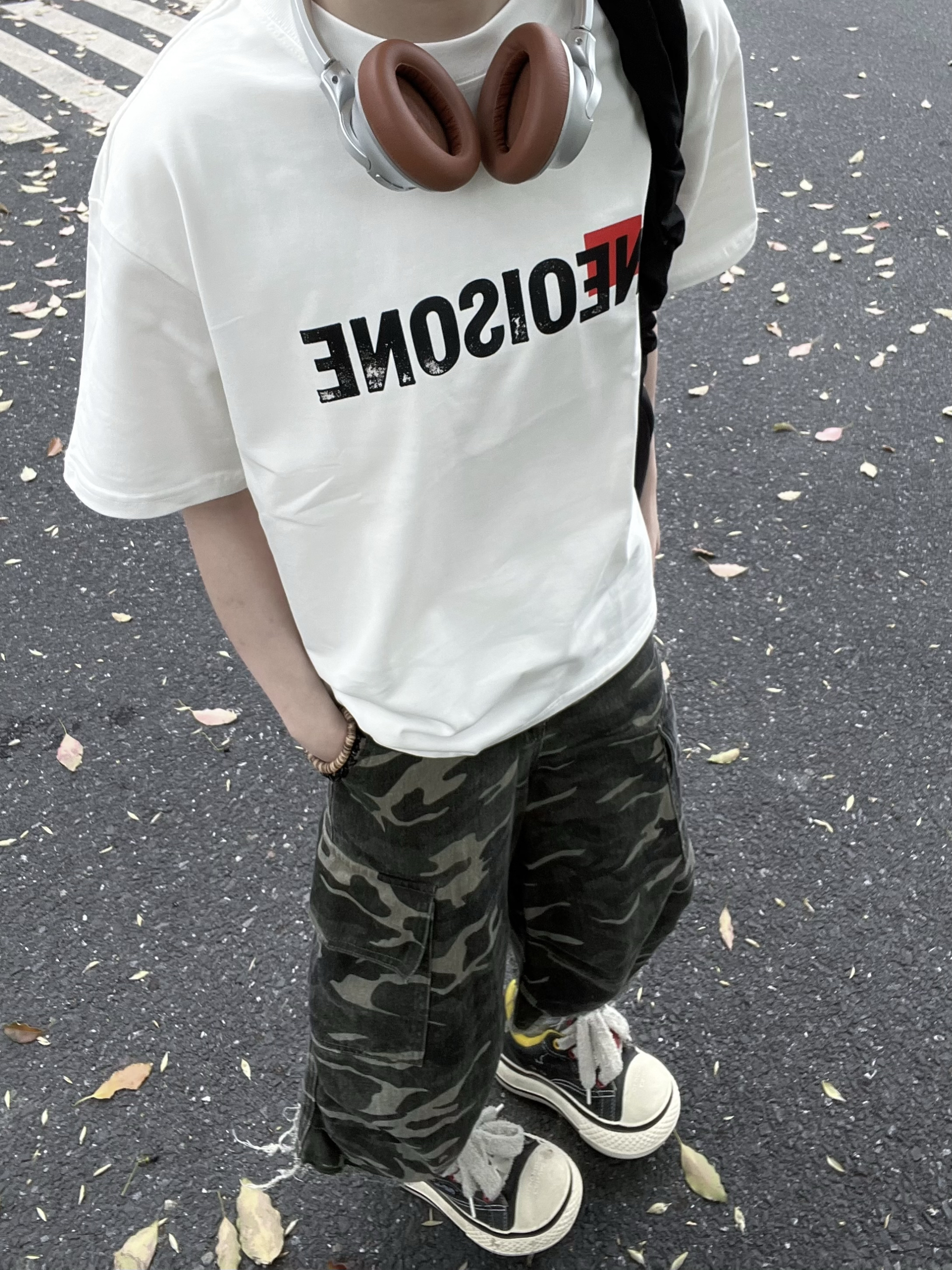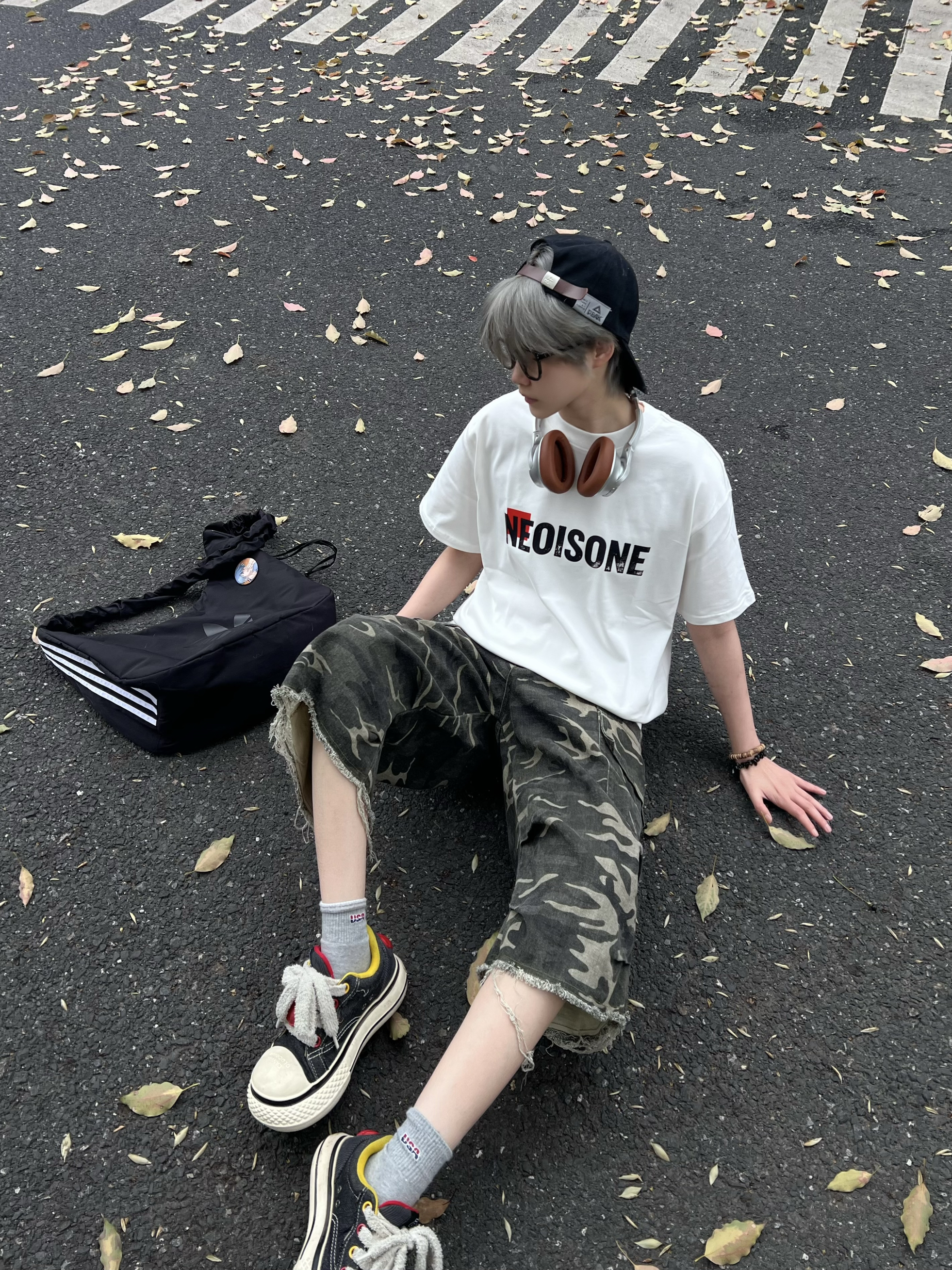 白T+迷彩七分裤,直接把松弛感和少年感焊在身上✨ 基础款白T干净利落,宽松落肩不挑身材,单穿就很有清爽感; 做旧迷彩七分工装裤是整套的灵魂,毛边裤脚+大口袋设计,自带美式街头那味儿,宽松阔腿版型藏肉又显腿长,梨形身材直接闭眼冲。 搭配复古大头鞋、棒球帽和耳机,整套穿搭随性又有细节,上学、通勤、出街都适配,不费力就穿出满满的少年感,男生春夏穿搭直接抄作业!