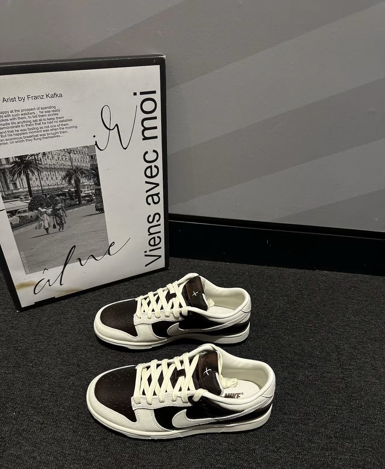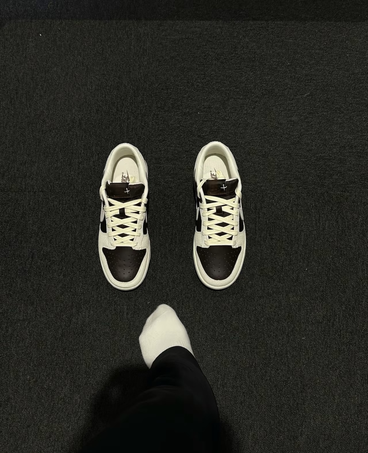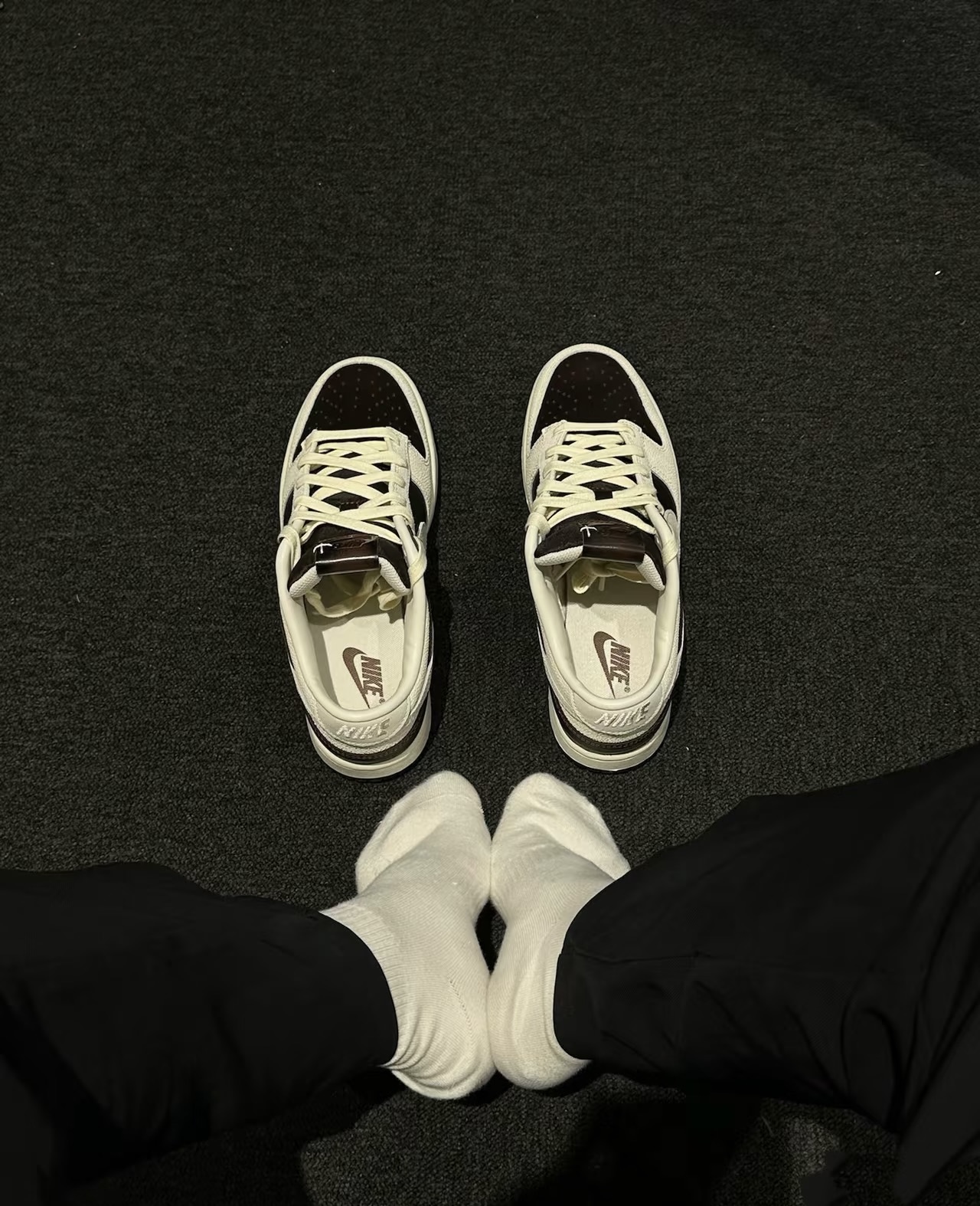 真的好爱这种复古配色!Nike Dunk这款棕白拼接,温柔又耐看,不用费力搭配就很有质感。 荔枝纹鞋面搭配做旧米色鞋带,细节满满,上脚脚感舒适,通勤逛街都百搭。我平时穿41码,这款版型正,不管配牛仔裤还是运动裤都很出片,性价比很高。