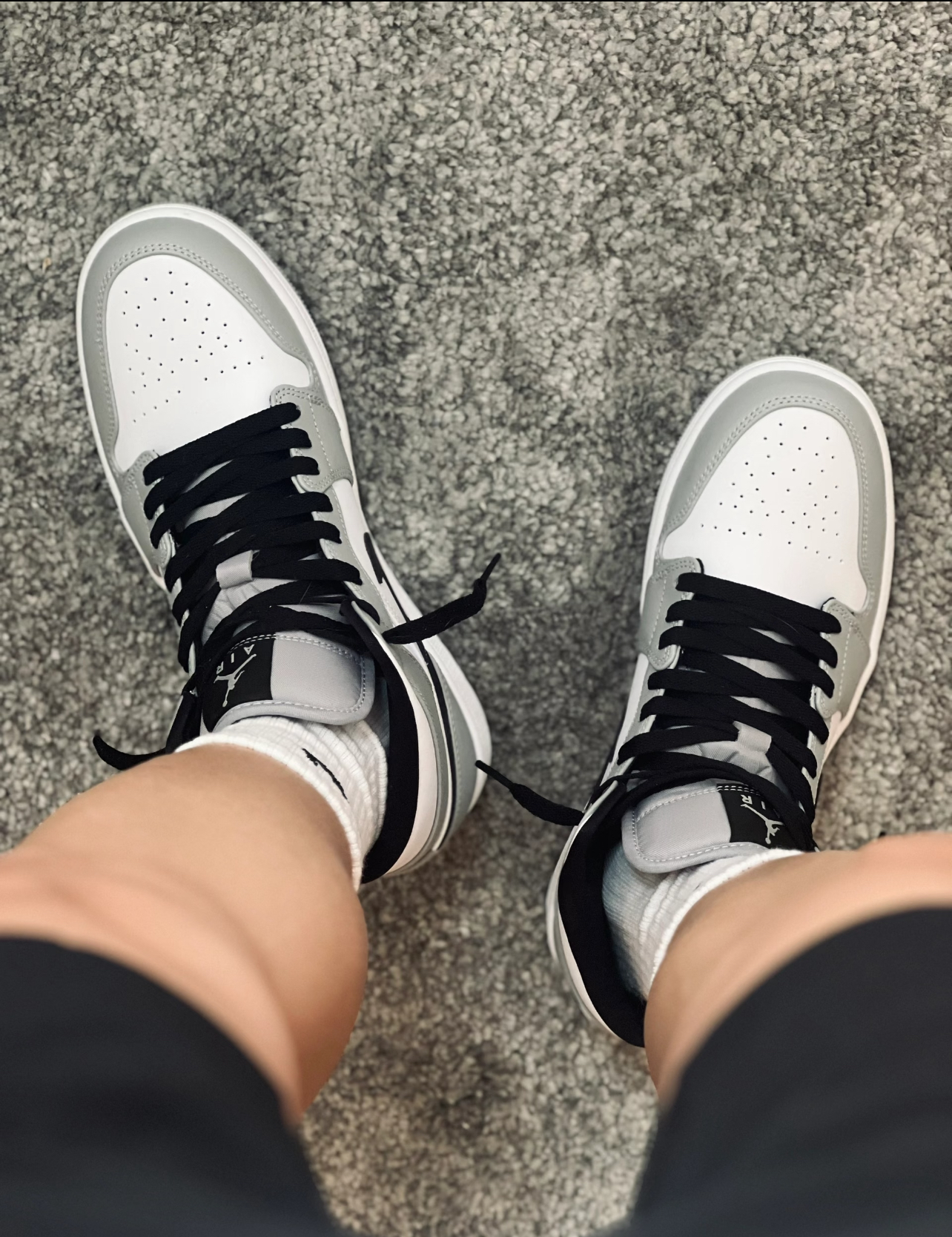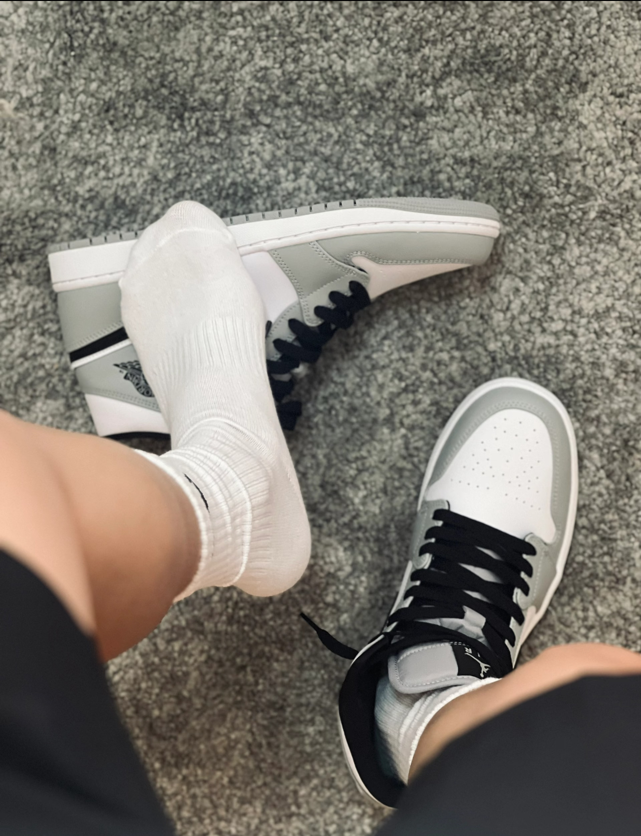 被这双AJ1烟灰配色狠狠拿捏!灰白黑经典拼接,质感像极了Dior联名款,低调又高级。 中帮版型修饰腿型,合成革鞋面耐造易打理,搭配黑鞋带更显利落,我175/65穿41码刚好,不管配牛仔裤还是束脚裤都很出片。