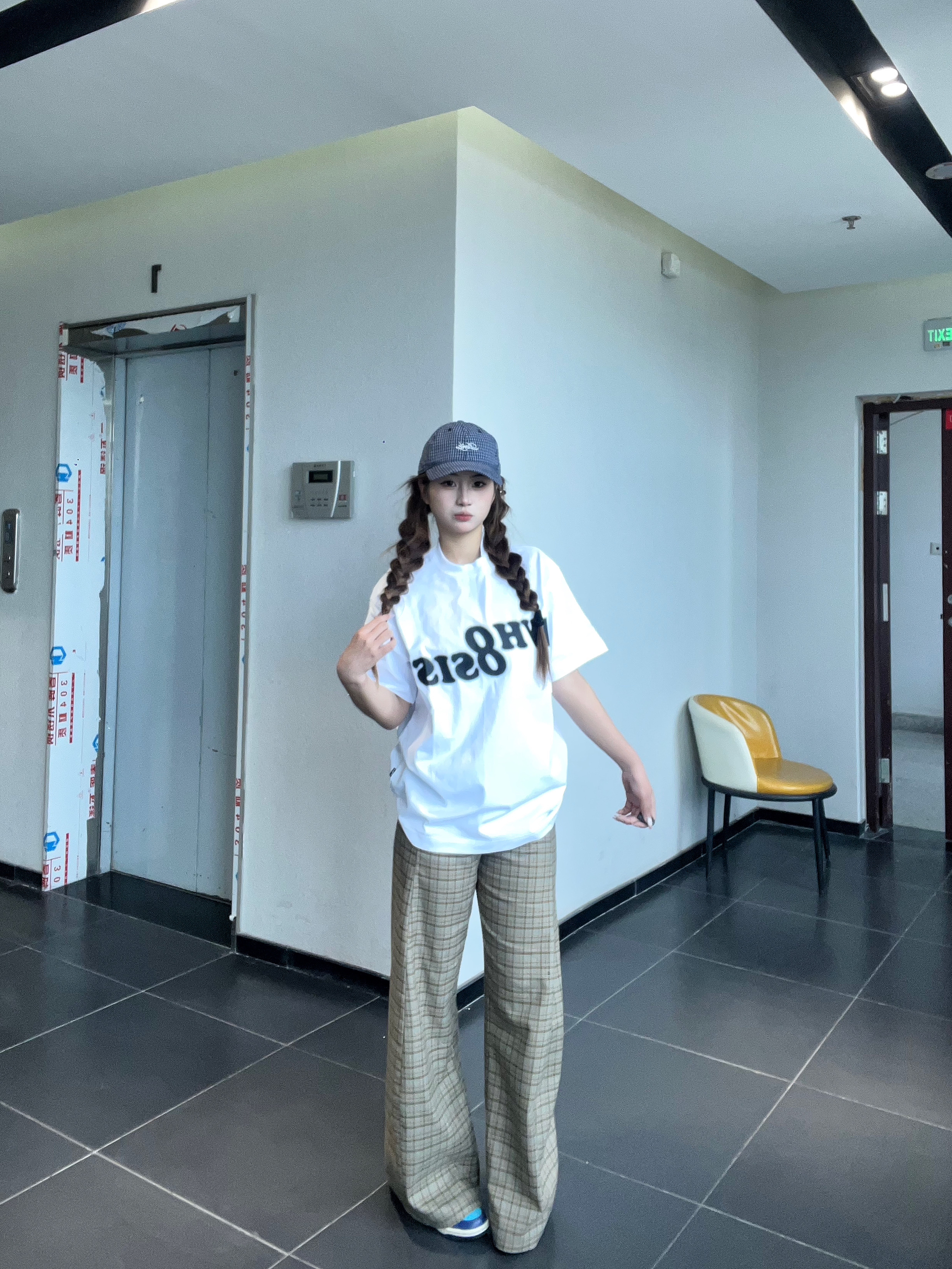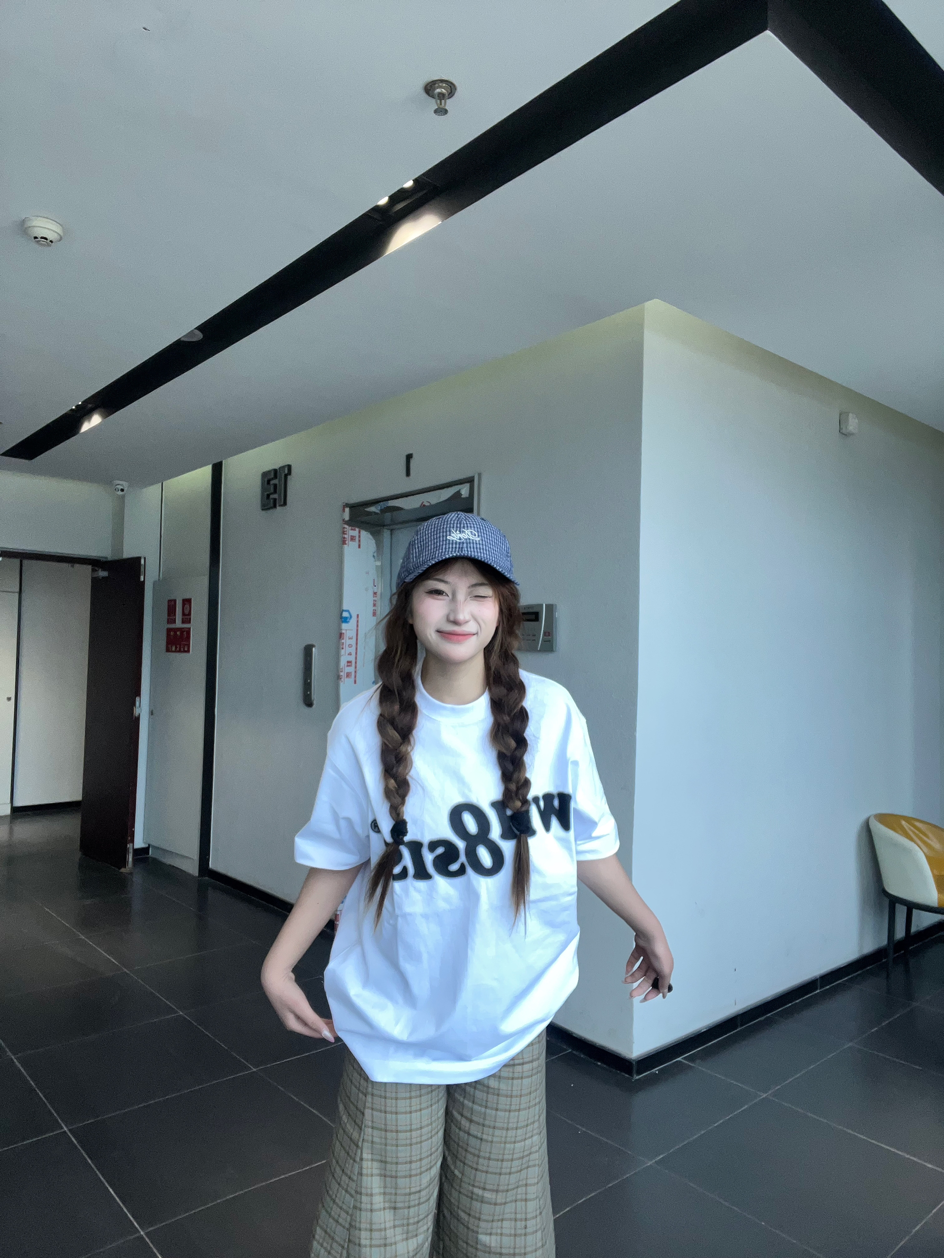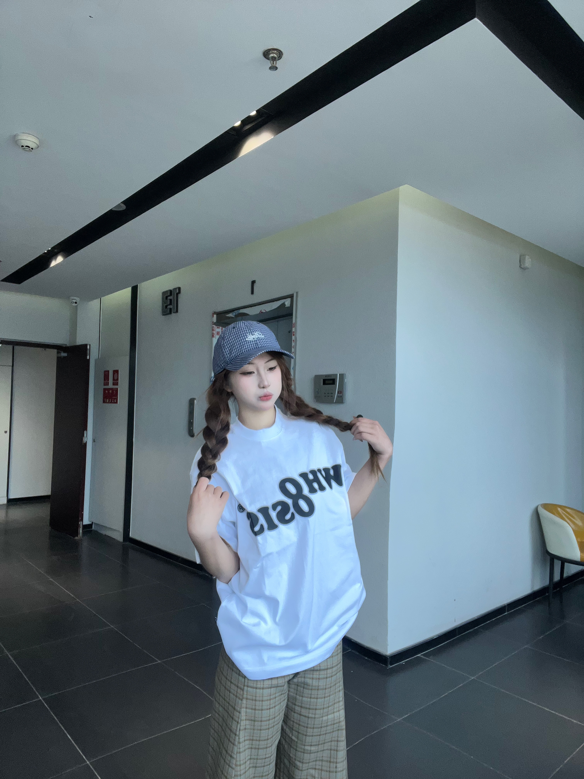 宽松版型对各种身材都很友好,落肩设计藏肉又随性,黑白配色经典又耐看。面料是那种软软糯糯的纯棉,贴肤穿超舒服,夏天穿也不闷汗。 搭配格纹阔腿裤慵懒感拉满,日常出街、通勤都合适,随便戴个棒球帽就很有美式复古那味儿,性价比绝了,已经安利给闺蜜啦!🛒好物名称: