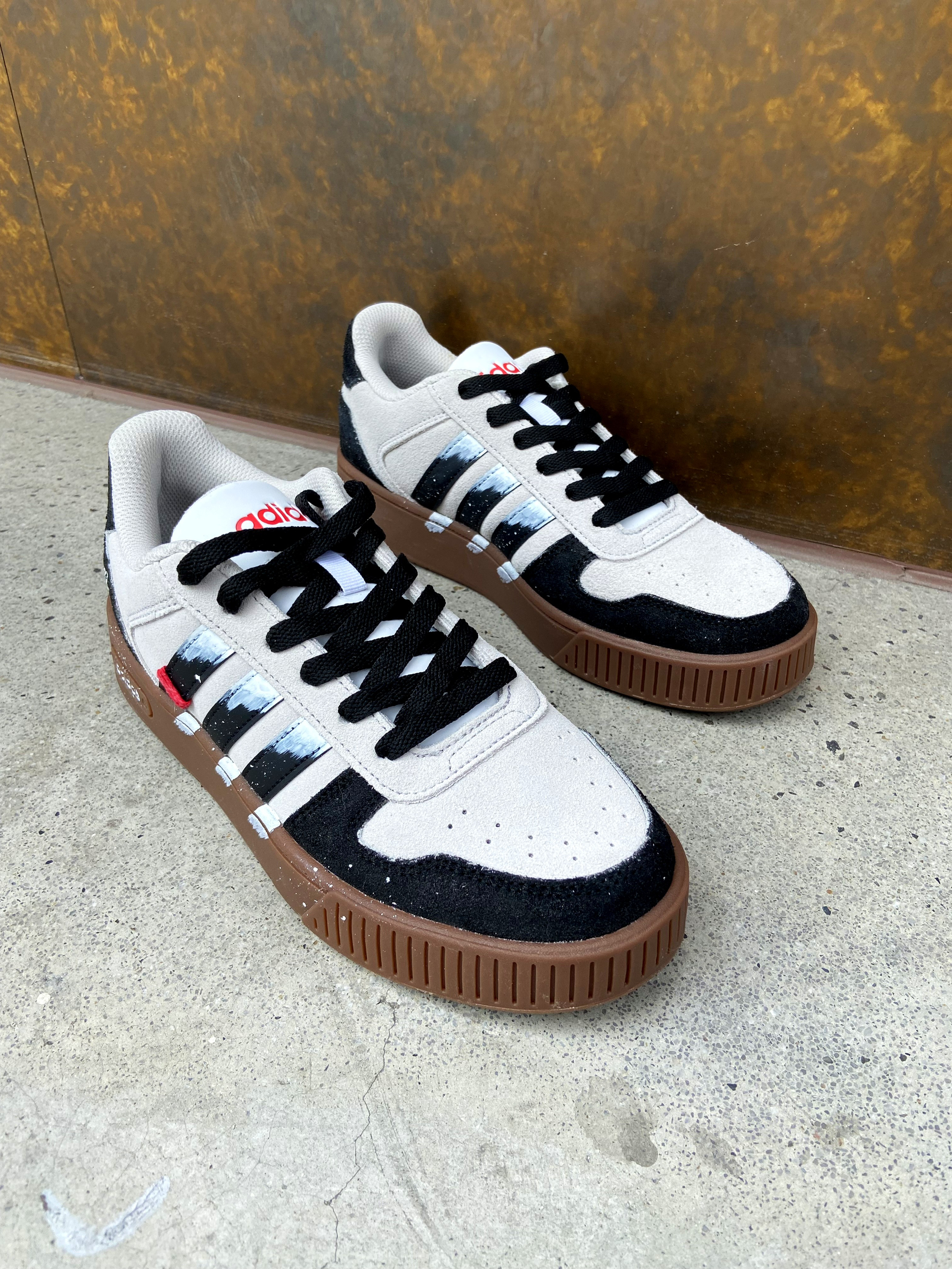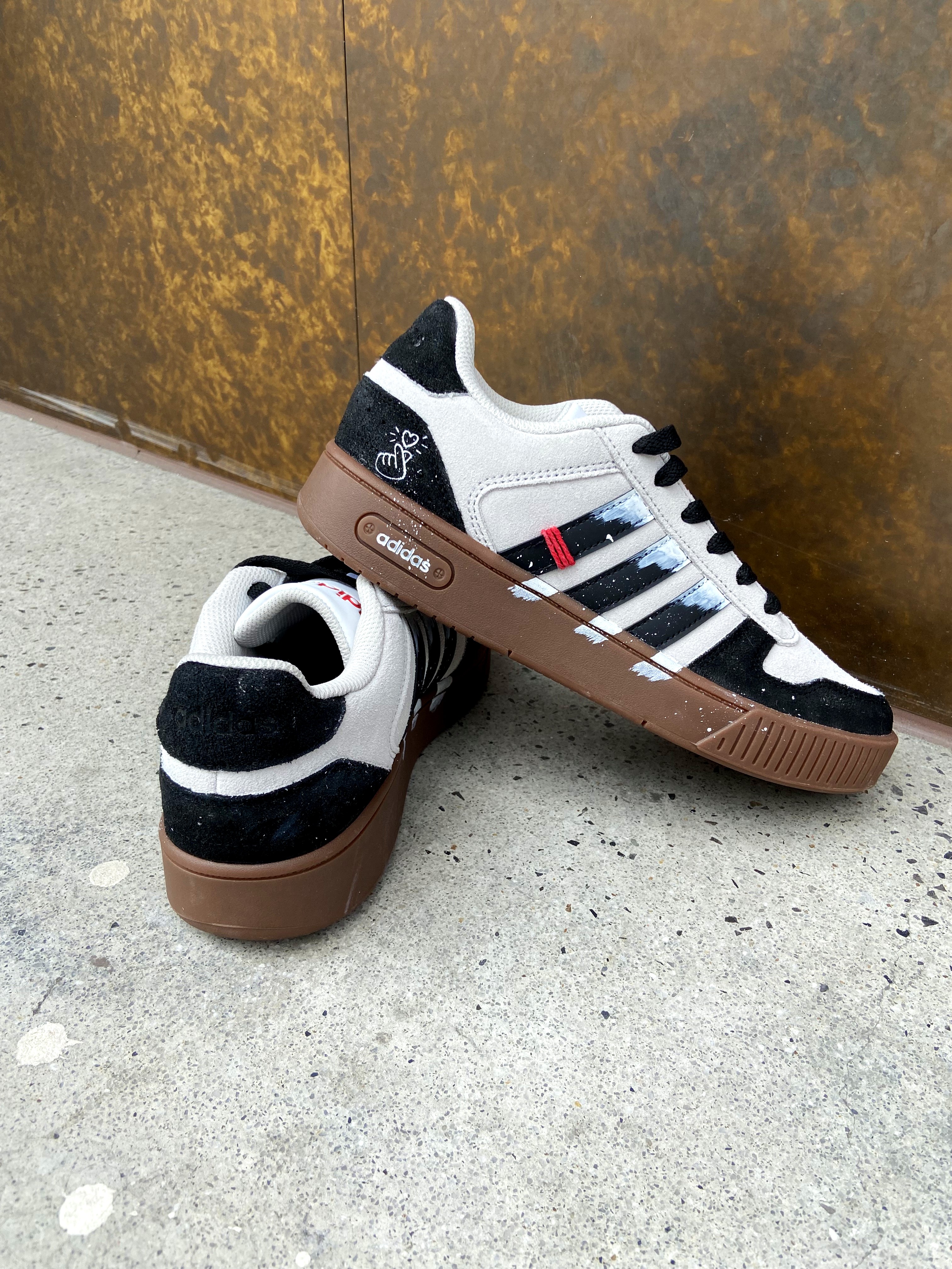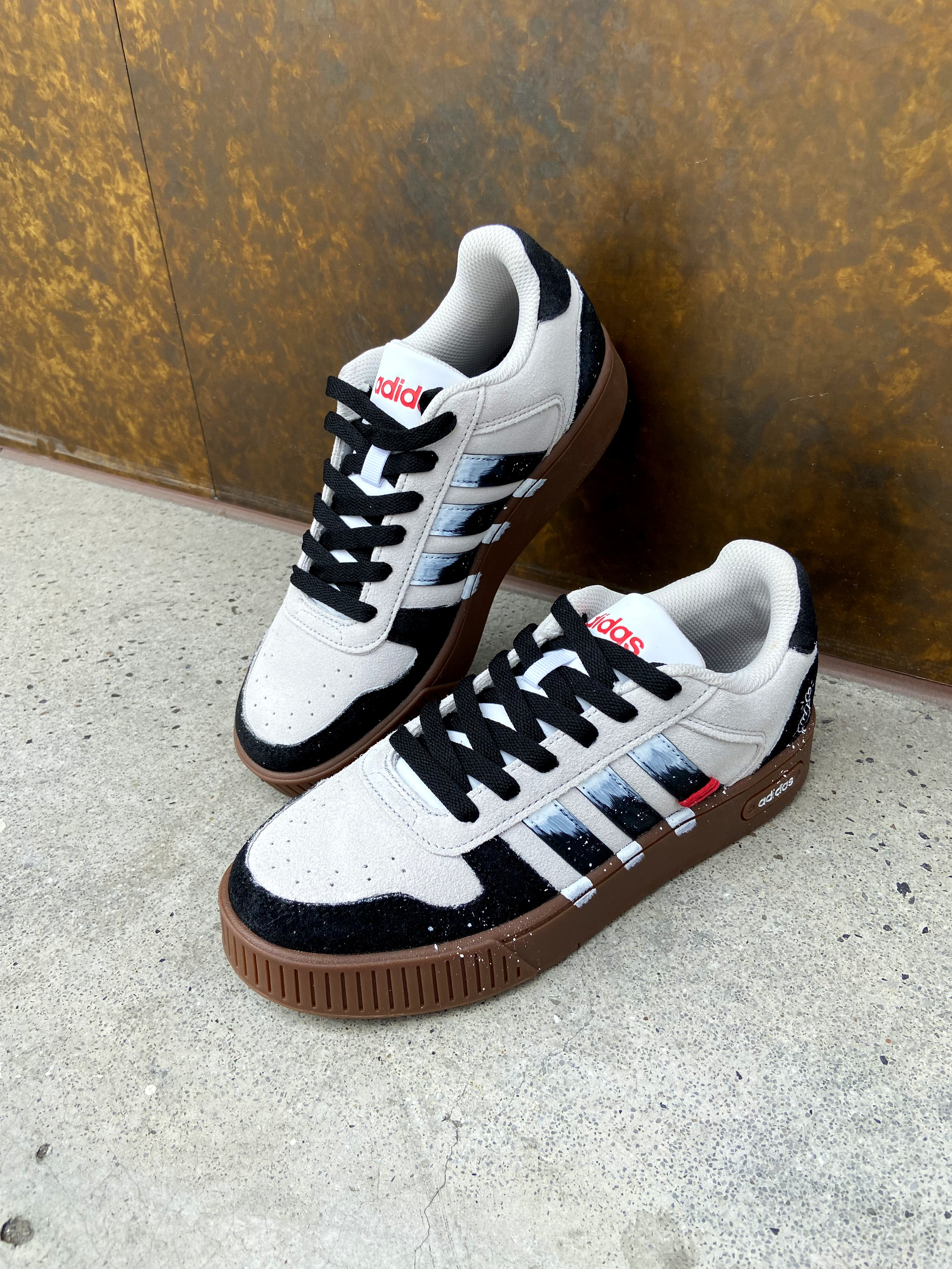 经典黑白配色+生胶底,复古感拉满✨ 脚感软糯不磨脚,通勤逛街都好走,耐造又百搭,日常穿超省心。三条杠设计+侧边小细节,辨识度拉满。鞋底软弹不板脚,走久也不累,700+的价位性价比在线。