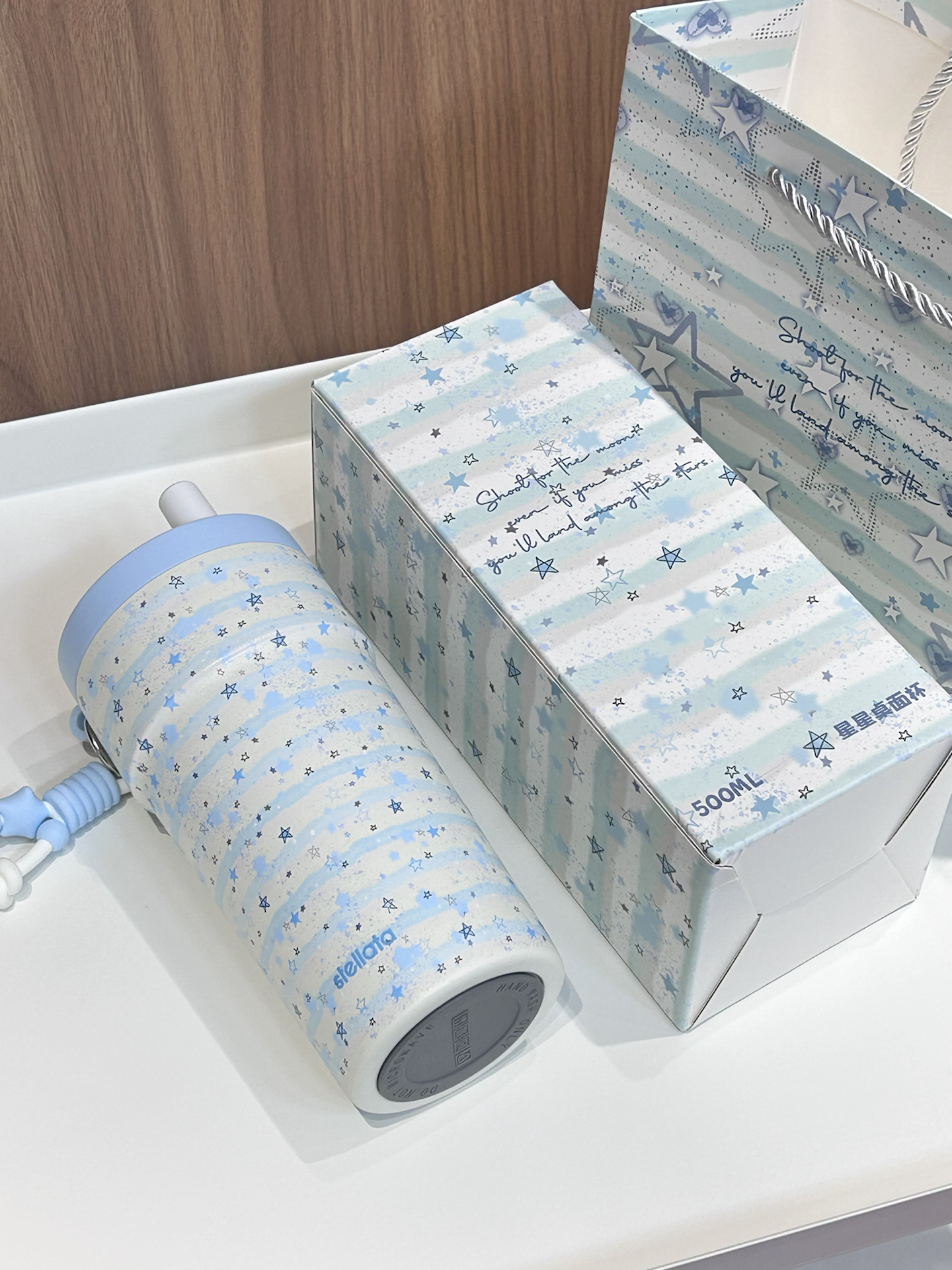谁懂啊 这个星星杯真的好好看 奶fufu的蓝白配色 满印星星图案 拿在手上颜值好高 500ml容量 日常通勤带一杯刚好 保温效果还不错 早上装的热水 到中午喝还是温温的 带吸管设计 喝冰饮超方便 还配了同系列礼盒礼袋 送朋友也很合适 我平时放桌面用 颜值和实用性都在线 用着还蛮舒服的 很喜欢这种清新又实用的杯子 #生活小物挖宝大赛 #怪可爱的小玩意 #百元宝藏生...