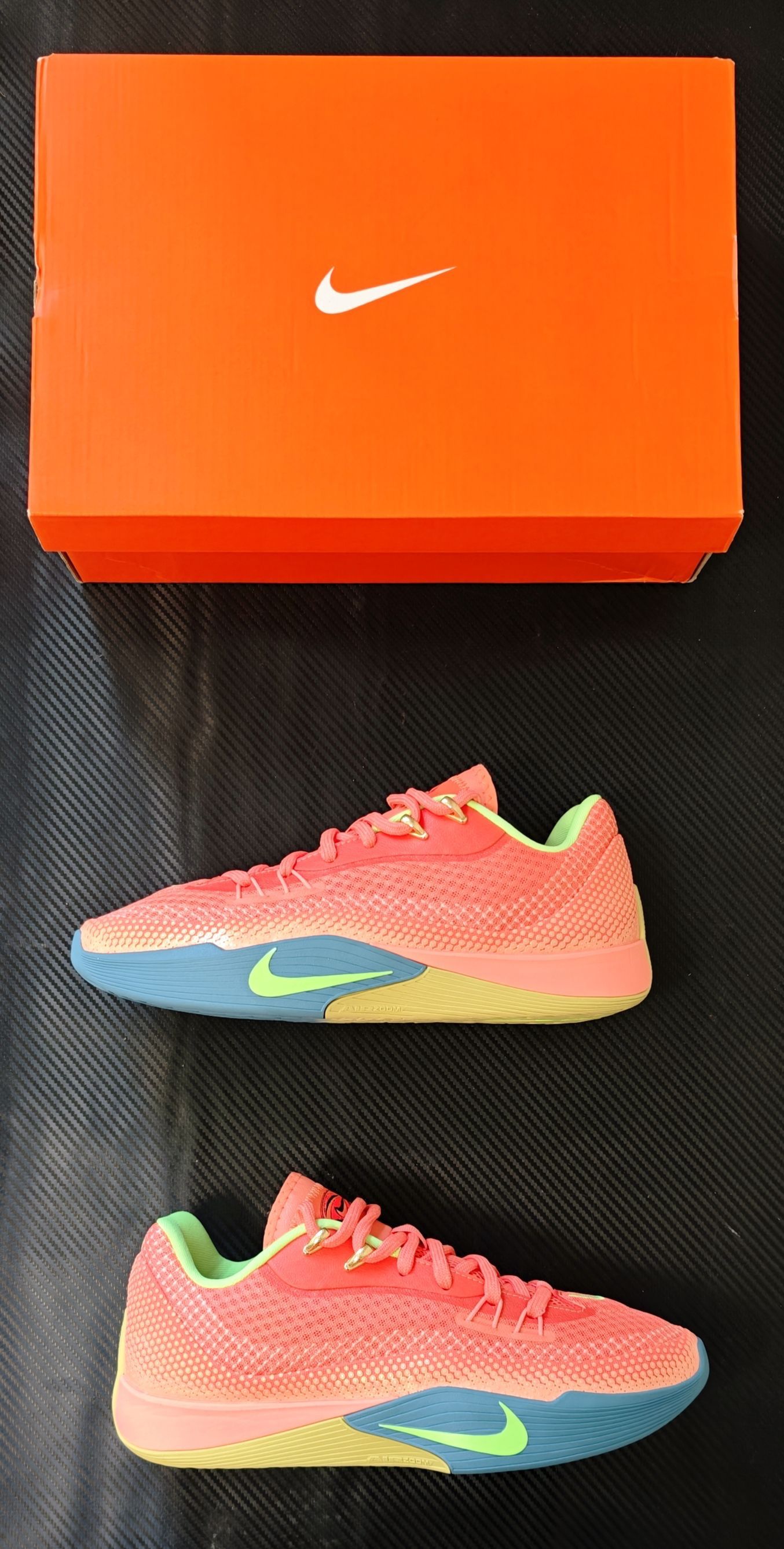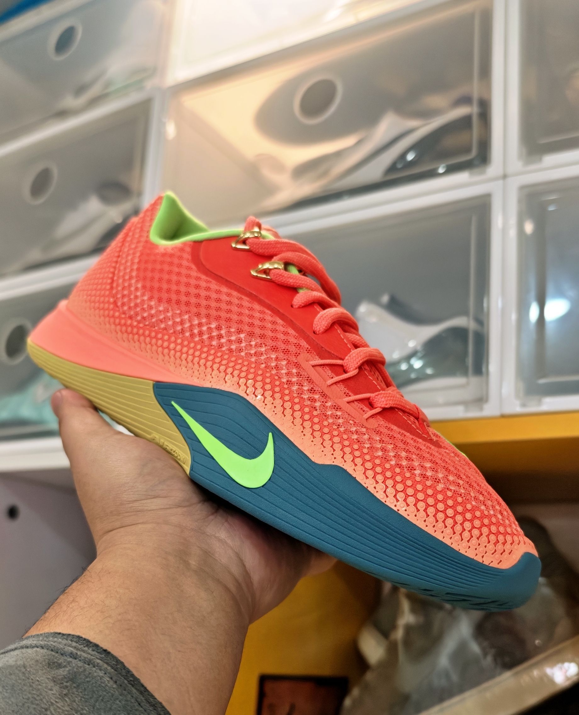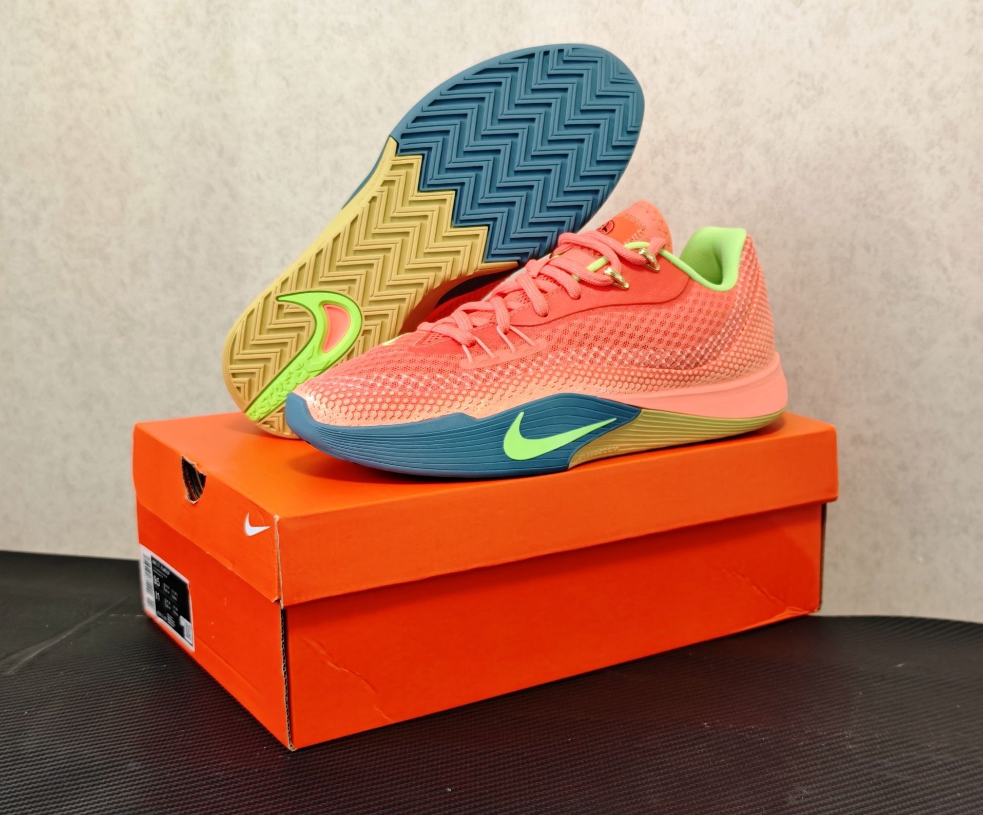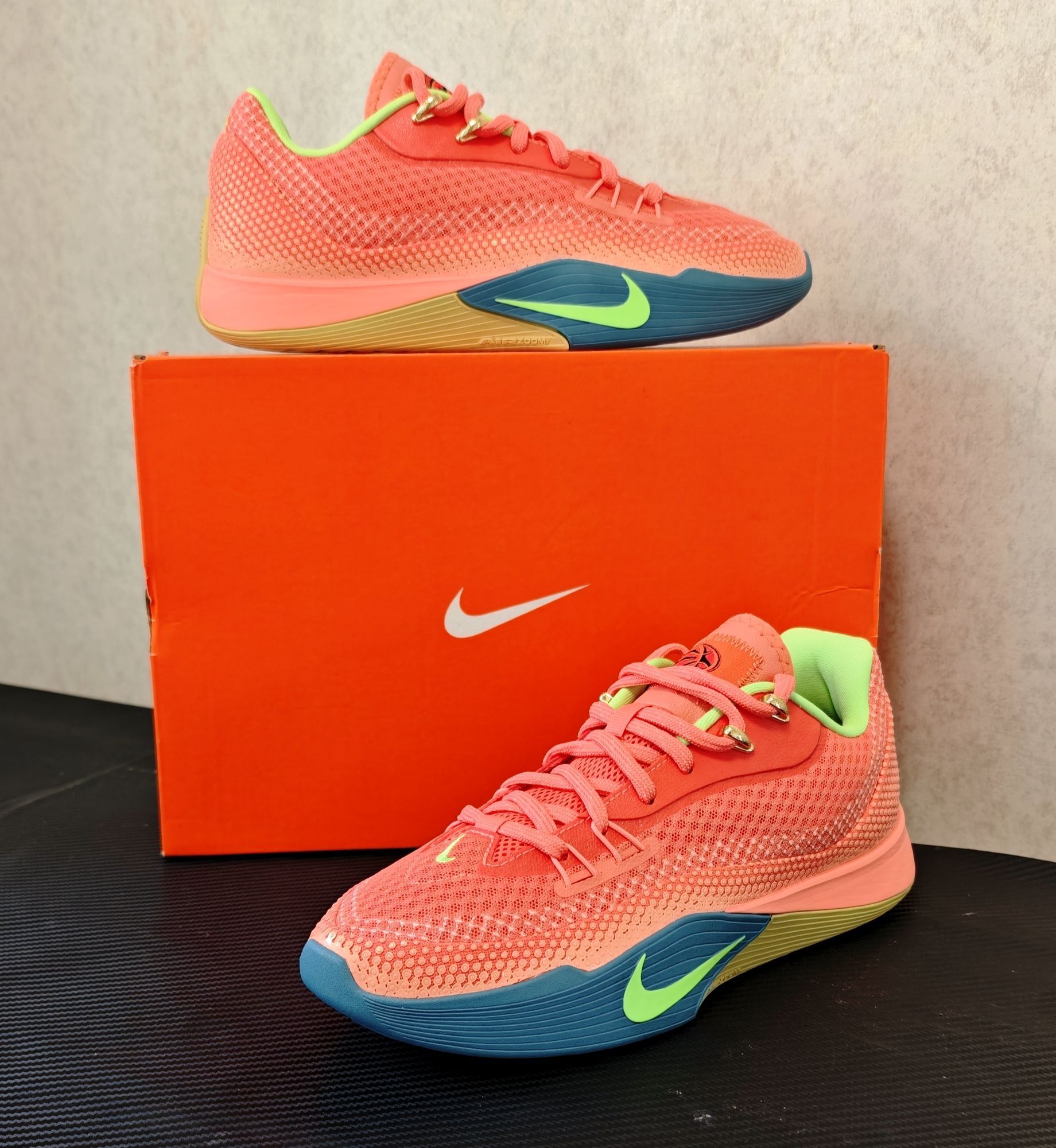 Nike S.T.Flare 耐克外场篮球鞋 这双 Nike S.T. Flare “气焰”,采用了极具视觉冲击力的落日珊瑚橙为主调,搭配荧光绿 Swoosh 和海浪蓝大底,不仅颜值在线,更是一款专为中国外场玩家量身定制的“水泥地战靴”。 实战性能拆解 * 耐磨性:XDR 外底硬度极高,配合加厚的橡胶层,实测在粗糙的沥青和水泥地上纹路磨损极慢,堪称“水泥地推土机”。 * 抓地力:全掌人字形...