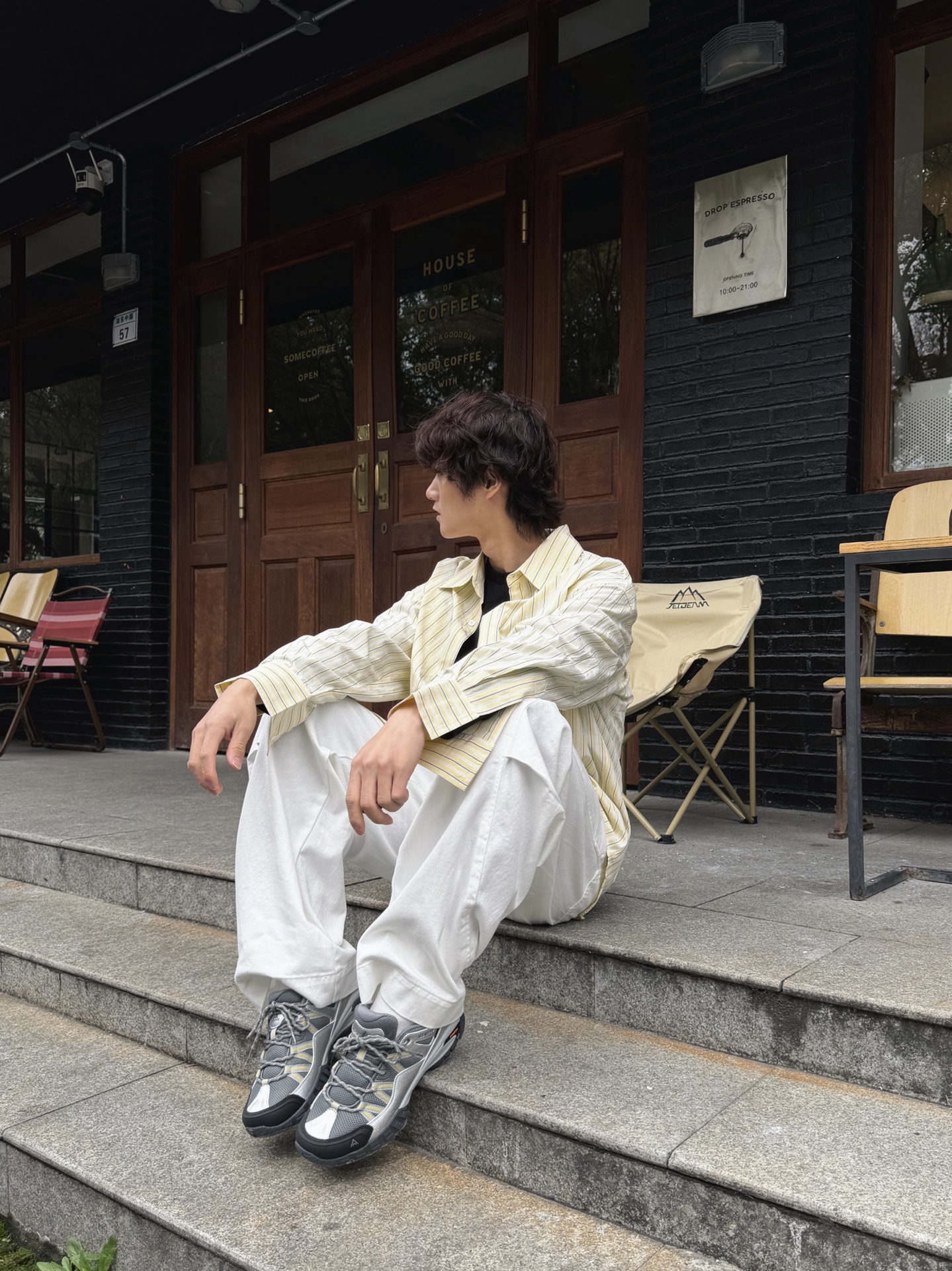 Cityboy早春松弛感拉满的一天☁️ 条纹衬衫+白裤真的是少年感密码 内搭黑T简单干净,不挑人 鞋子是点睛之笔,银灰配色超百搭 上脚包裹性也不错,走一整天都很舒服~ 整体就是韩系简约风,日常出门随便一套,干净又耐看✨ #如果你来定义户外鞋 #预习一下早春穿搭 #户外风穿搭挑战 #户外徒步穿搭 #少年感干净穿搭